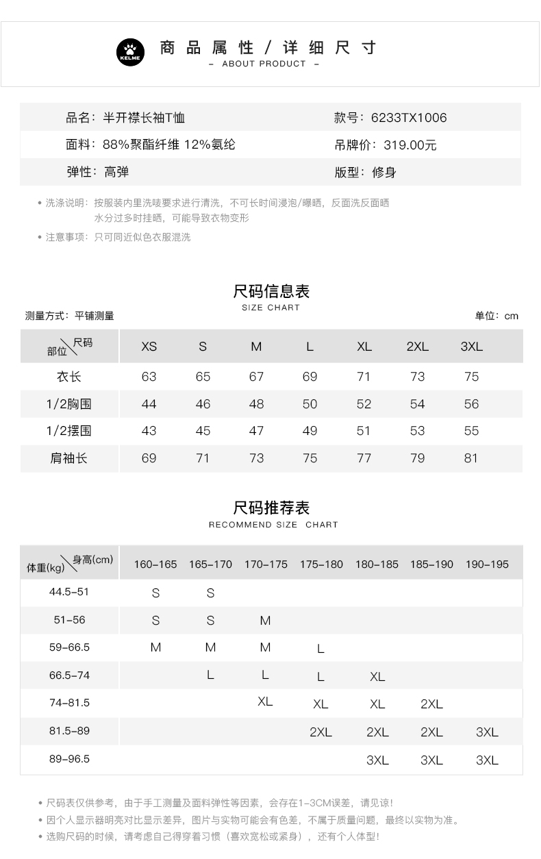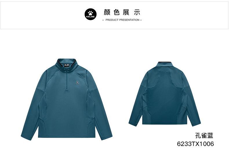 卡尔美足球训练长袖T恤男半拉链针织运动套头衫拇指扣卫衣