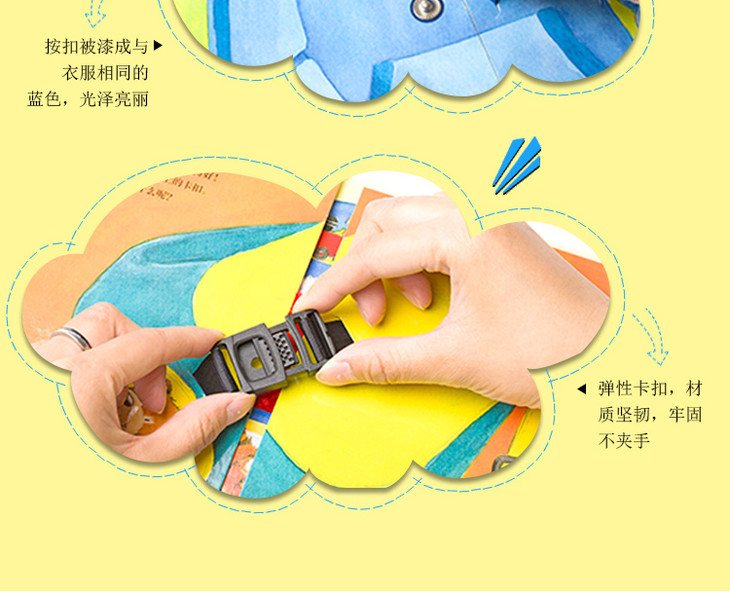 ④把东西装进小书包后,上面的卡扣要扣紧。
