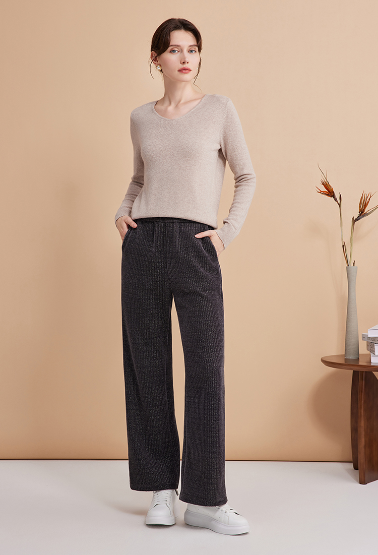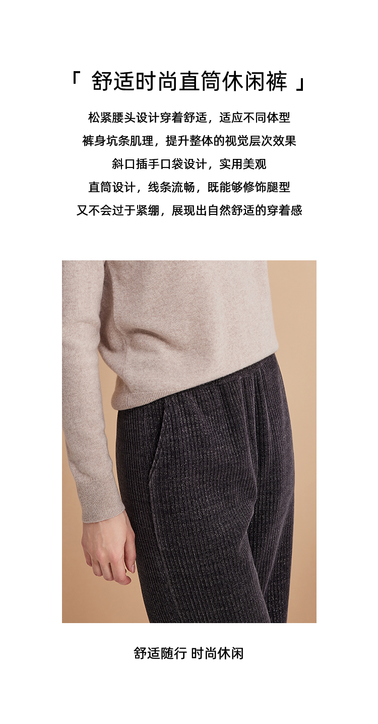 EITIE爱特爱保暖松紧腰直筒显瘦百搭休闲裤冬季新款D2405409