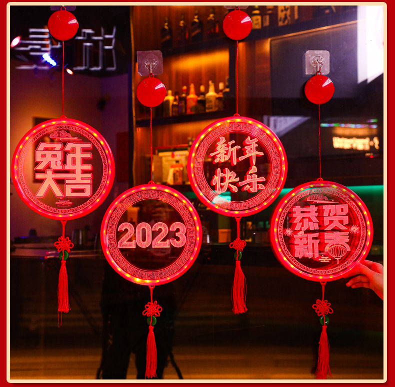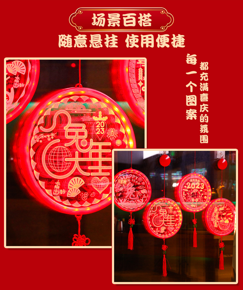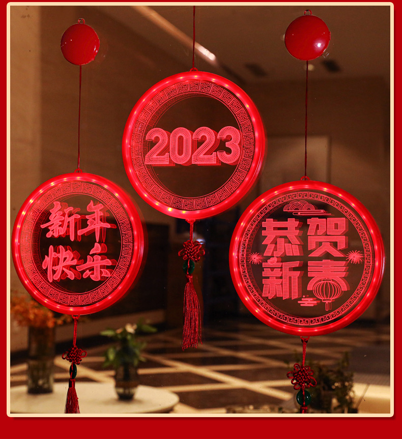 [春艺]2024龙年彩灯新年装饰灯LED灯串春节彩灯发光福字灯圆盘吸盘挂灯- M仓