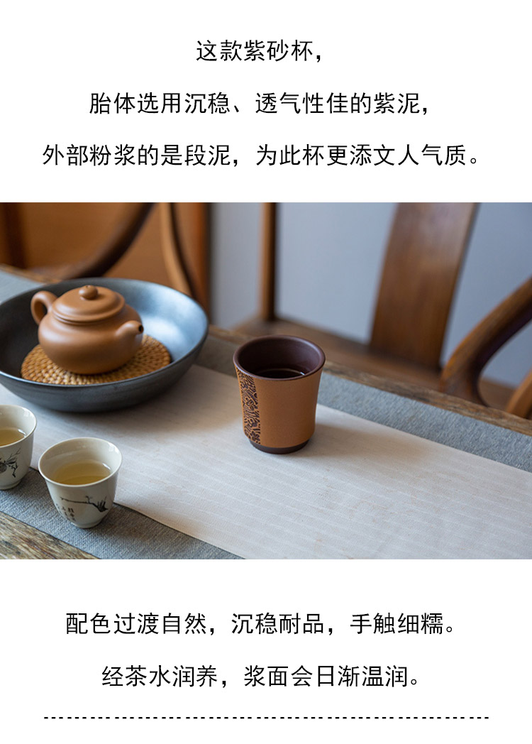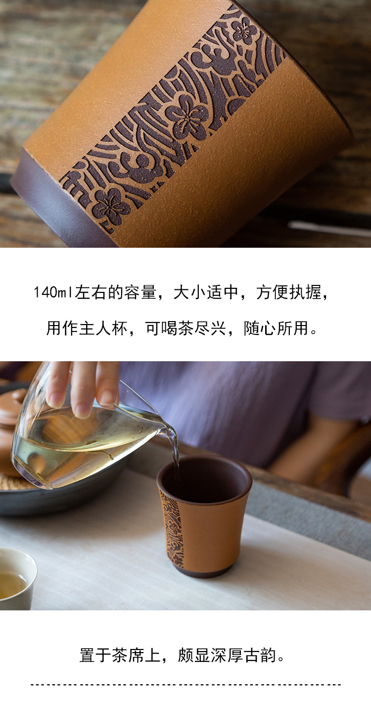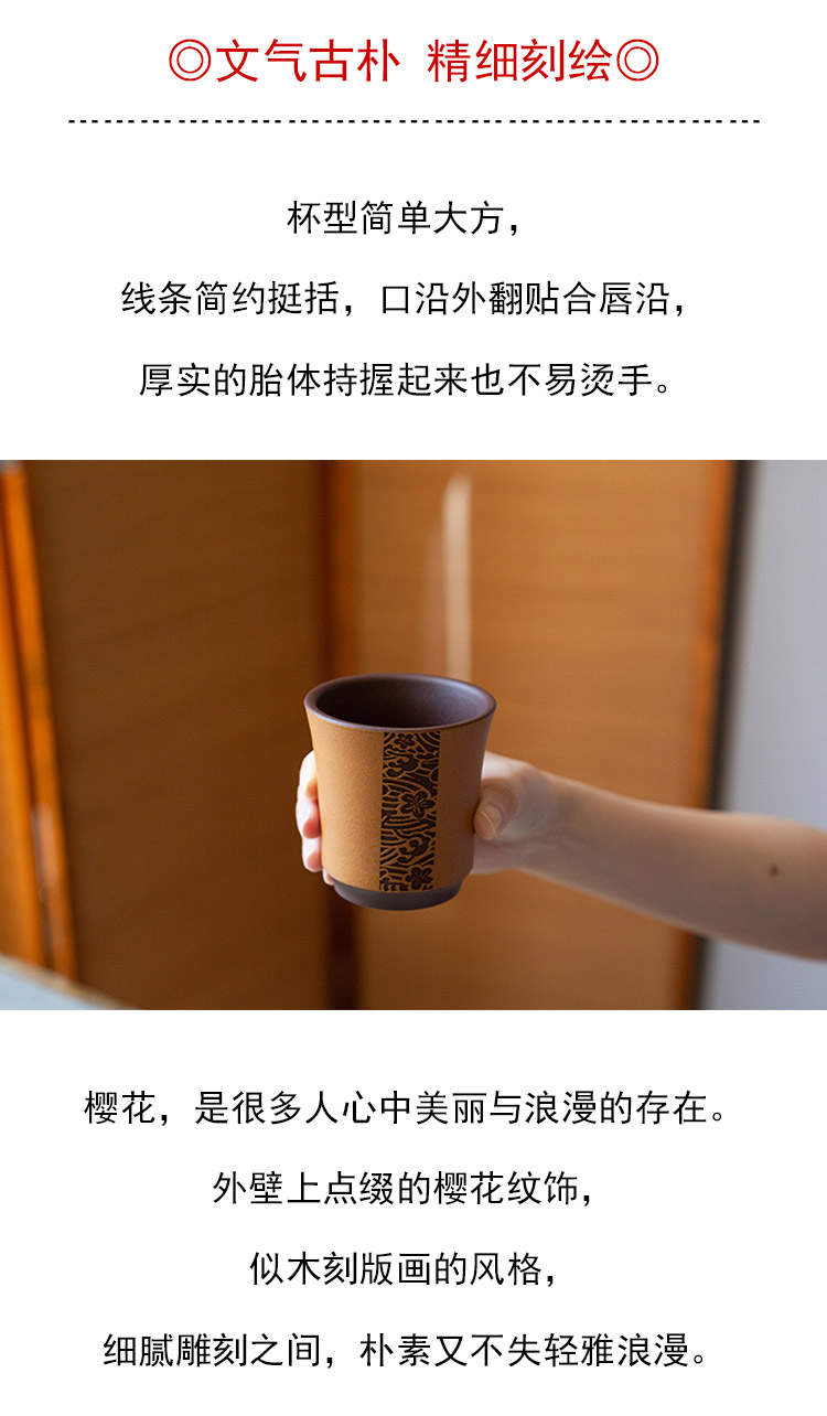 茶香记 紫泥粉浆雕刻樱花杯140ml紫砂主人杯文气古朴细腻雕刻茶杯