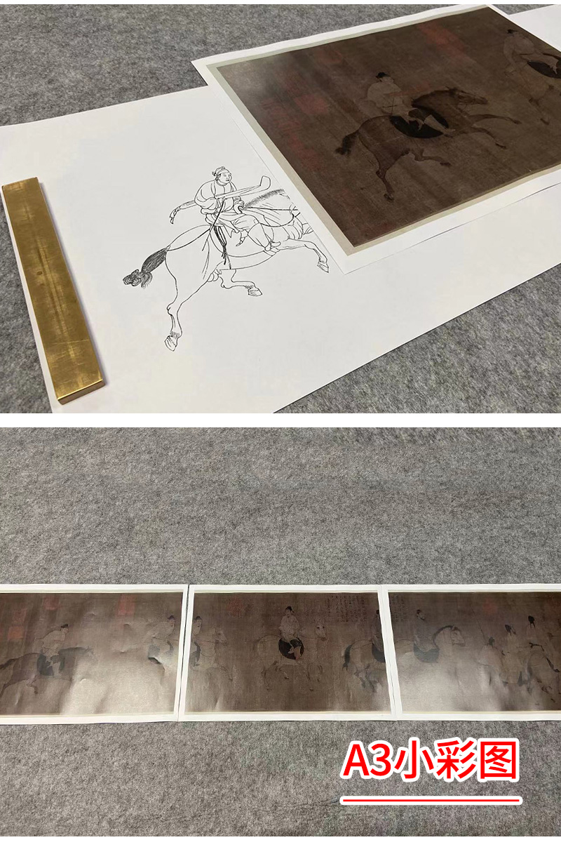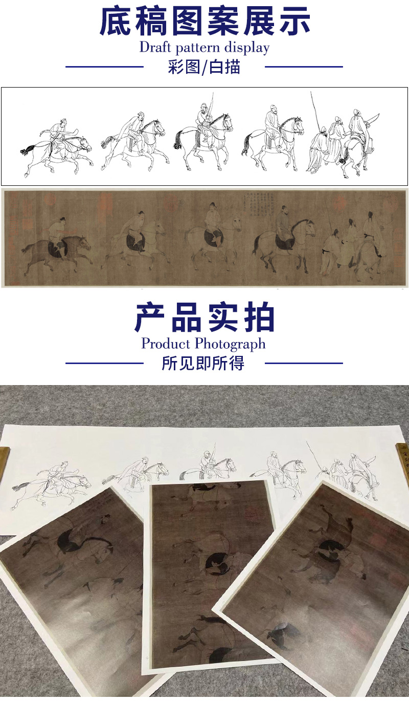 【长卷】工笔人物画白描底稿古画长卷佚名《游骑图》多种白描尺寸可选G032