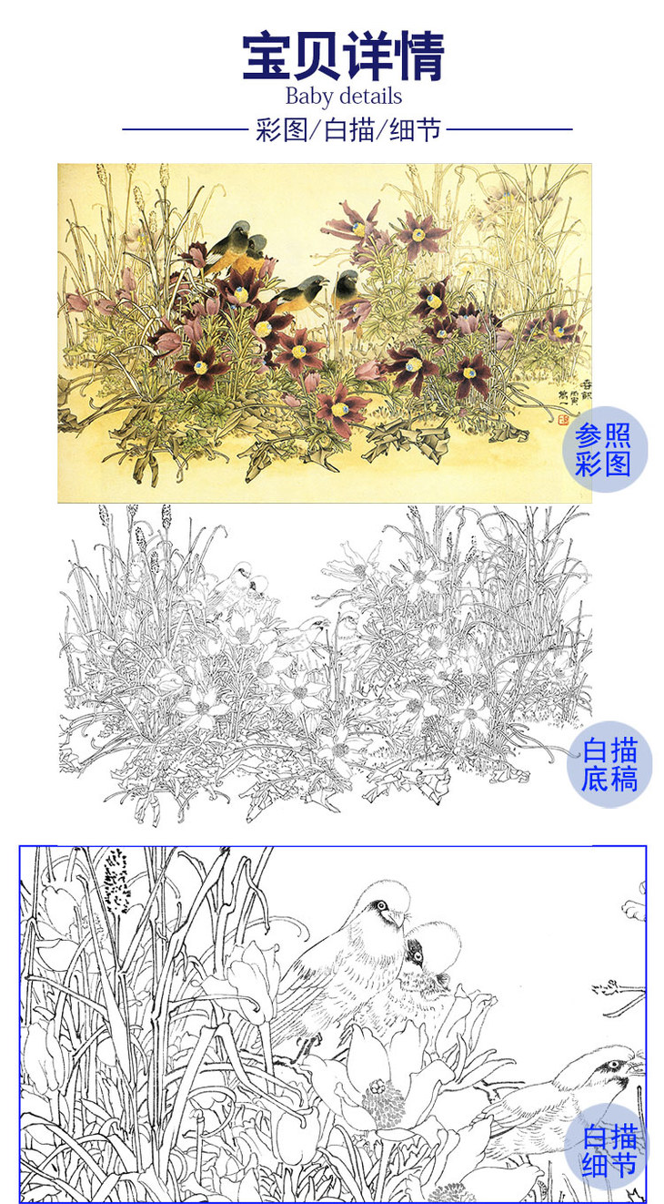 万一横幅工笔花鸟白描底稿-《春讯》-多种白描尺寸可选-WT17