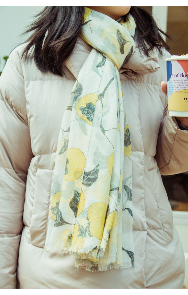 喜事连连羊毛围巾 200*100cm 100%羊毛 300支 数码印花