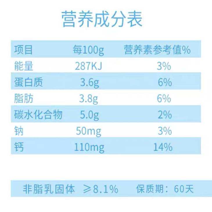 虽为纯牛奶,它的保质期只有3个月。由于蛋白含量丰富,未开启前无需冷藏,开启之后需立即引用。奶奶由新疆邻近的甘肃威海仓库发出,发出前都会品控保证包装完好无破损,路途如遇暴力件导致泄漏,可联系客服按比例赔付,民风粗犷请多体谅。由于产量有限,未来可能会不定期断供,且喝且珍惜。