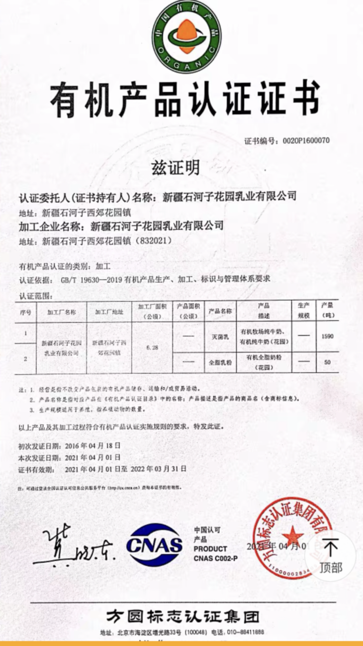 生产者:新疆石河子花园乳业有限公司