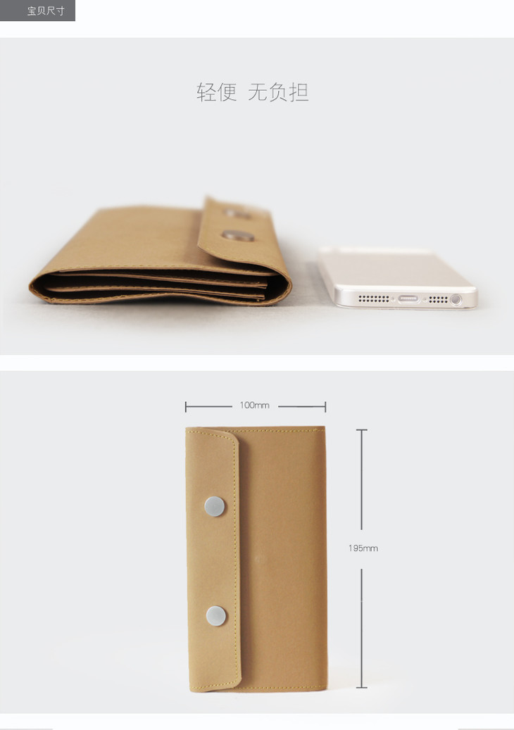 PAPER系列 双扣钱包 可水洗牛皮纸包