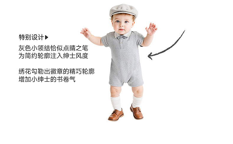 【商场同款】英氏男童连体衣夏季新款短袖哈衣透气婴儿爬服