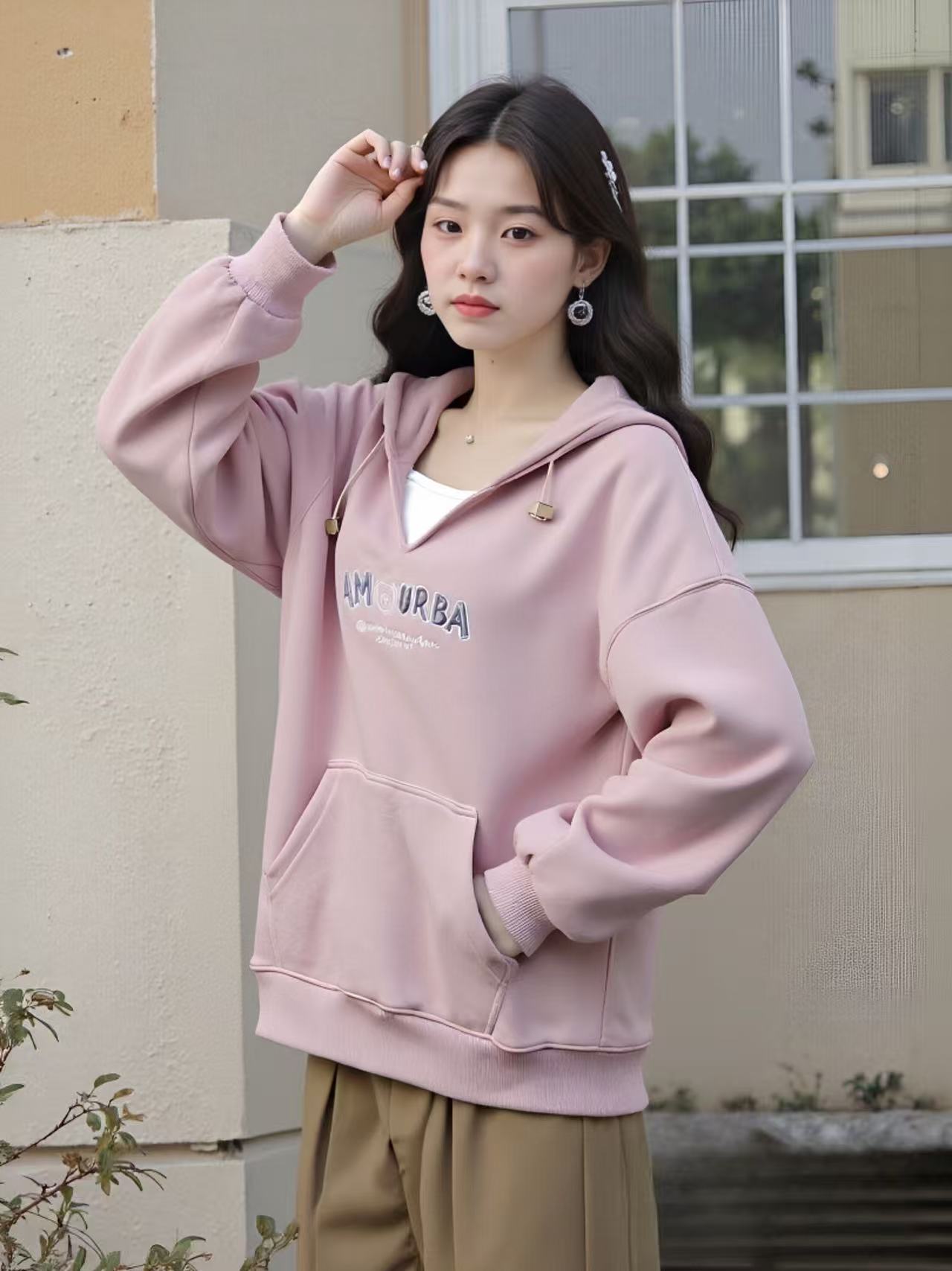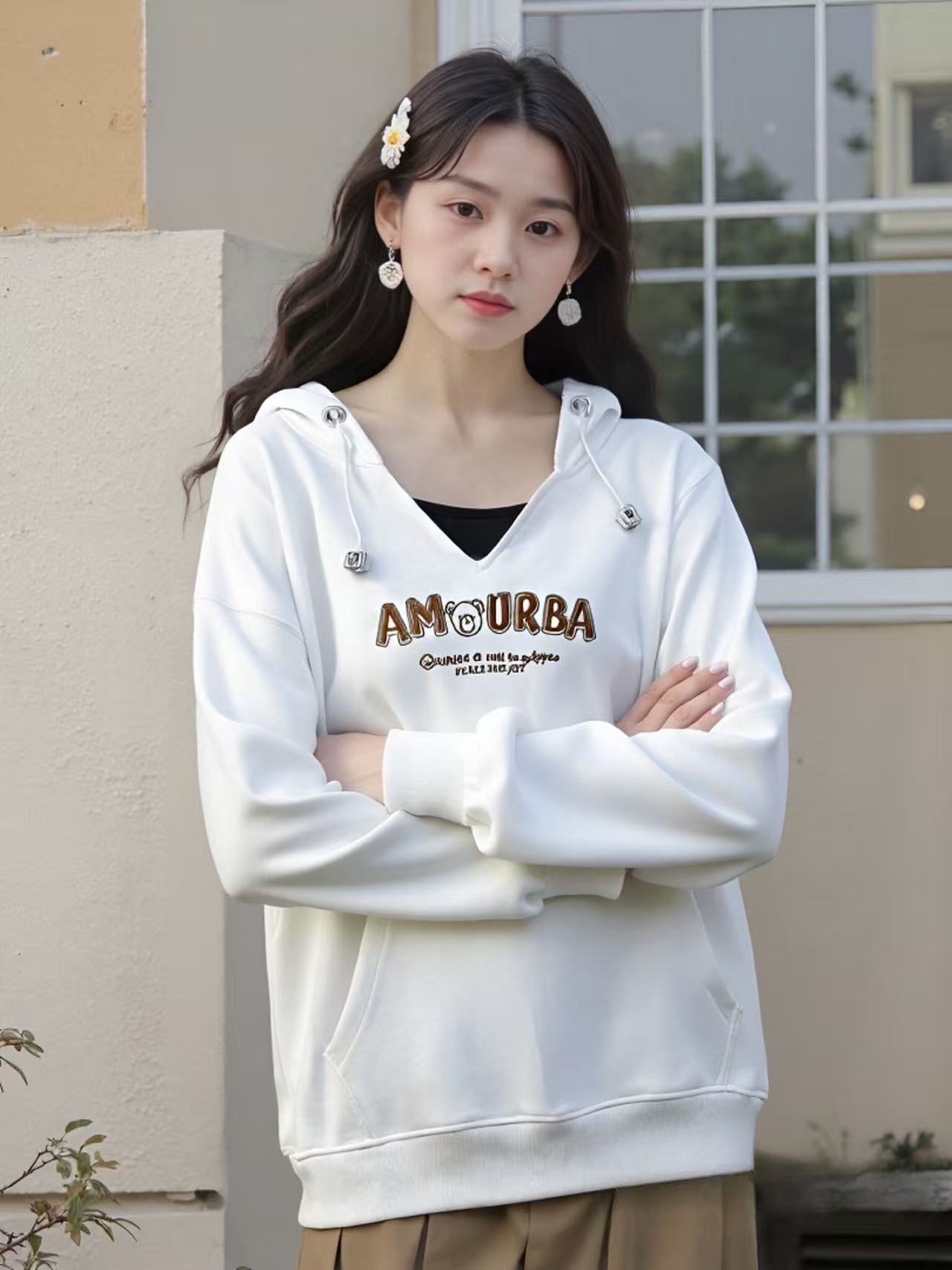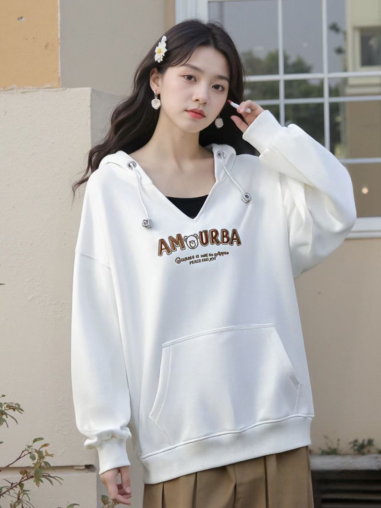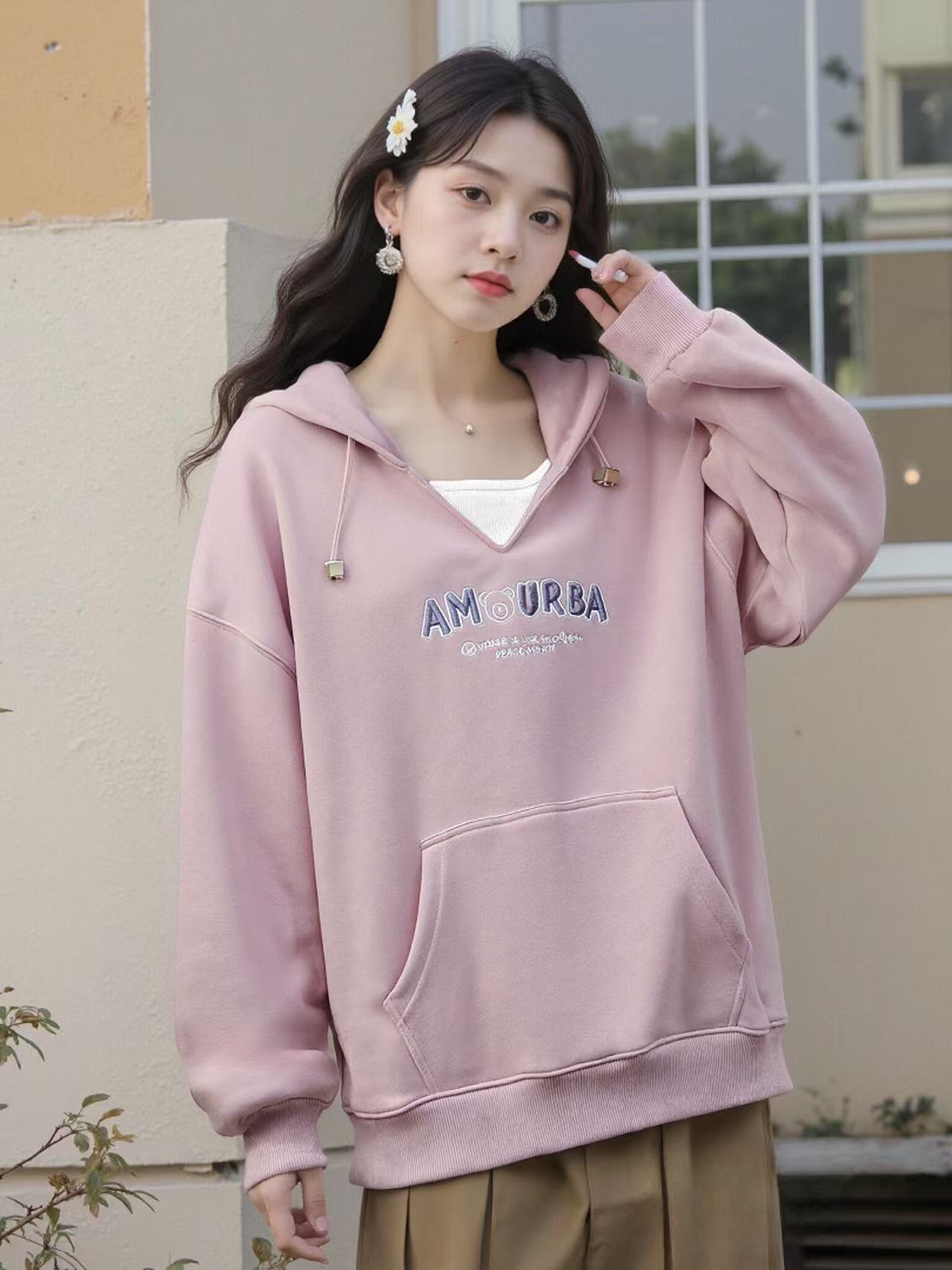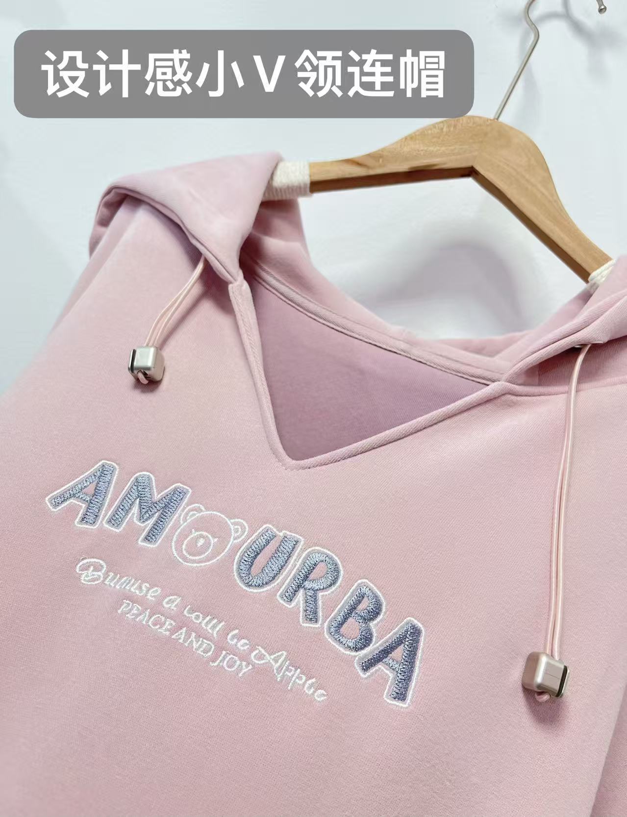 冰点价!仅限11.11!退货勿拍【卫衣系列】工艺系列-小V领连帽精致刺绣字母设计感卫衣-喜出