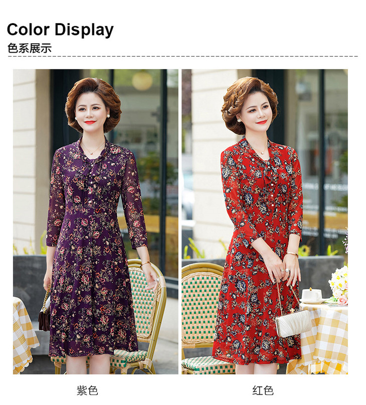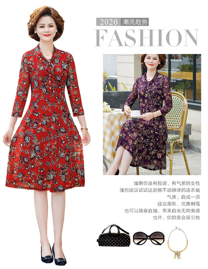YCE-728-201新款洋气妈妈装印花弹力网纱A字裙修身连衣裙
