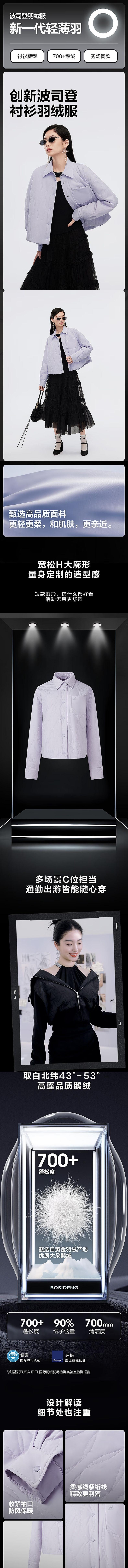 波司登 女衬衫领长袖外套羽绒服 B40133612