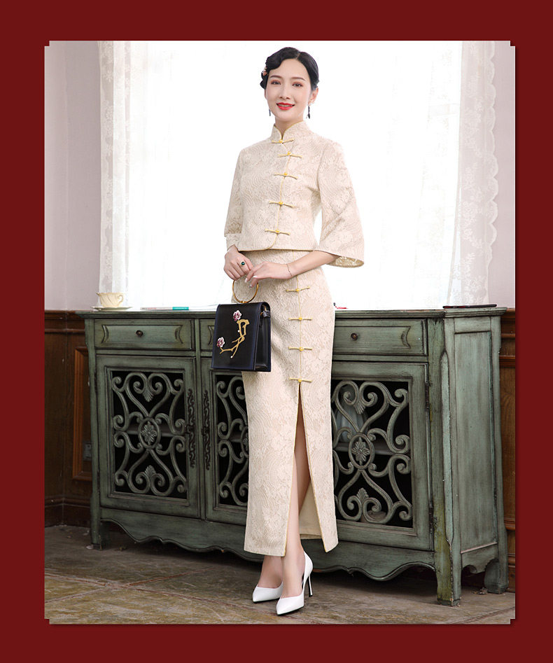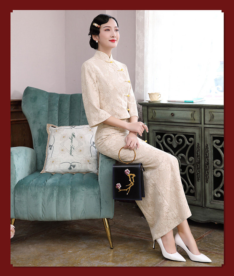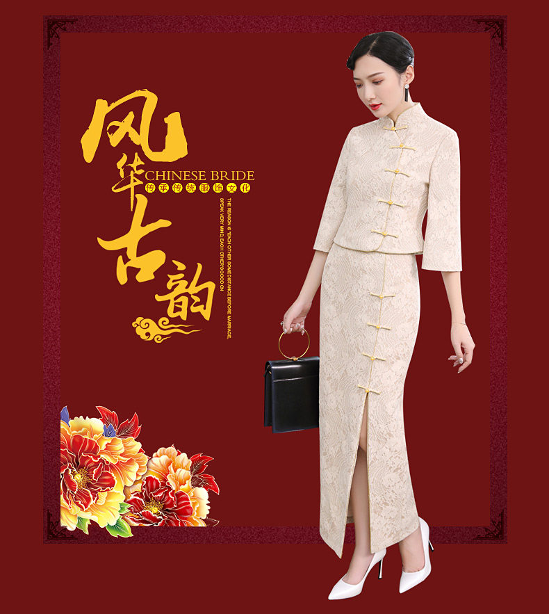DLQ-A2195秋冬改良长袖拜年服过年旗袍两件套