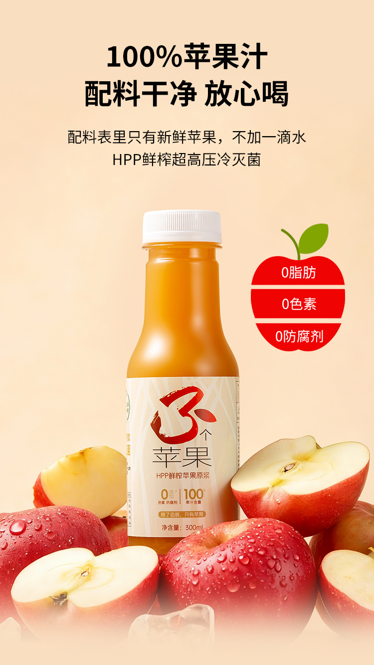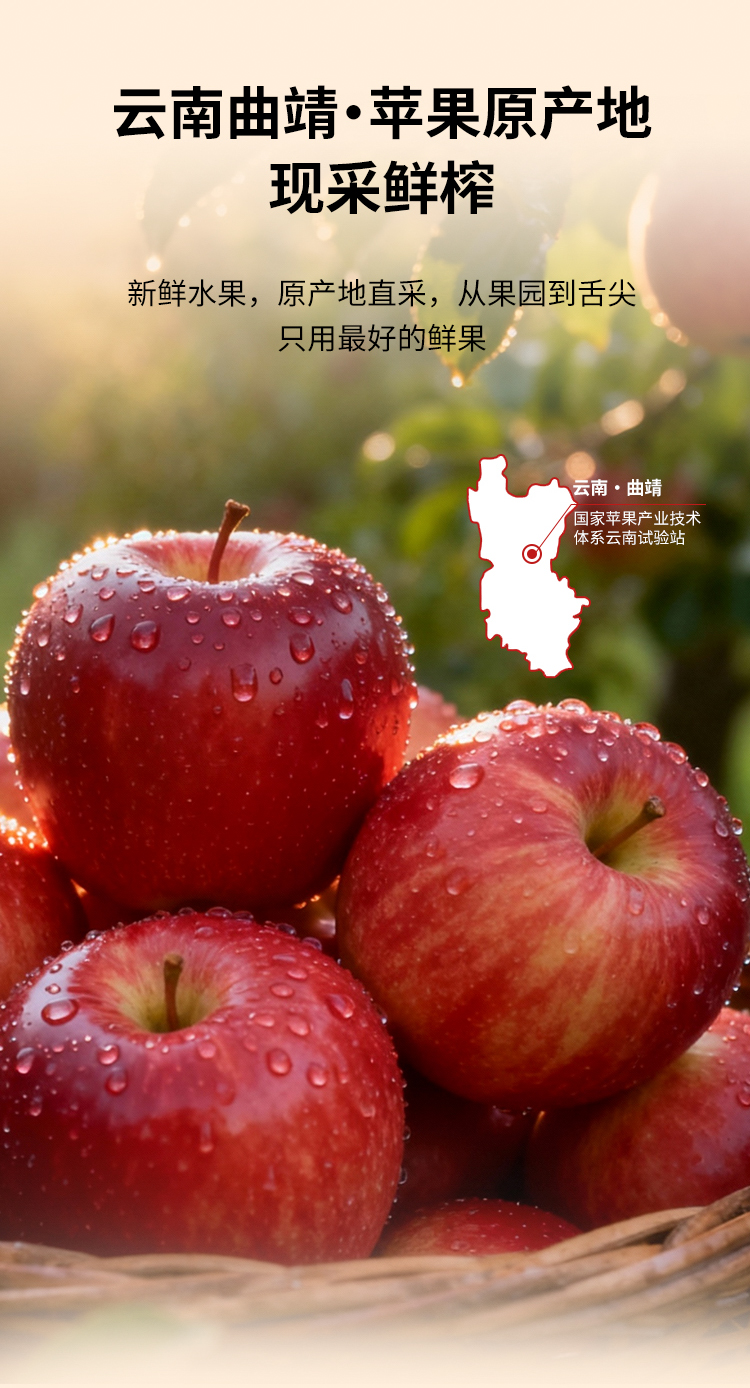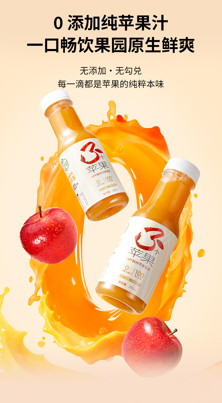 【云南生榨苹果汁】顺丰到家 云南高原“苹果”HPP生榨苹果汁🧃 一瓶=3颗苹果整果鲜榨 不加一滴水、不加一点糖、没有任何添加剂! 只有苹果本身清甜自然的味道,和您放心的纯净配料表 6瓶装