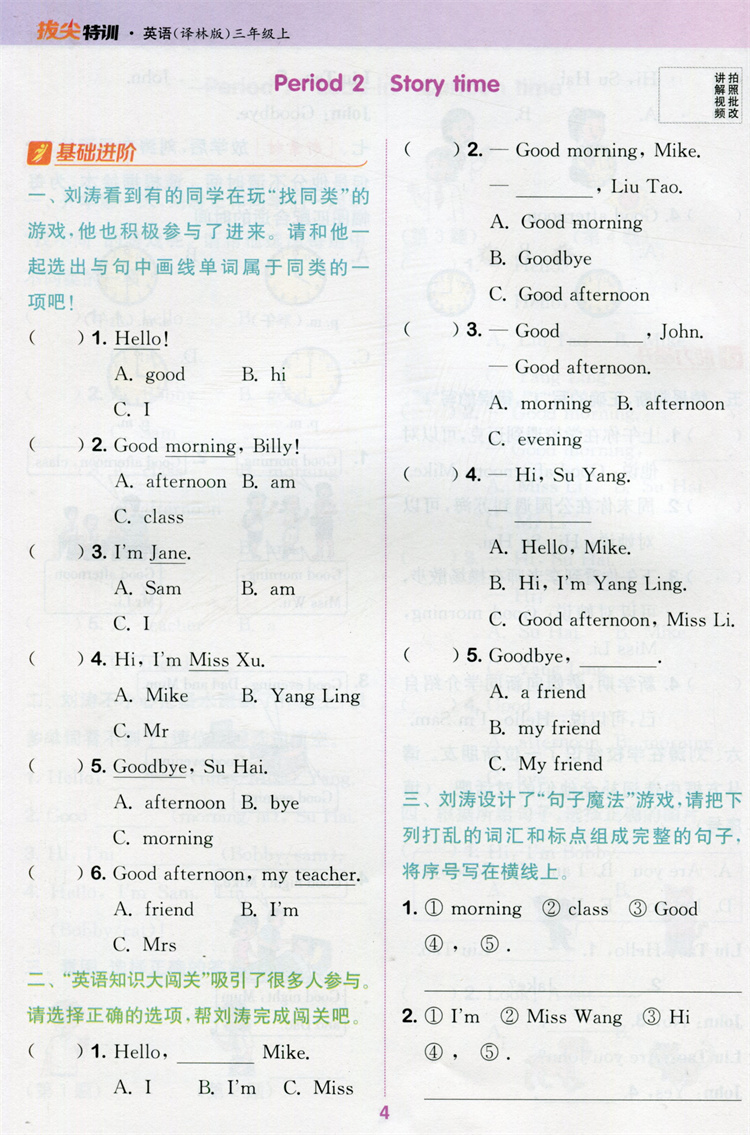 2025秋 小学拔尖特训英语三年级上册 3上 译林版 同步提优训练专项练习一课一练学霸笔记必刷题通成学典天天练教辅