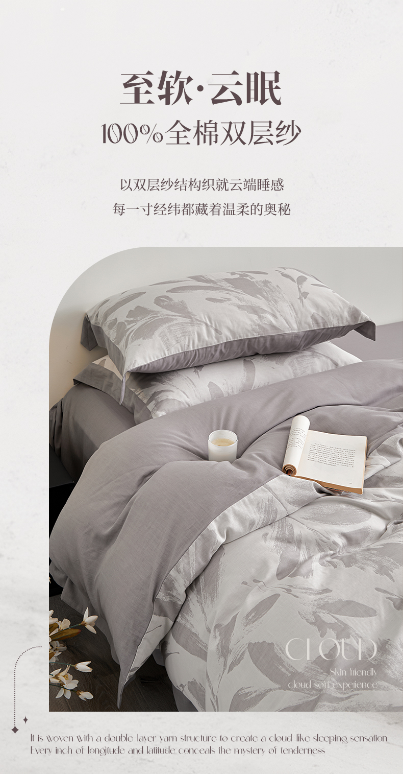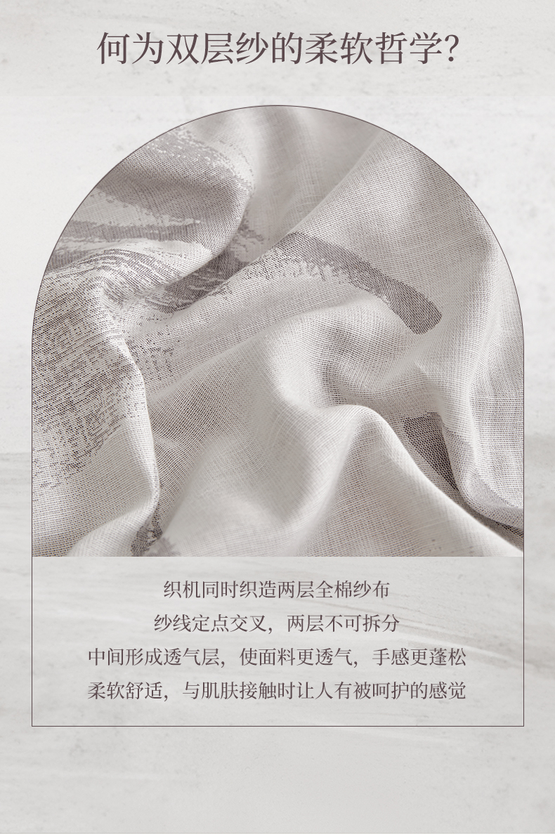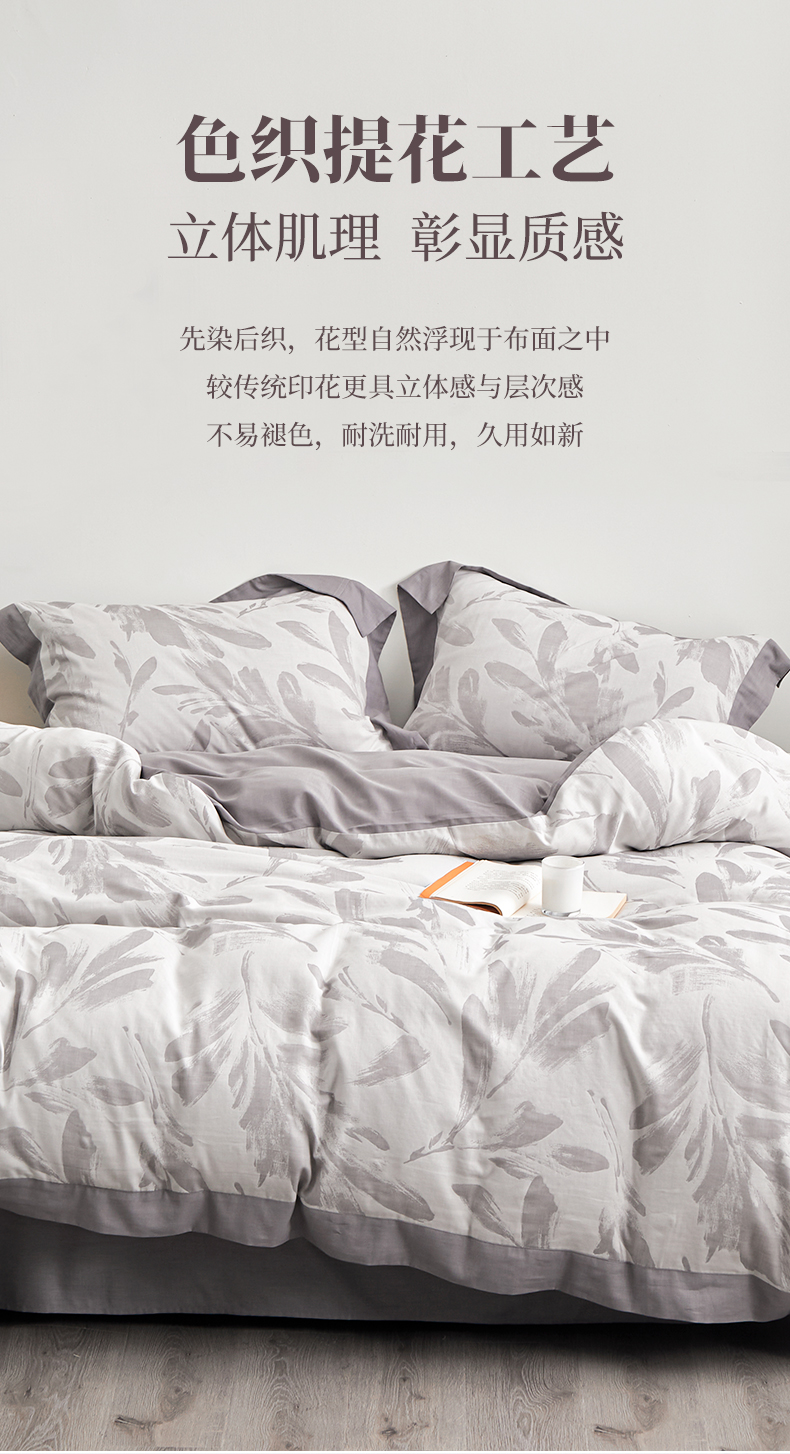 多喜爱 森野双层纱色织提花套件-云墨栖川 【全棉·色织·提花】 【60支高密长绒棉】【三方宽边工艺】【礼盒包装】立体肌理 彰显质感