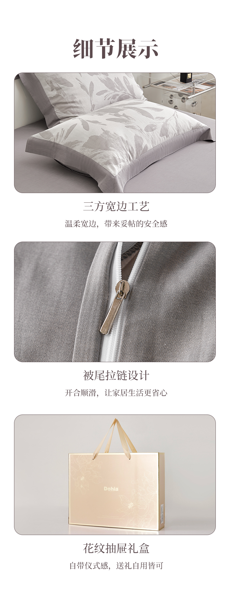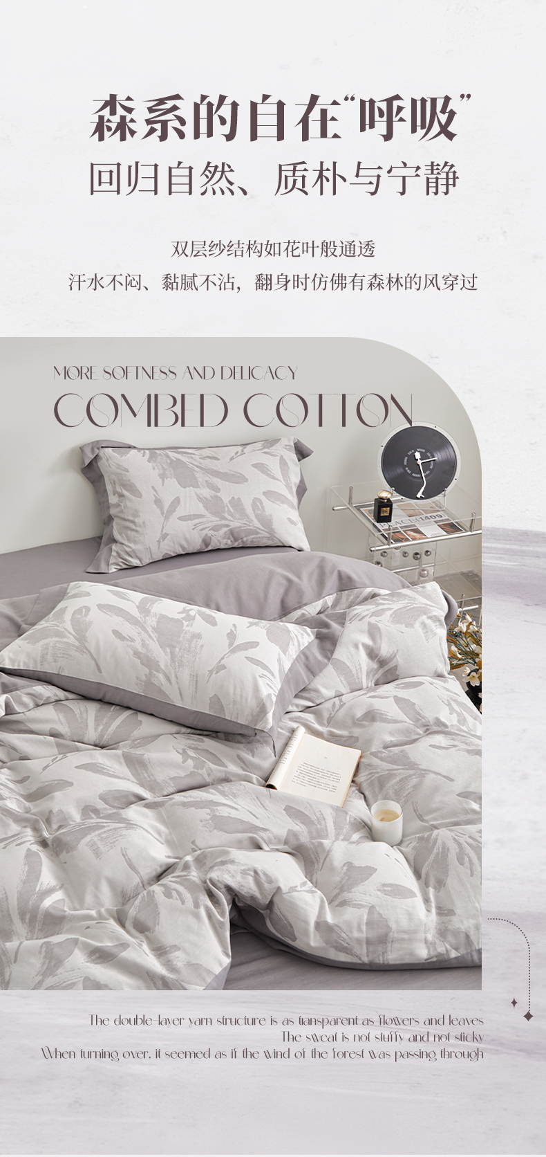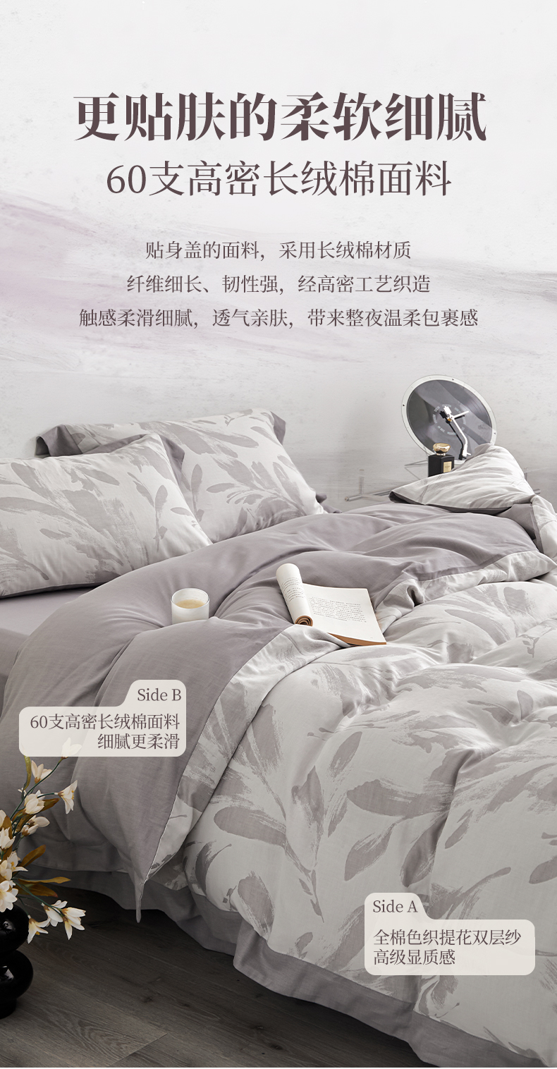 多喜爱 森野双层纱色织提花套件-云墨栖川 【全棉·色织·提花】 【60支高密长绒棉】【三方宽边工艺】【礼盒包装】立体肌理 彰显质感