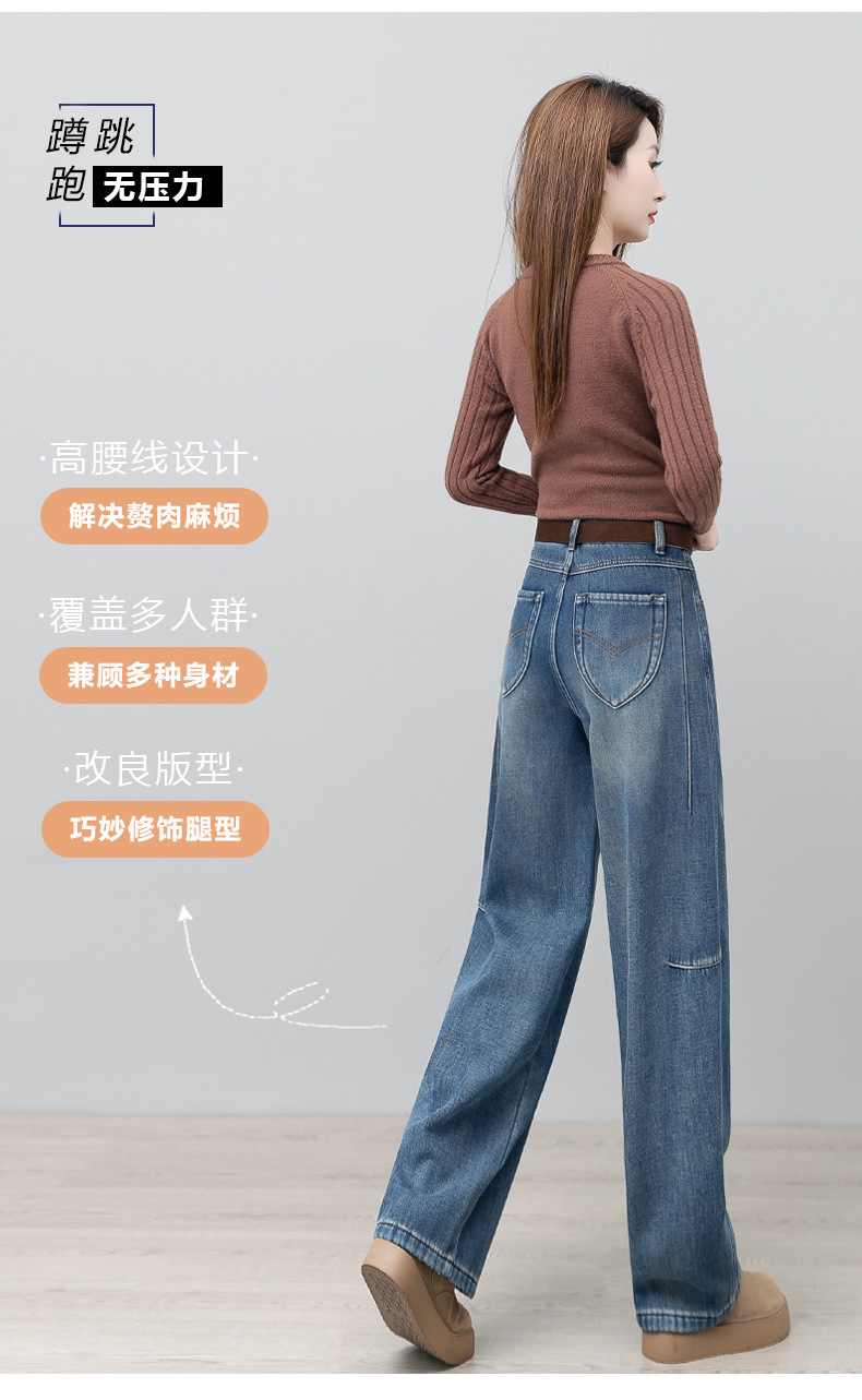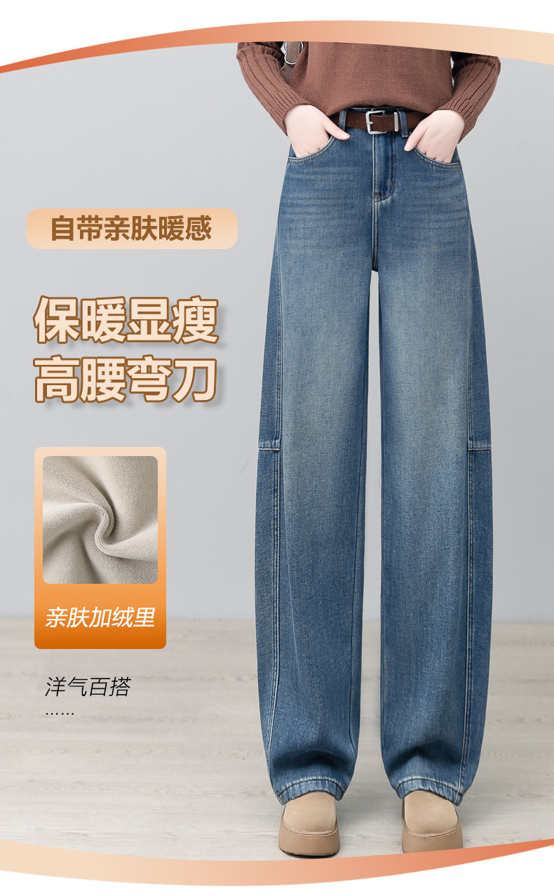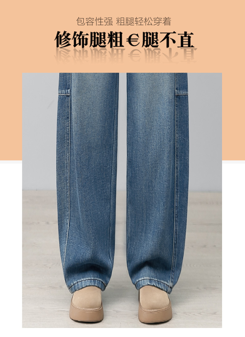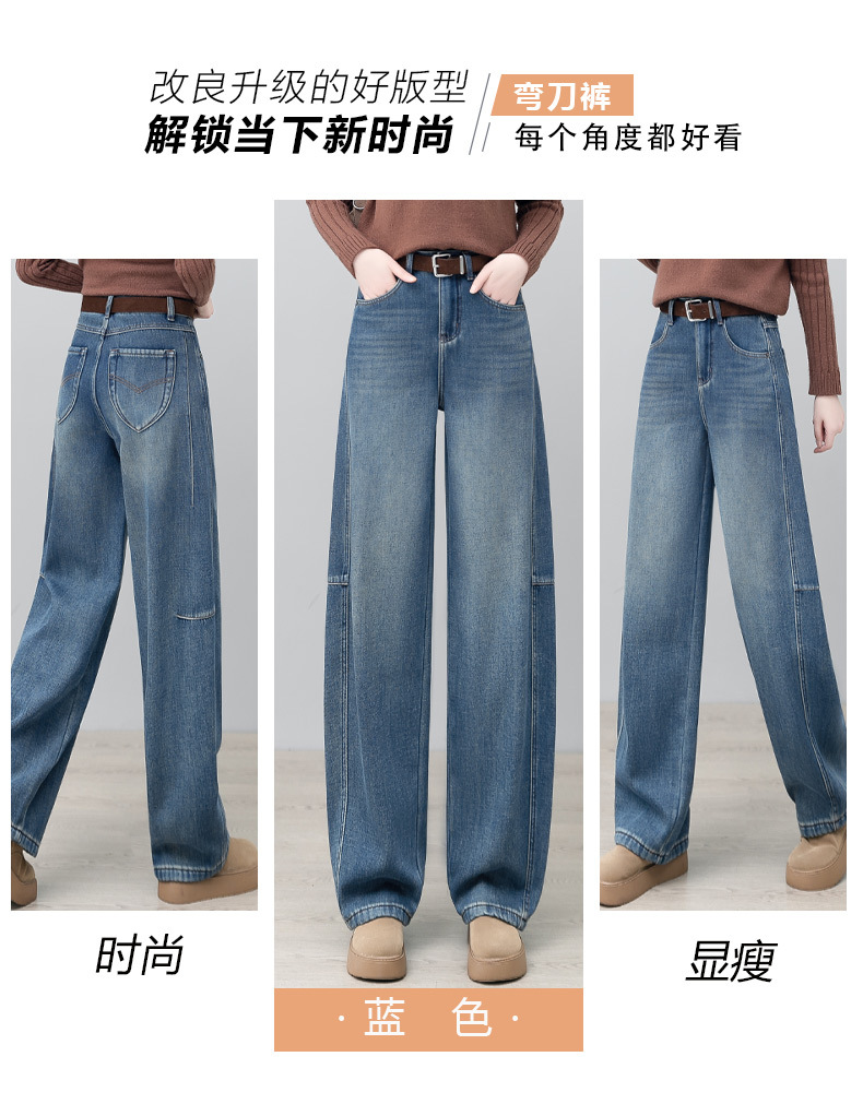 YM 2844弯刀阔腿牛仔裤加绒香蕉裤休闲宽松镰刀裤 商品图4