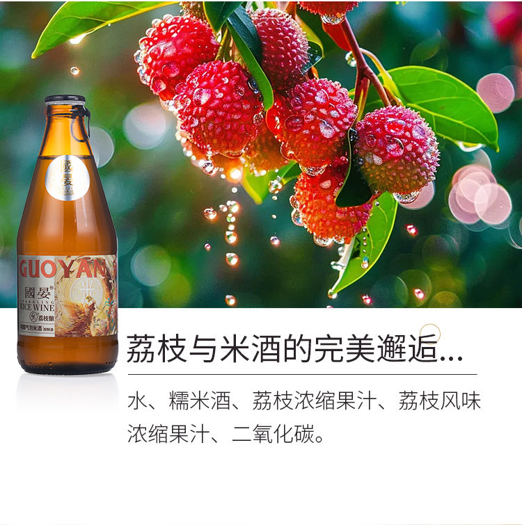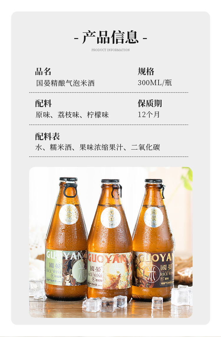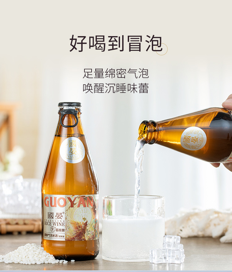 【夏日微醺 清甜略带酒香 朱湖珍珠糯米原料】国晏精酿气泡米酒原味/荔枝味/柠檬味(300ml*12瓶)