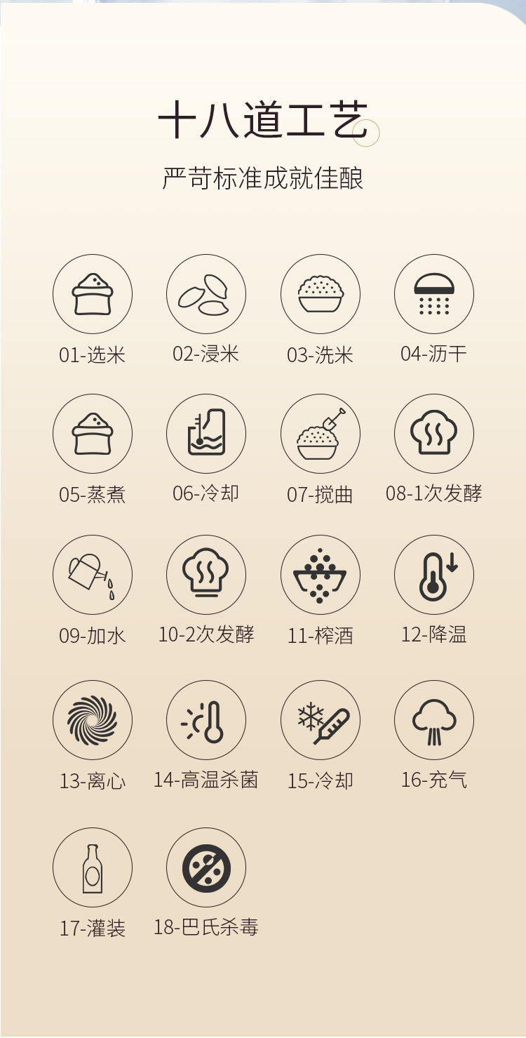 自然发酵:采用传统蜂窝酒曲发酵,保留糯米原香,酒精度适中(通常3%-8%),口感清甜略带酒香。