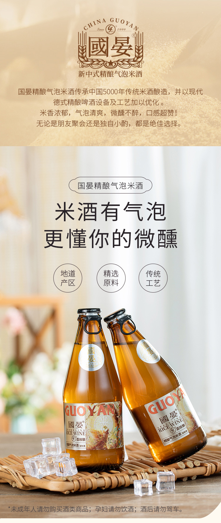 ·国晏精酿气泡米酒传承中国5000年传统米酒酿造,并以现代德式精酿啤酒设备及工艺加以优化。