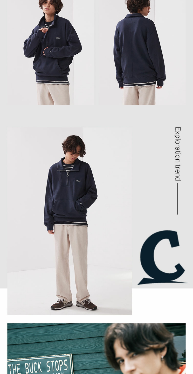 covernat2025春新款运动休闲半拉链宽松卫衣套头衫情CO2401CR08