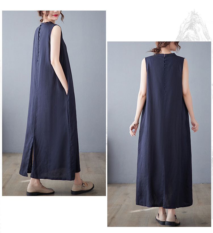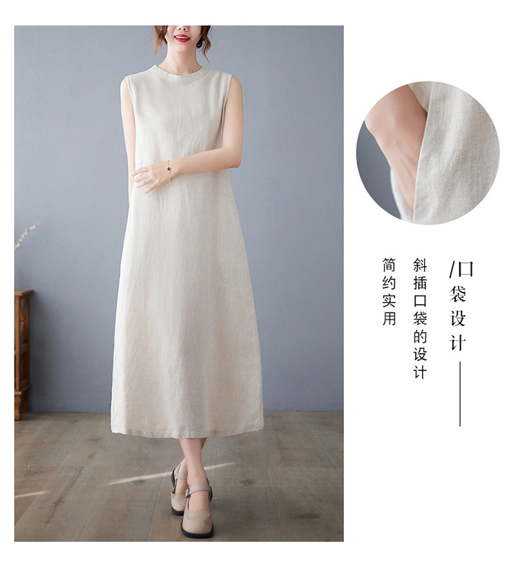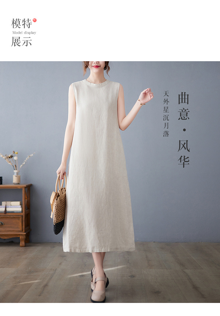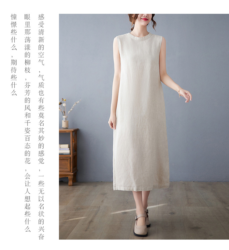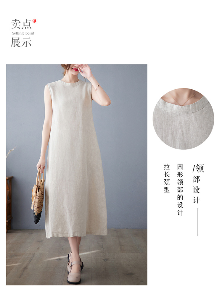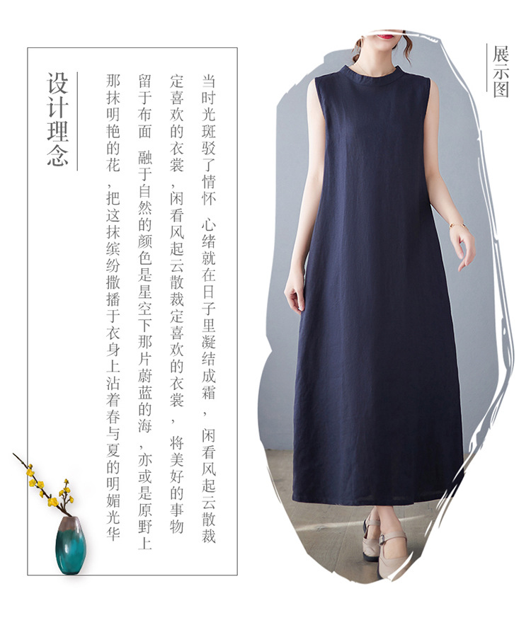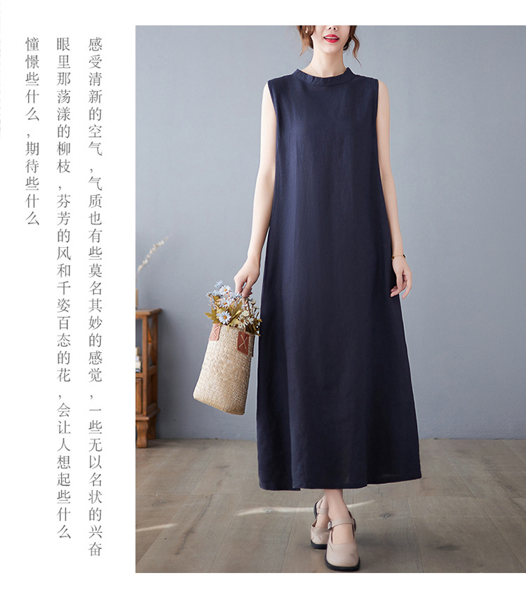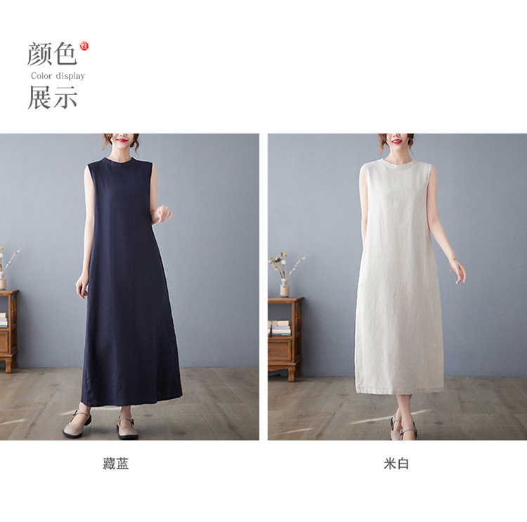 GYH 6241b棉麻背心连衣裙宽松中长款复古