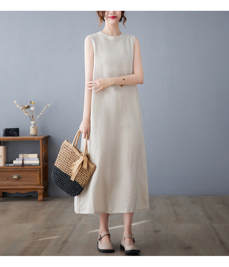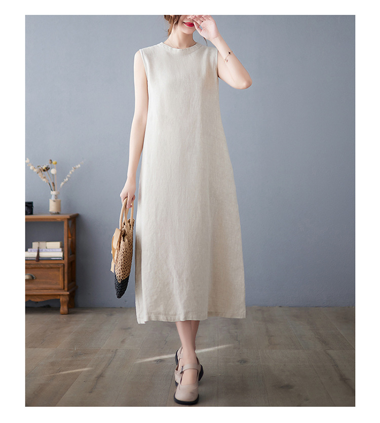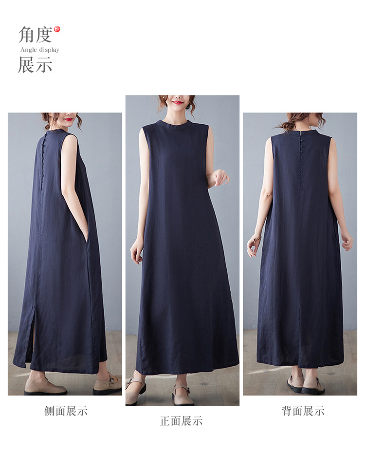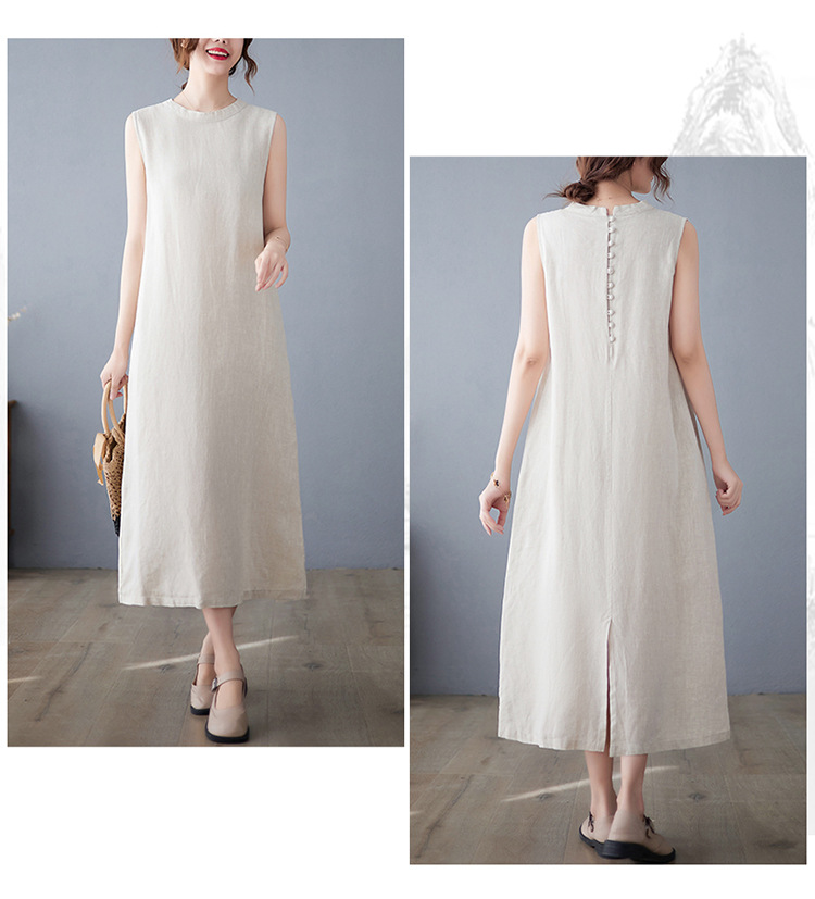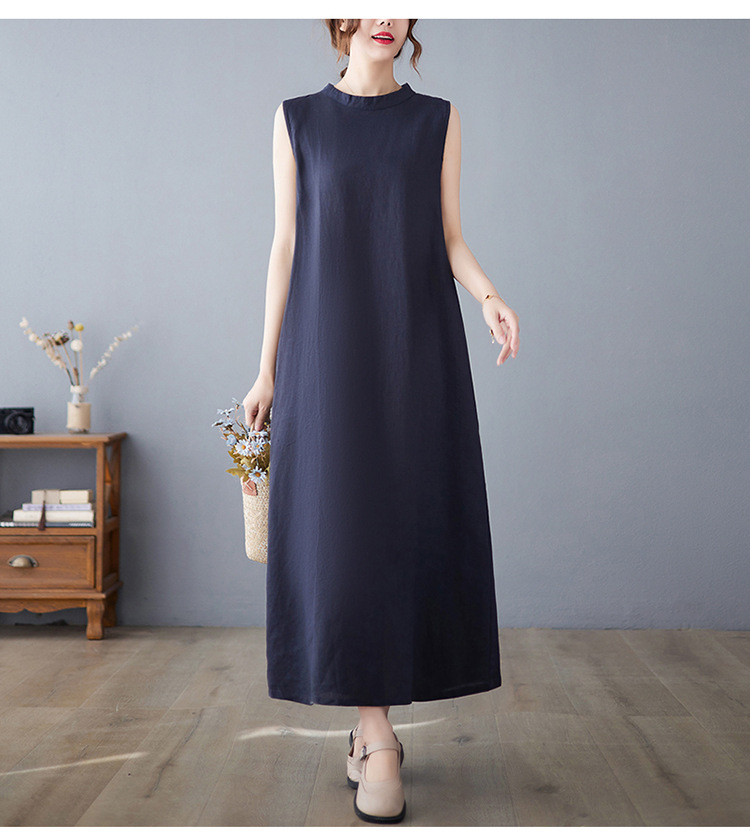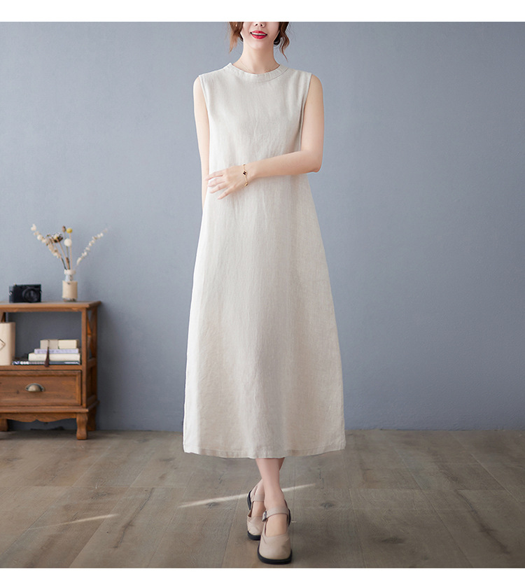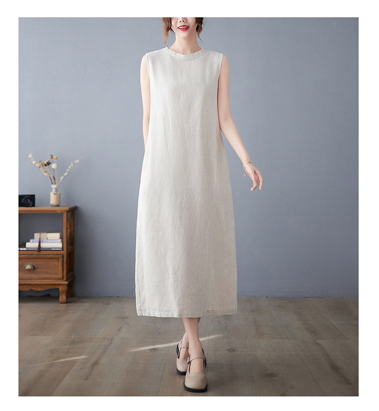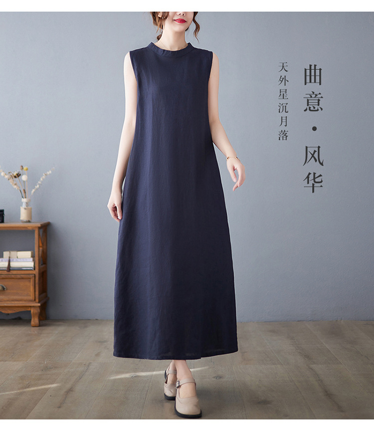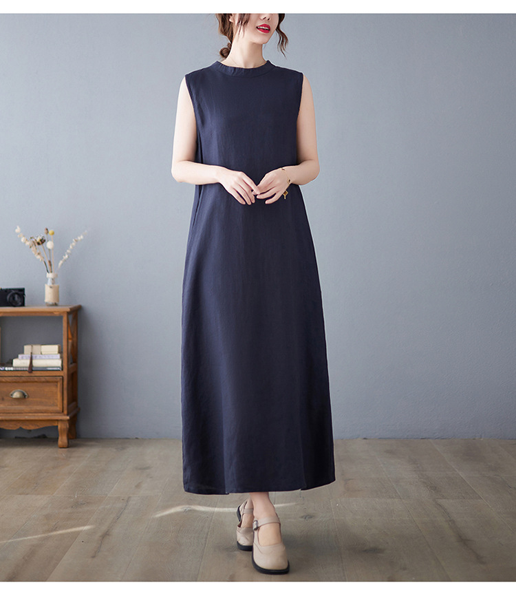 GYH 6241b棉麻背心连衣裙宽松中长款复古