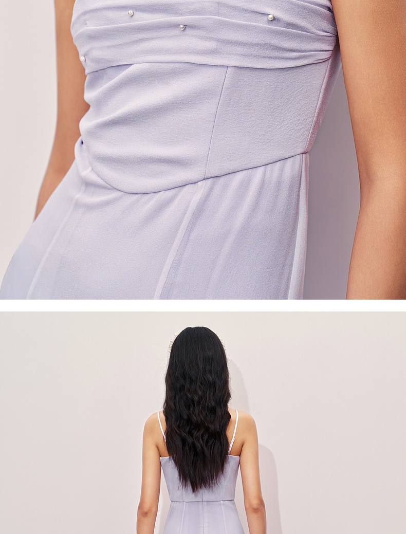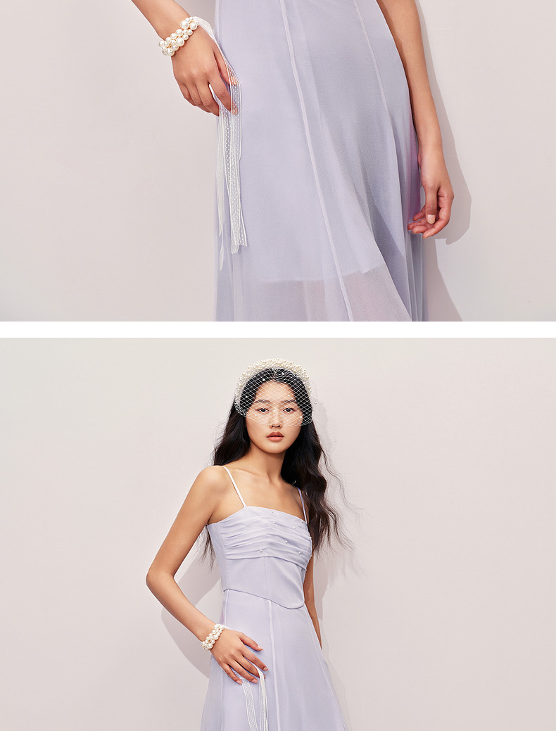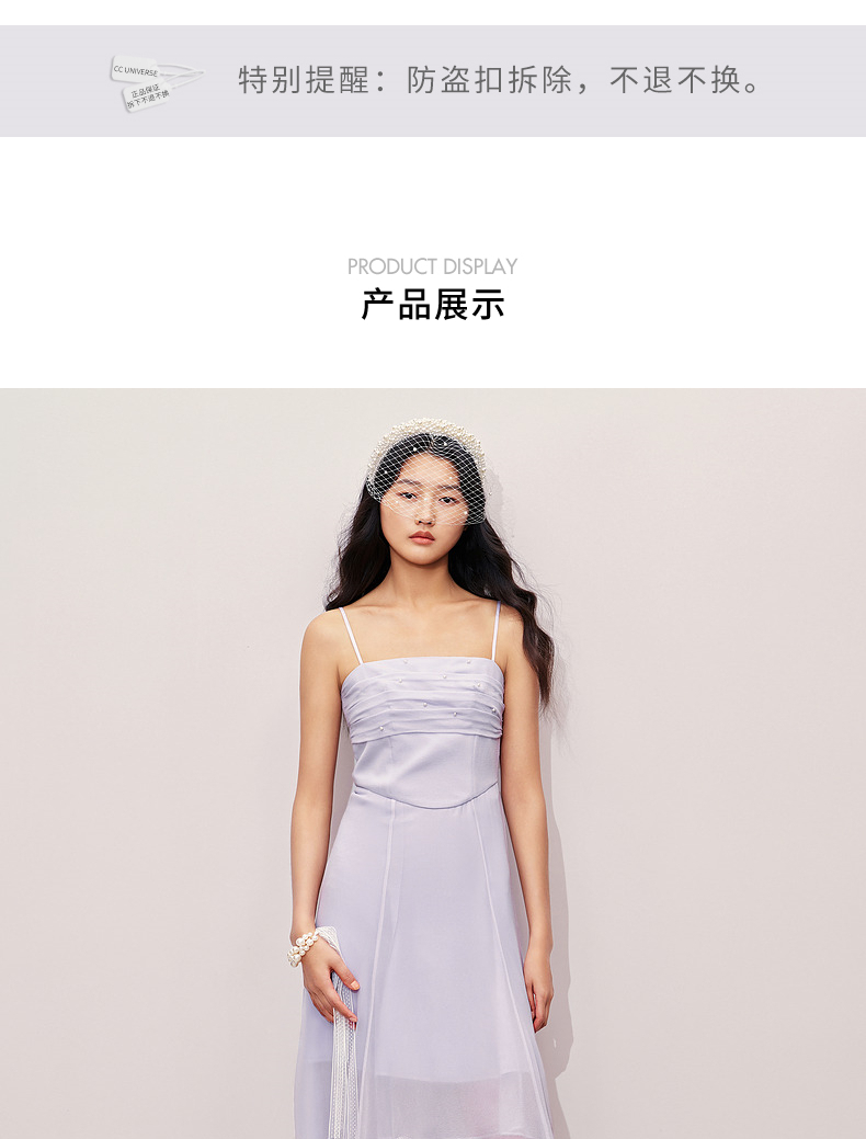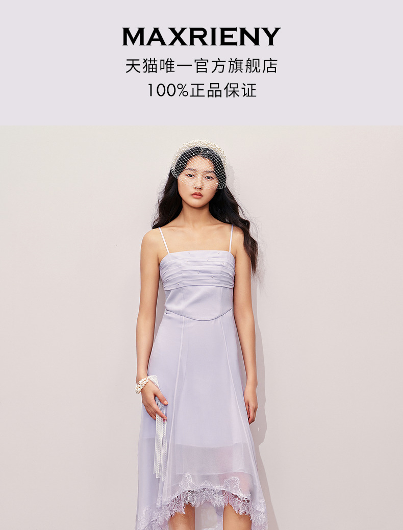 玛克门店发货:MAXRIENY优雅浪漫抽褶收腰吊带连衣裙(货号:MC85DR551)