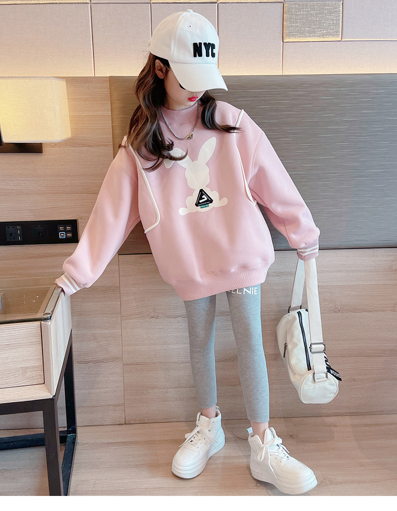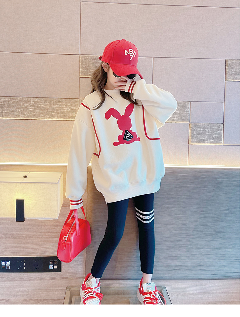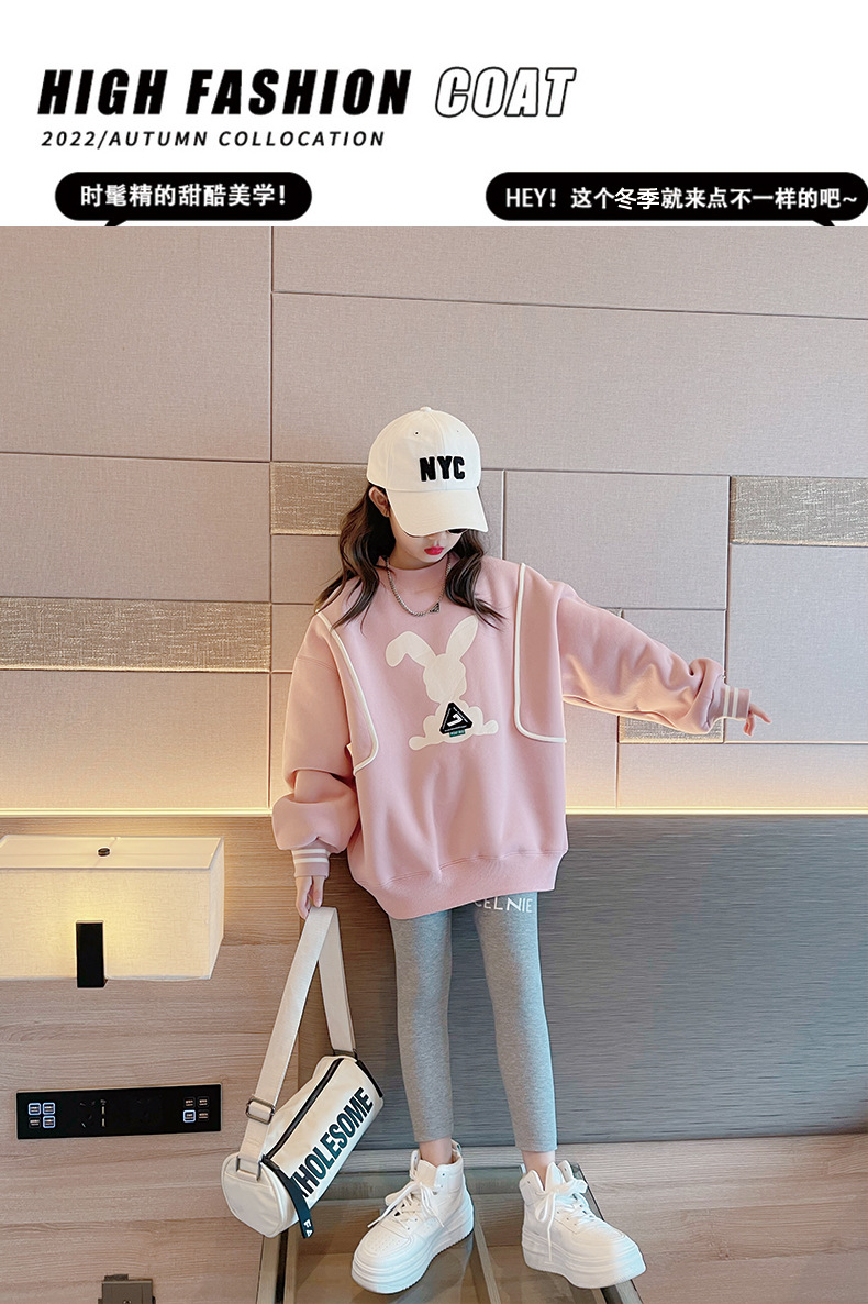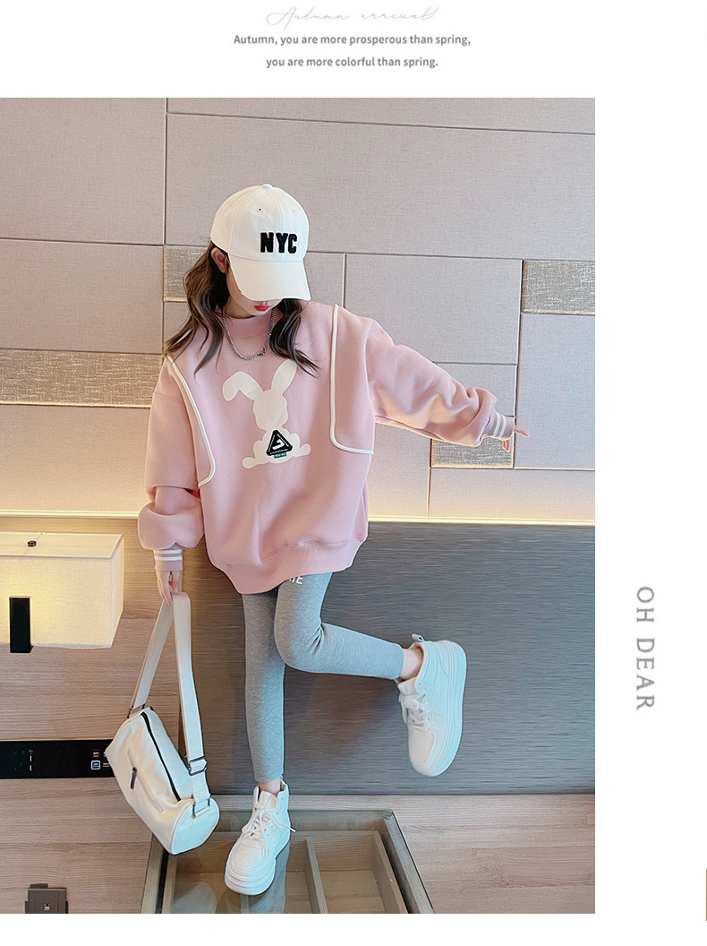 【时尚百搭!圆领卫衣童装】新款女童春秋卫衣,韩版设计,中长款上衣,适合中大童穿着。li
