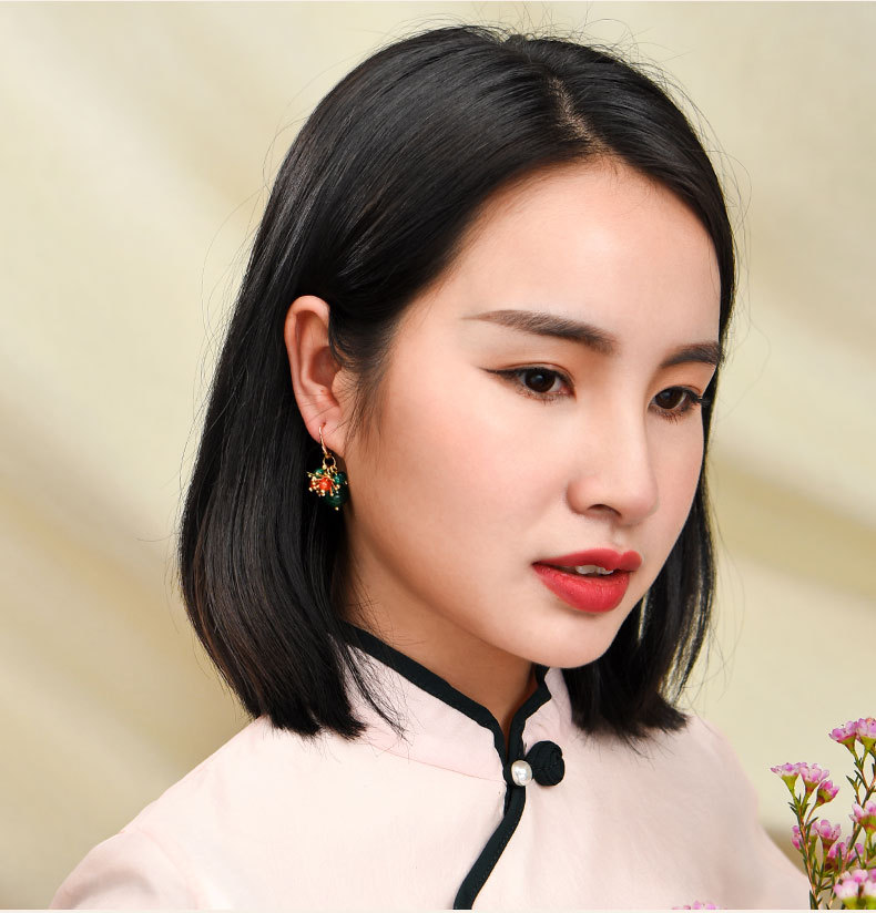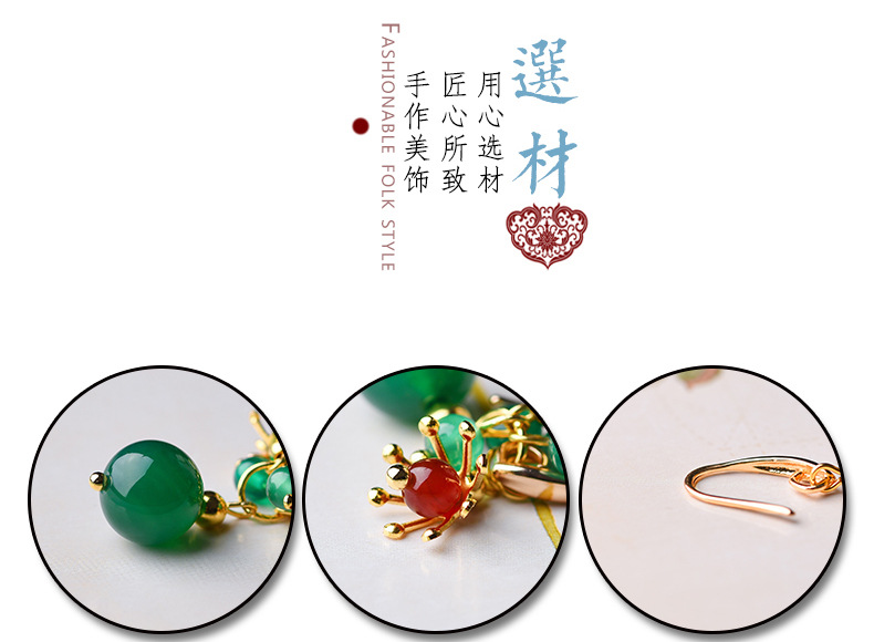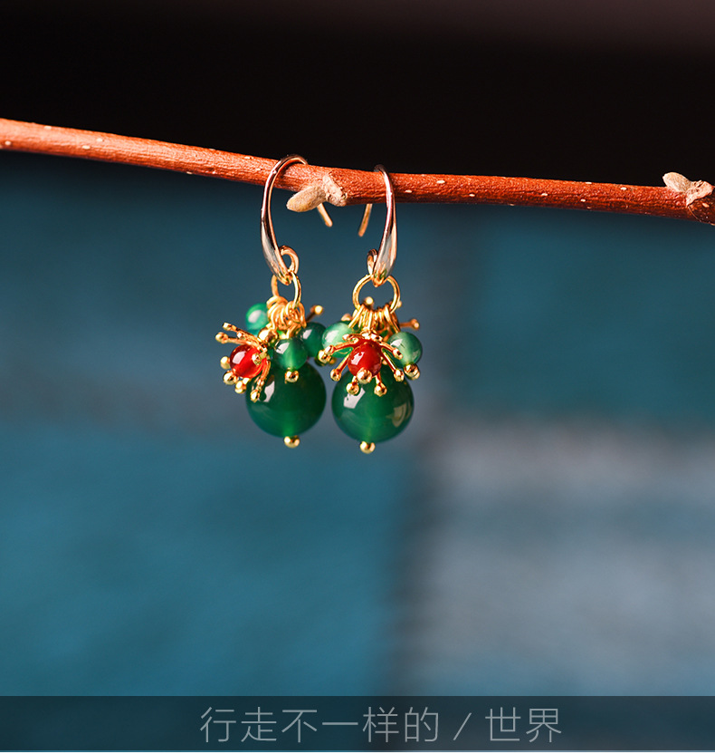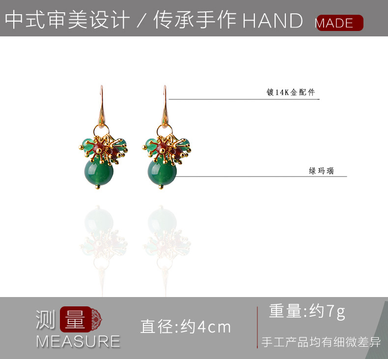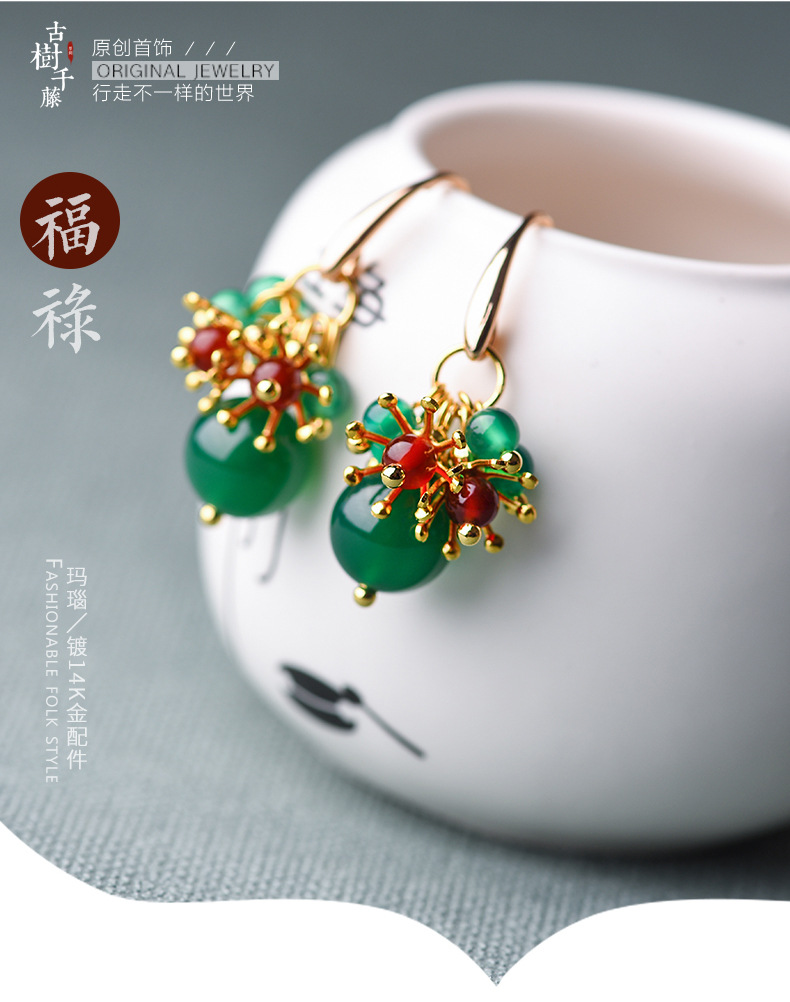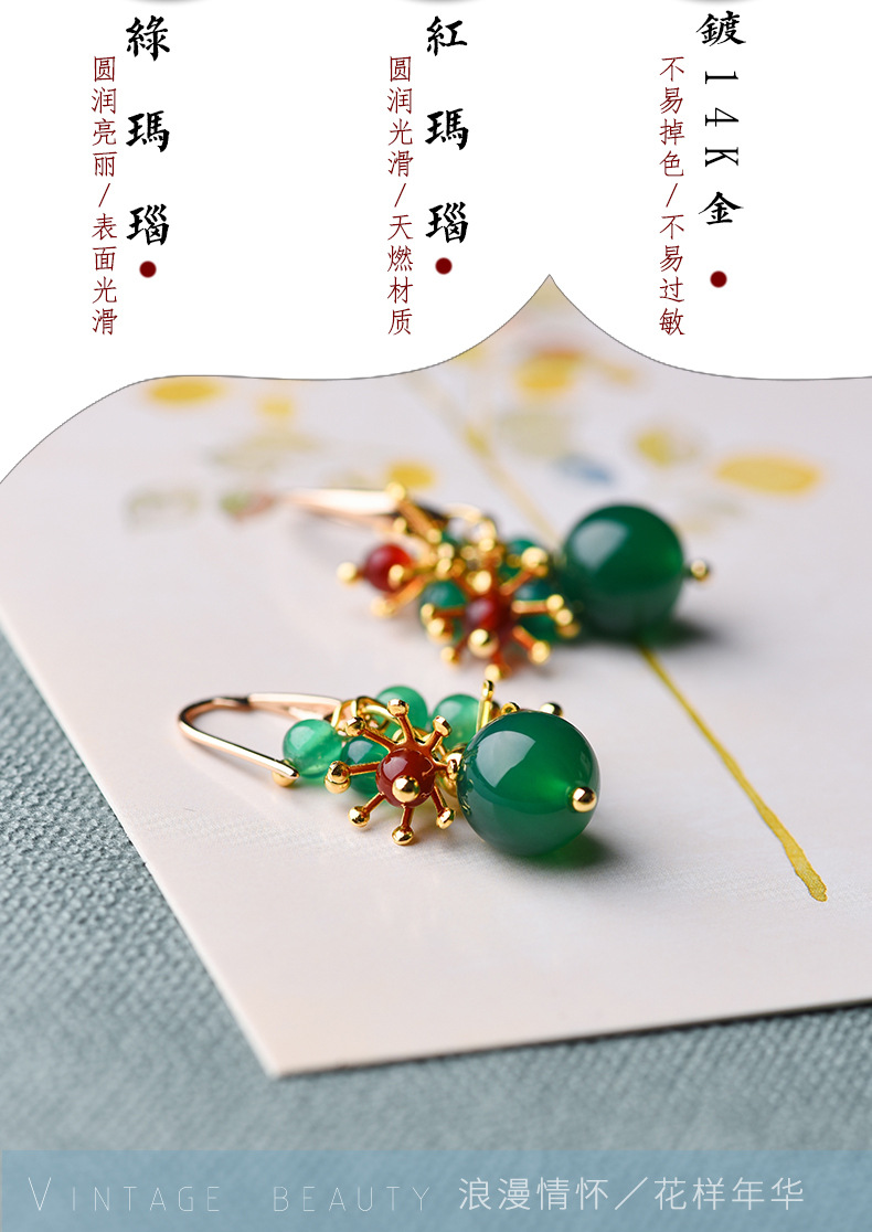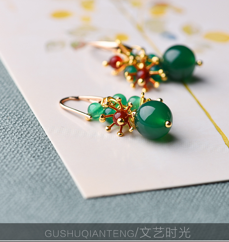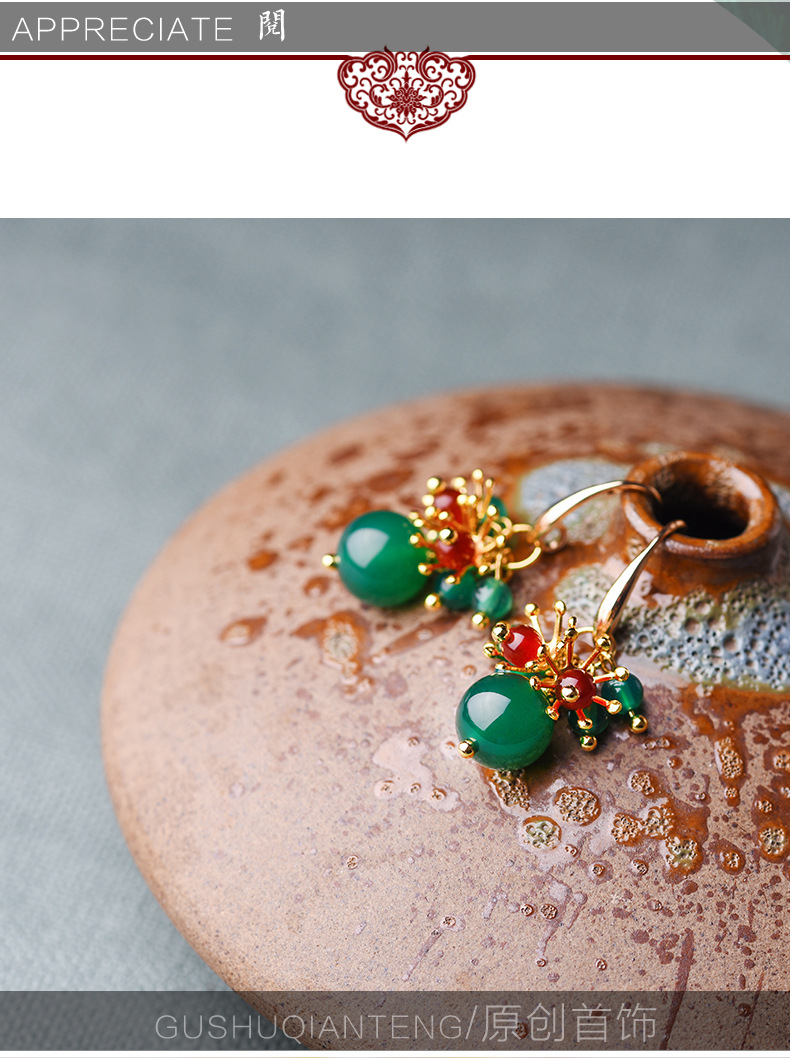 JGL-03220171复古简约耳坠唯美绿玛瑙耳环古典耳环