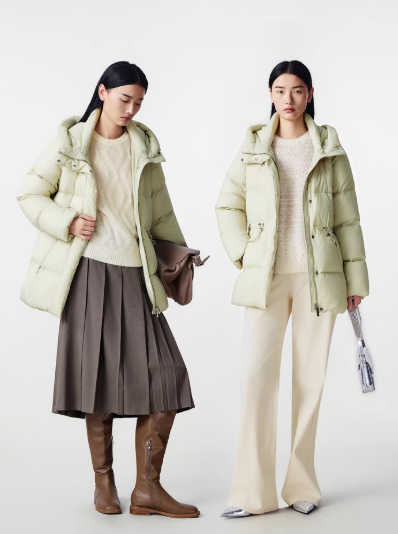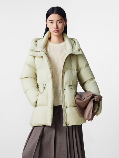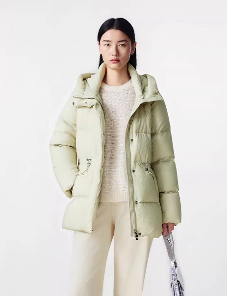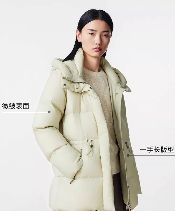 朗姿 【匈牙利白鹅绒】 连帽抽绳收腰中长羽绒服LCGD98OMC002
