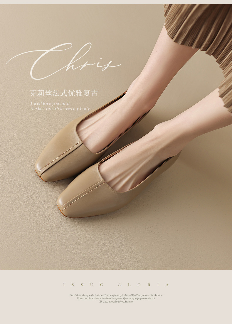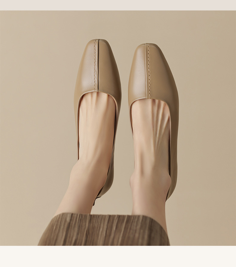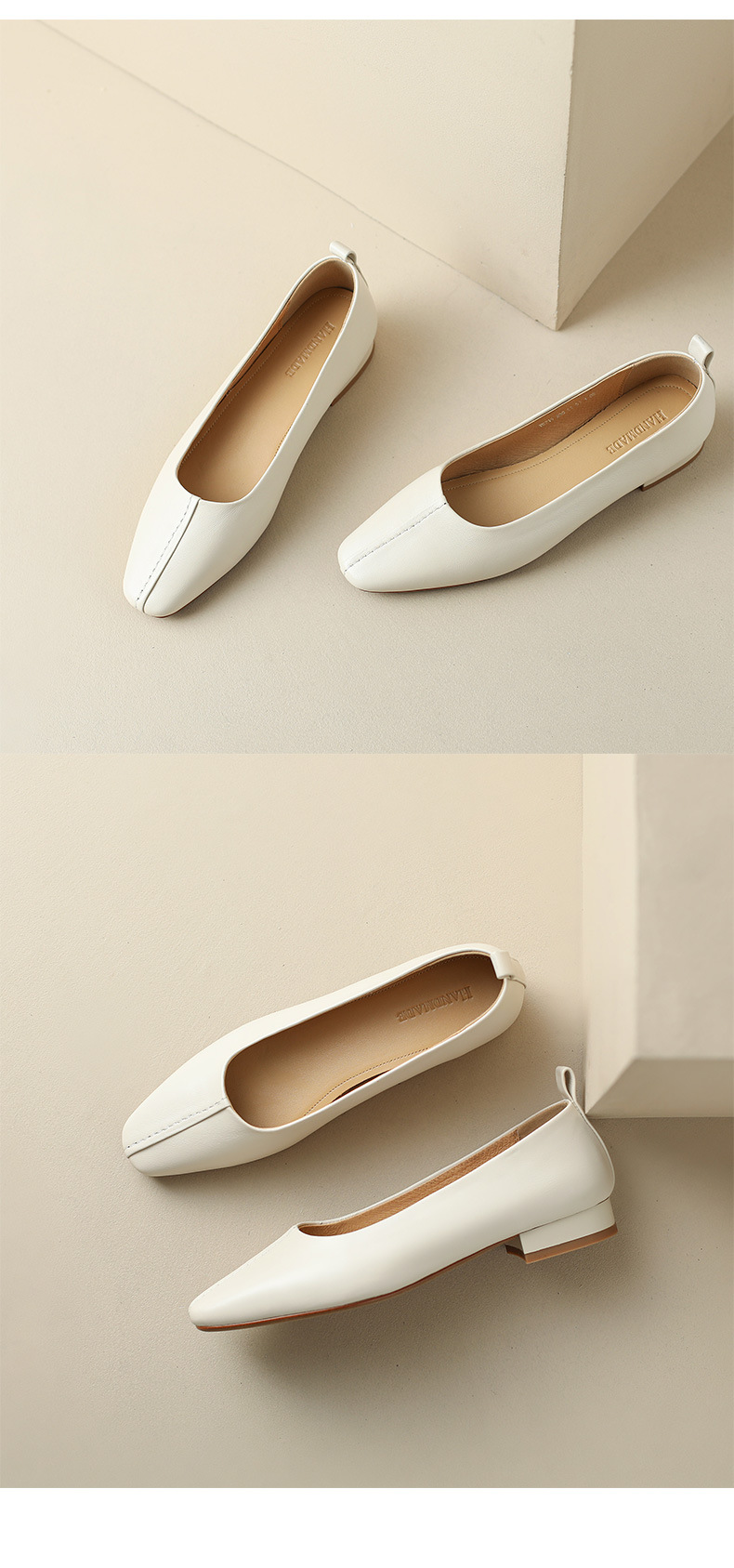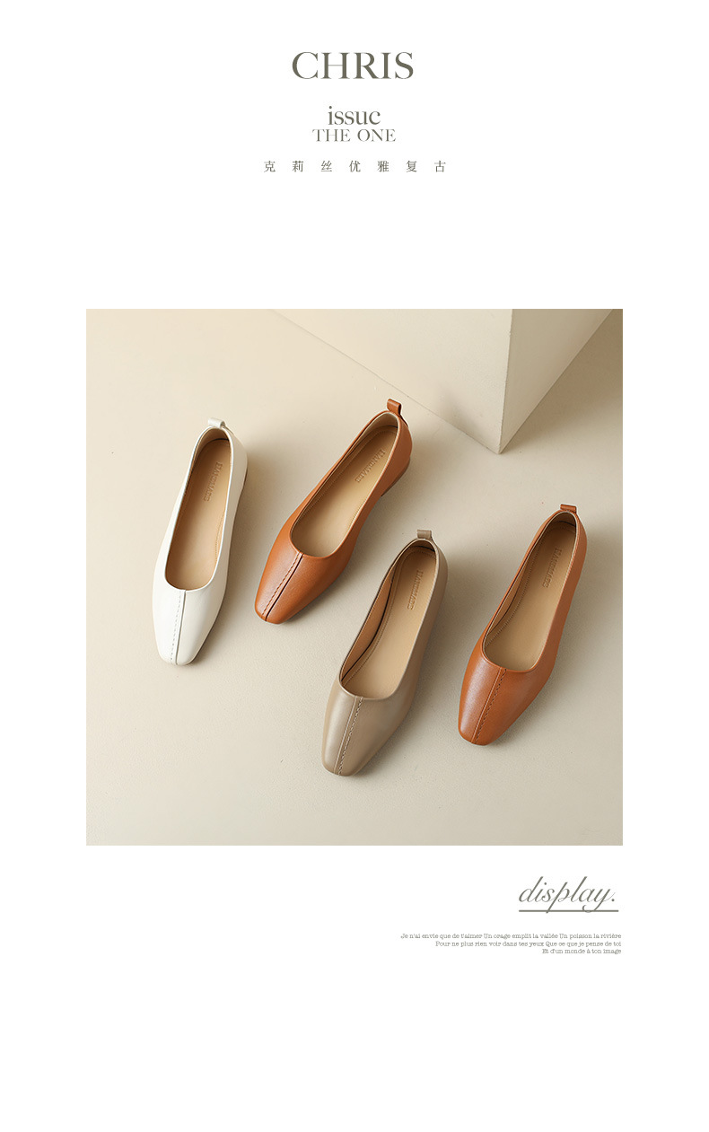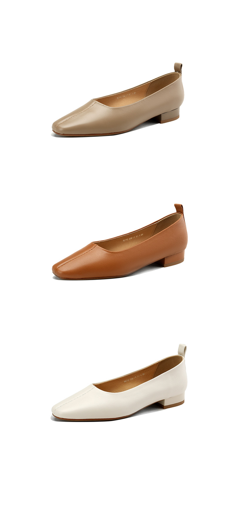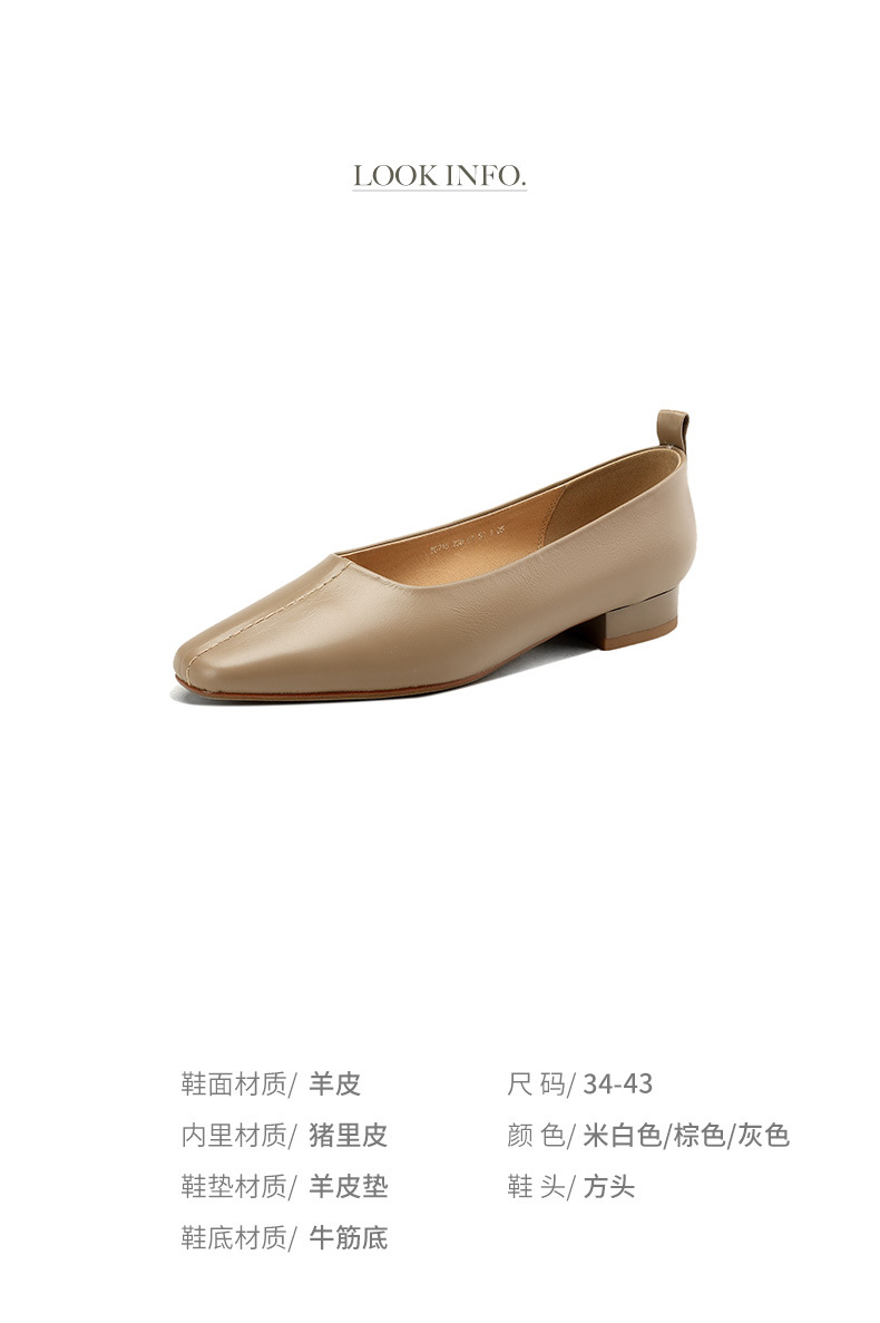 低跟米白色方头玛丽珍鞋,焦糖色平底鞋女软底浅口单鞋OFSM-6715