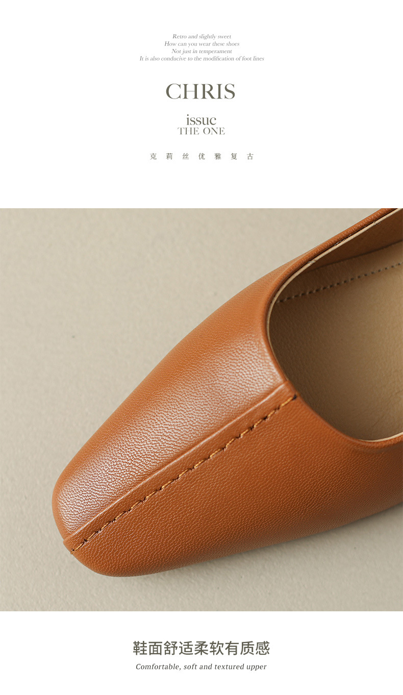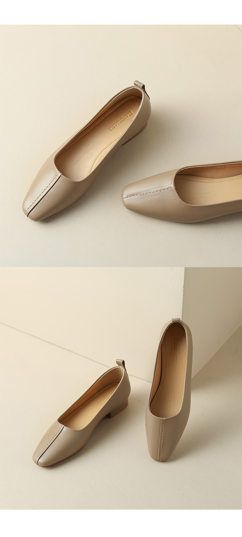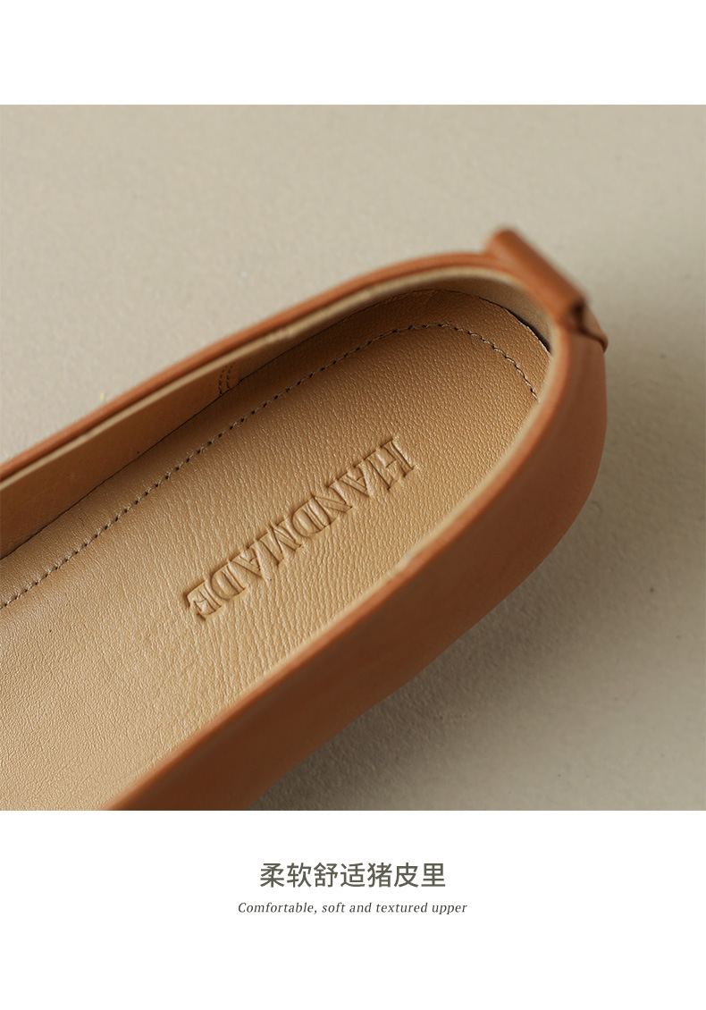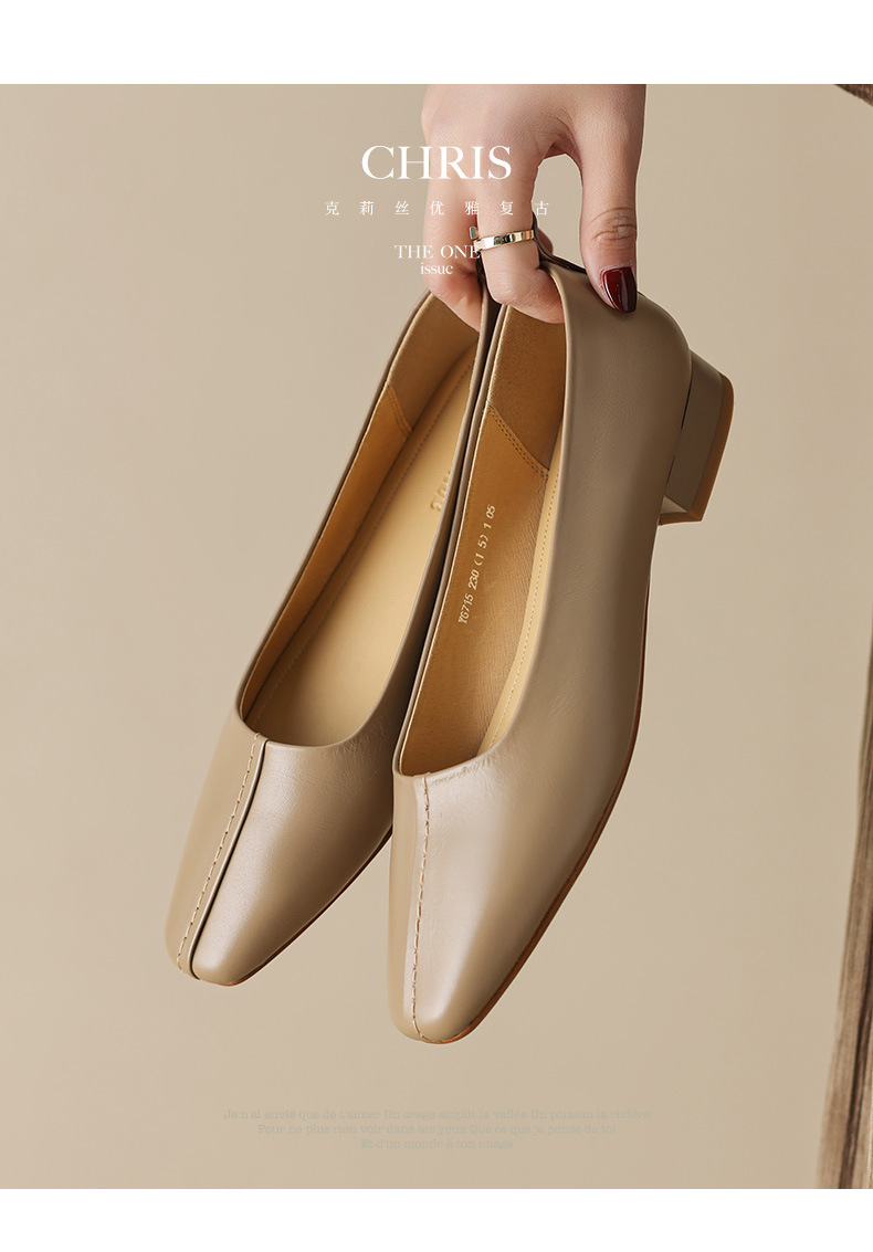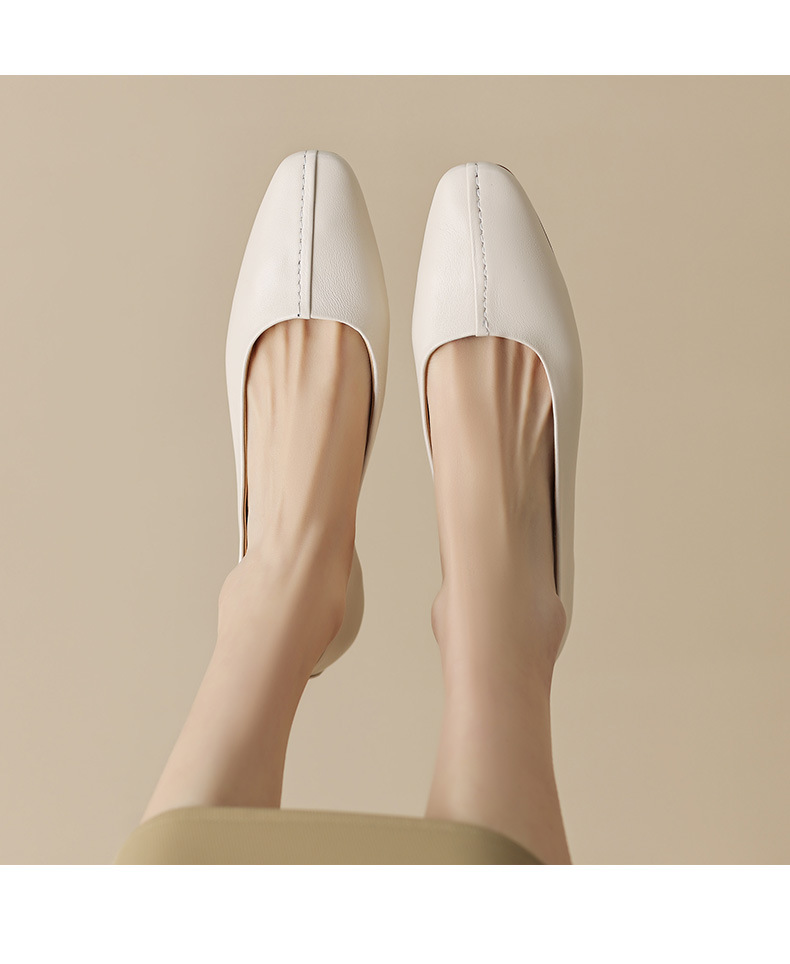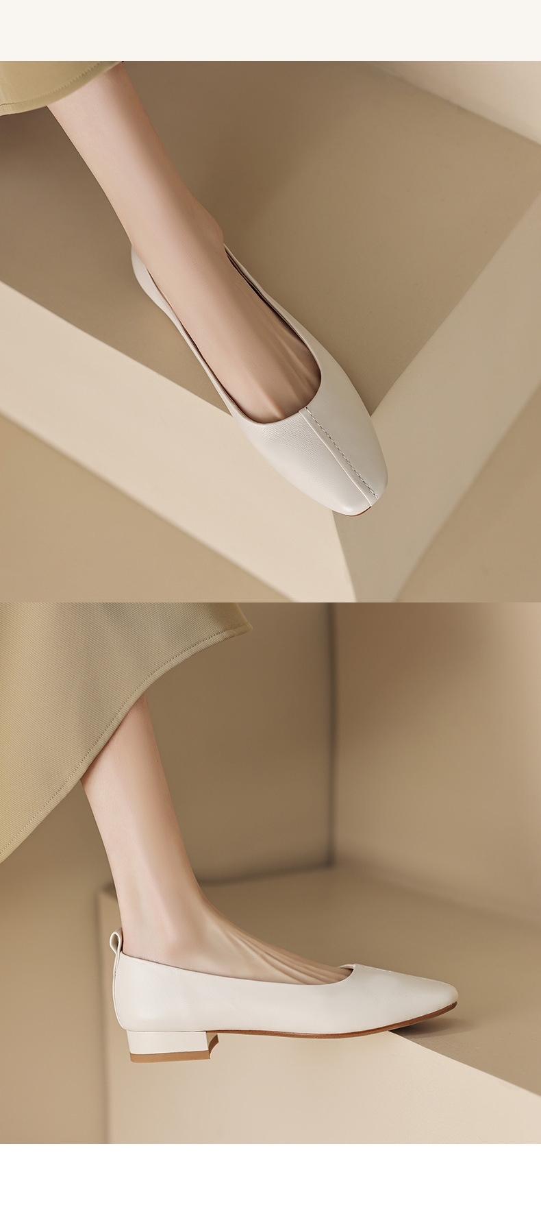 低跟米白色方头玛丽珍鞋,焦糖色平底鞋女软底浅口单鞋OFSM-6715