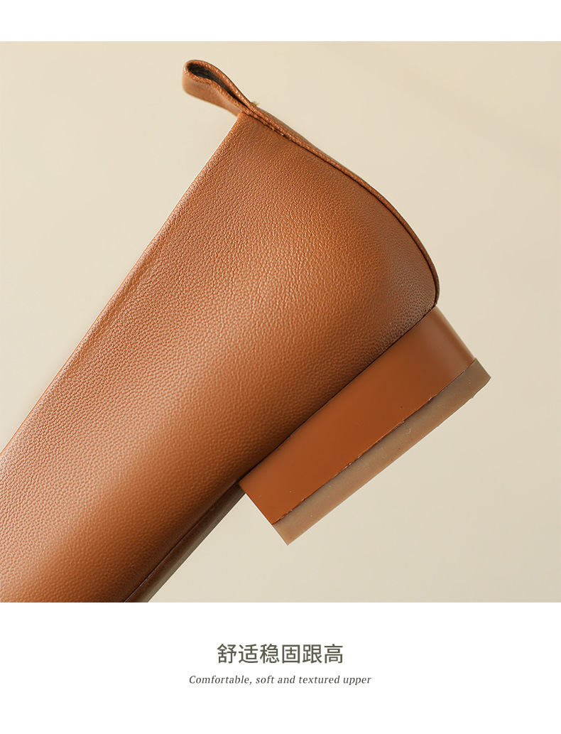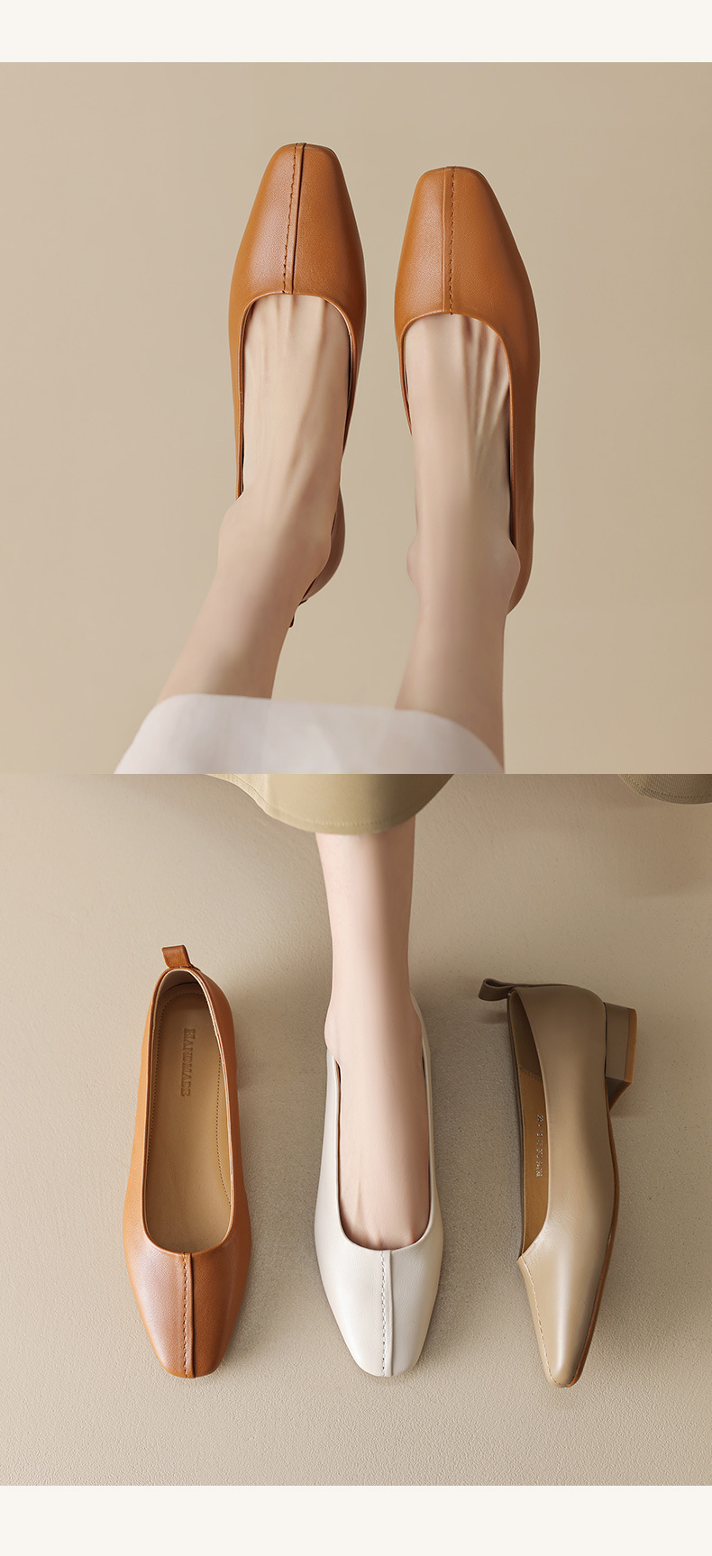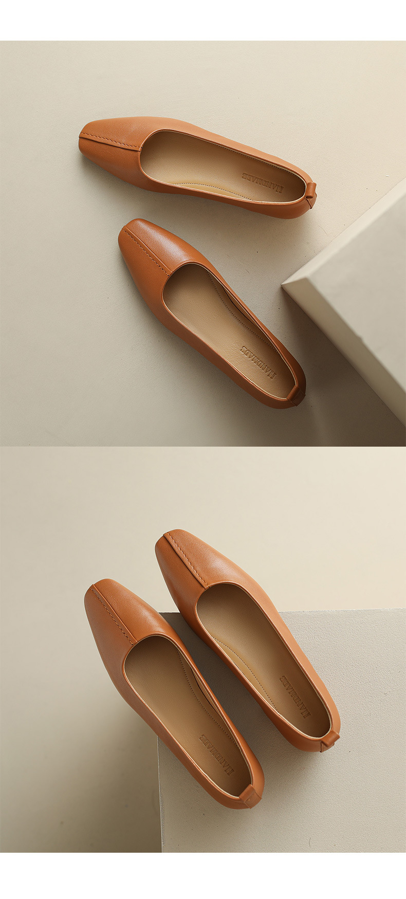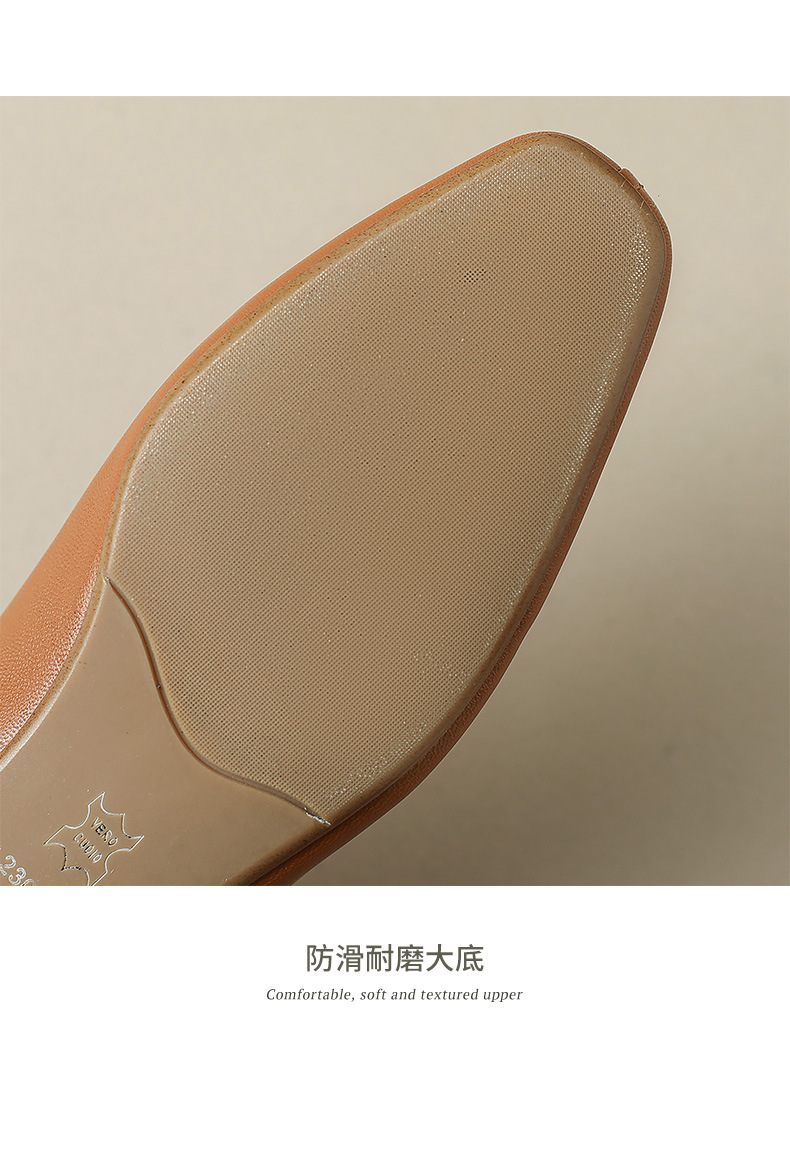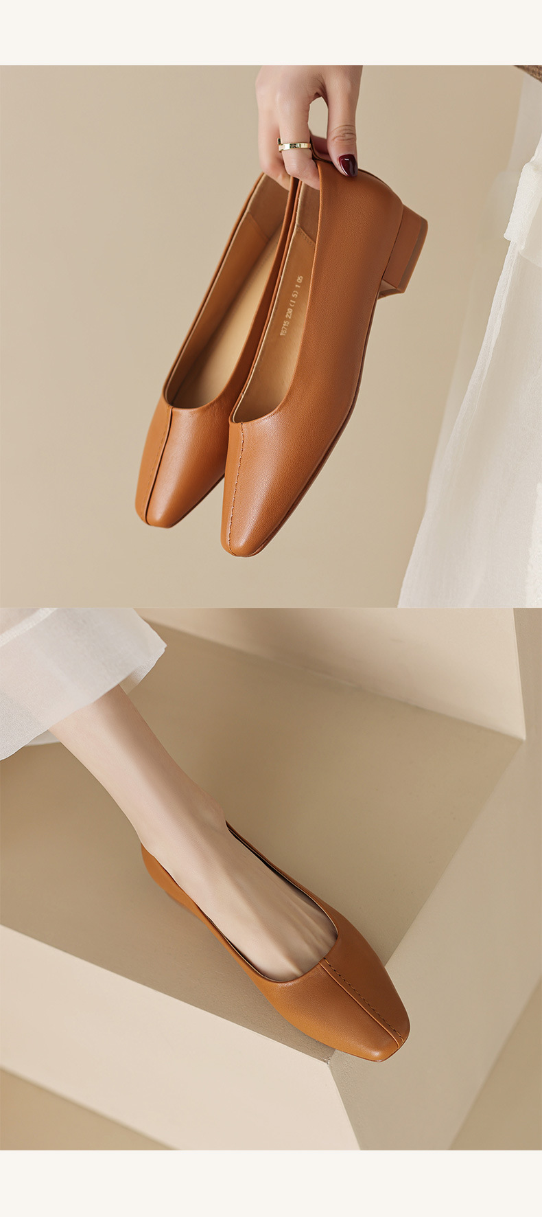 低跟米白色方头玛丽珍鞋,焦糖色平底鞋女软底浅口单鞋OFSM-6715