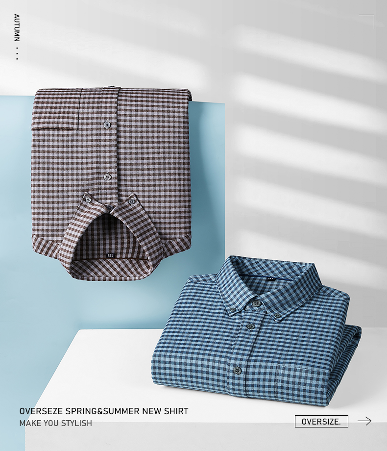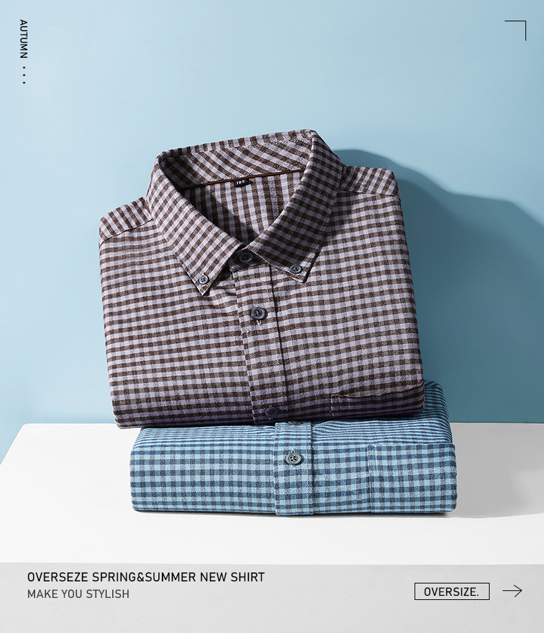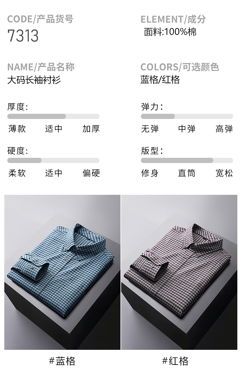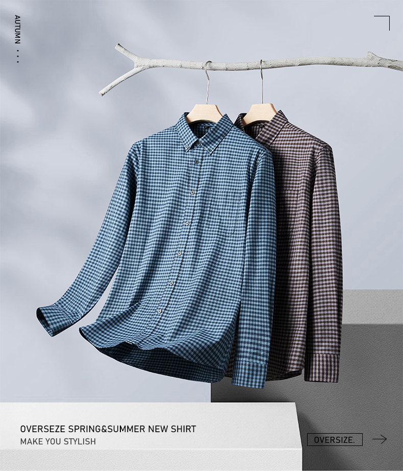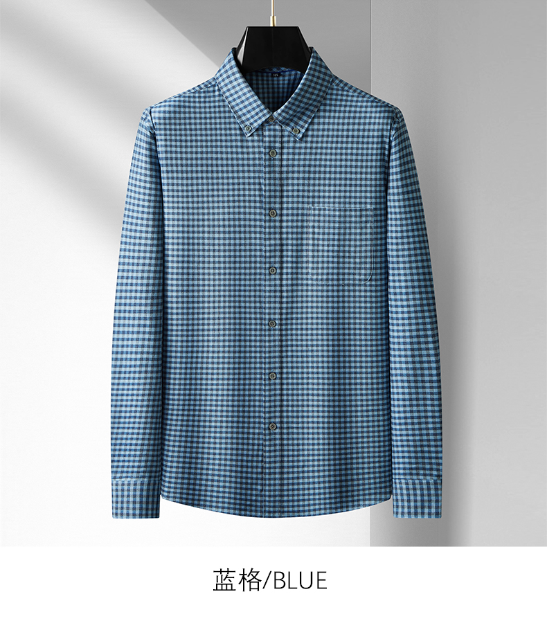 【100%棉】【新款DM】大依优型大码纯棉磨毛格子长袖衬衫男宽松加肥加大码男士休闲商务衬衣上衣胖子