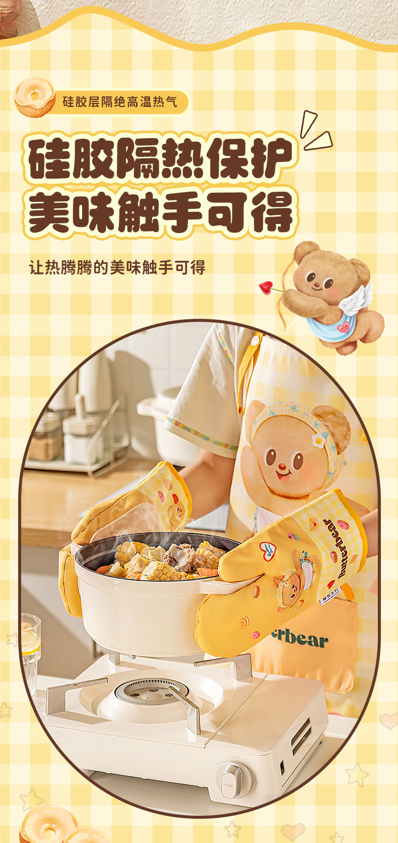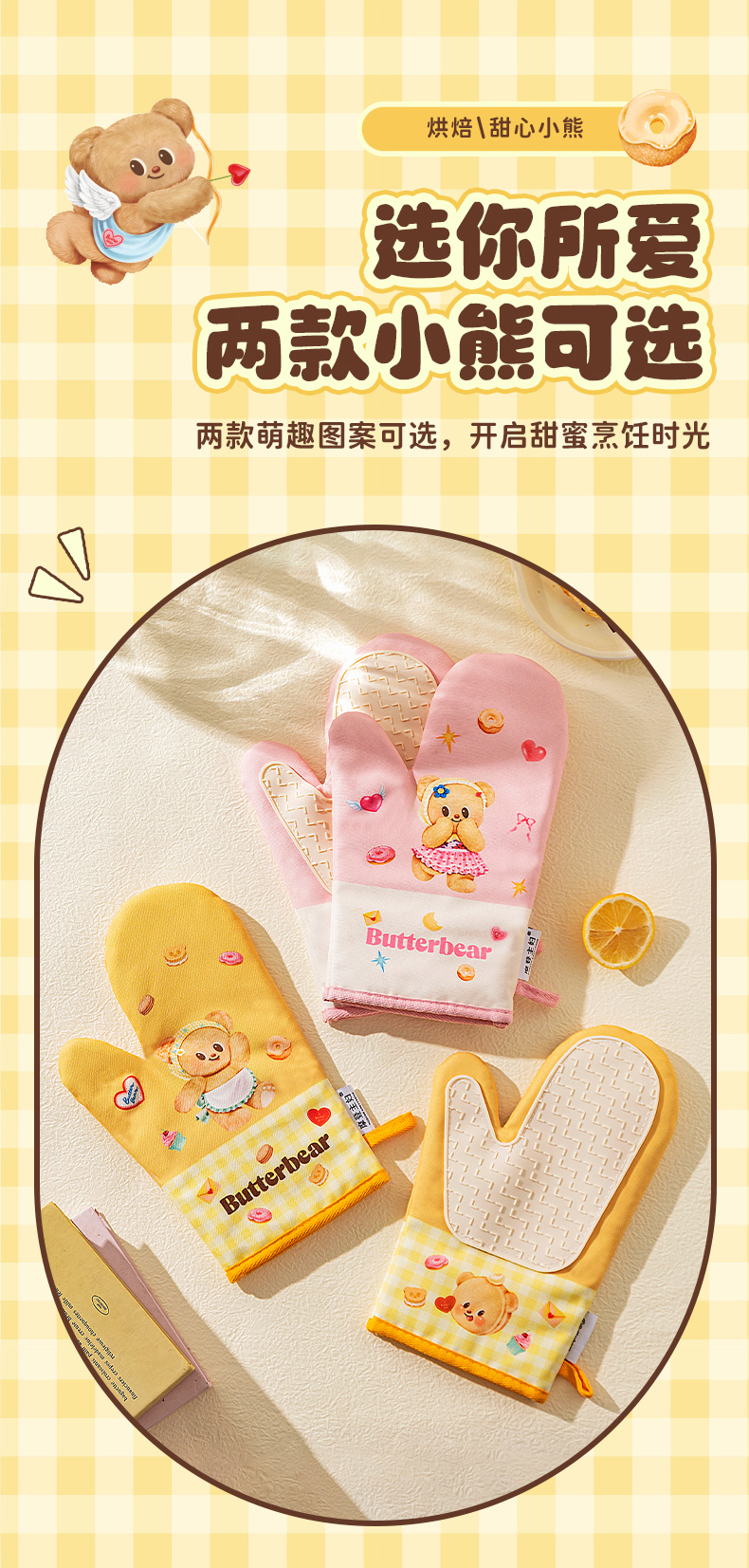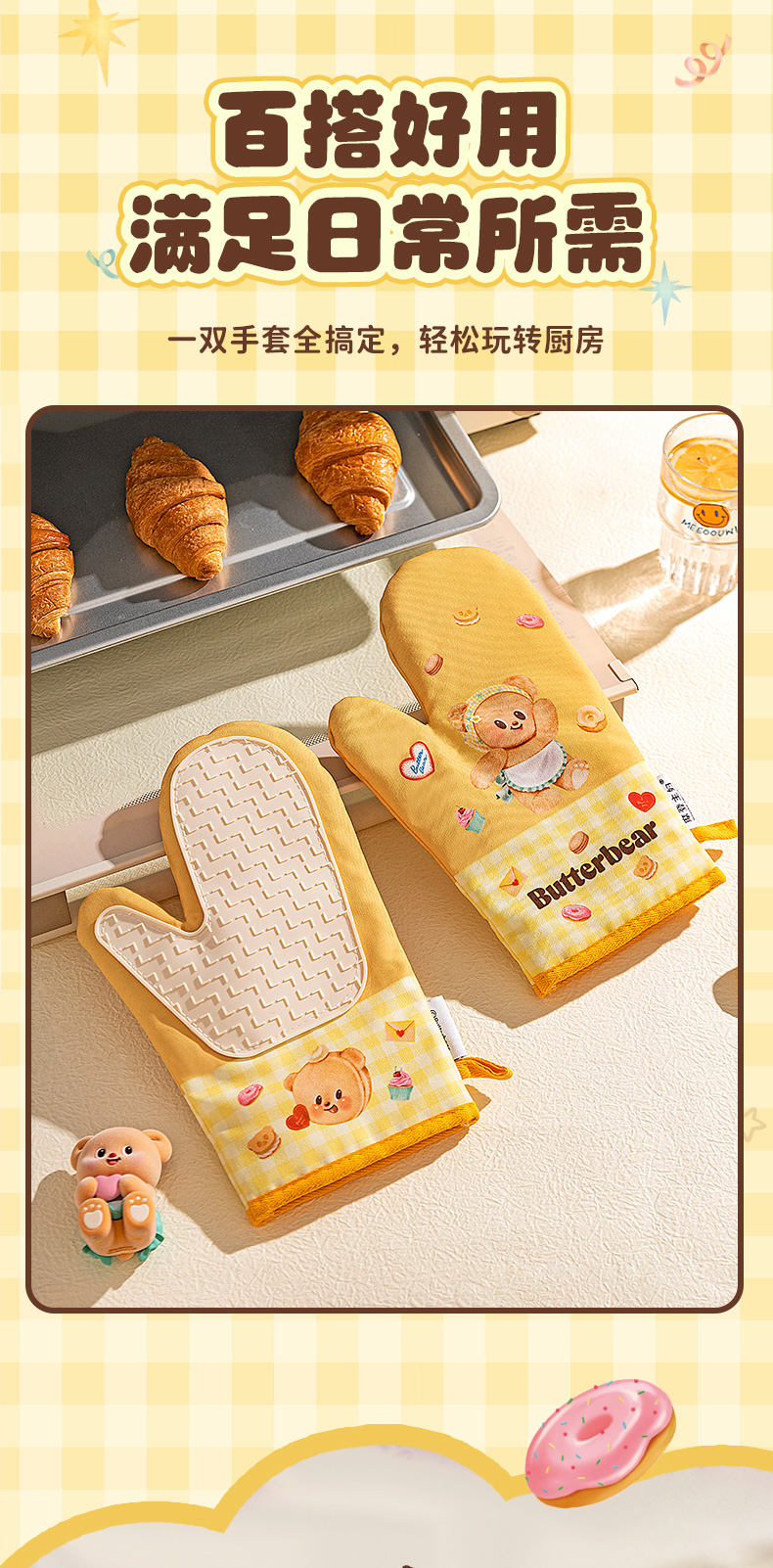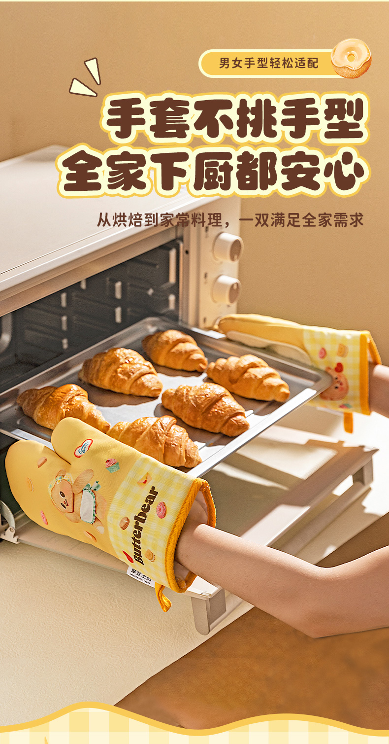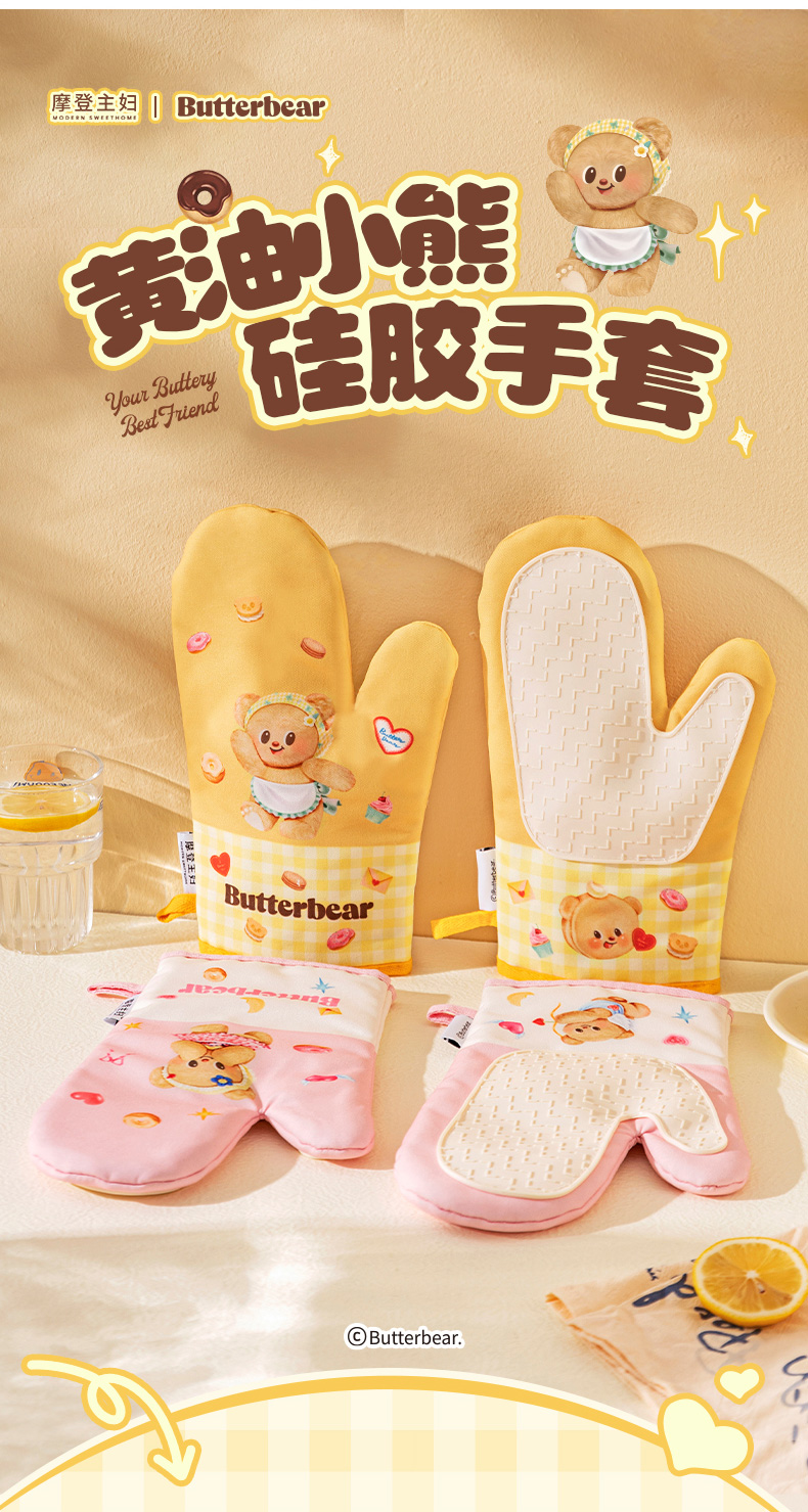 摩登主妇黄油小熊隔热防烫手套厚烤箱微波炉耐高温烘焙工具