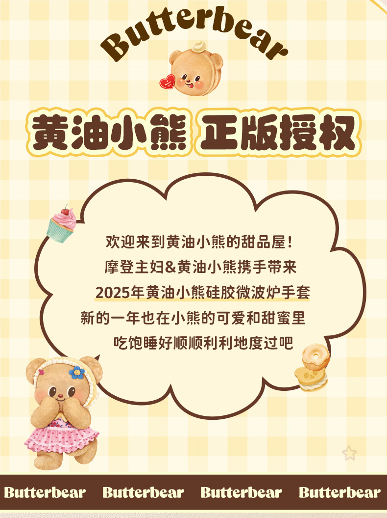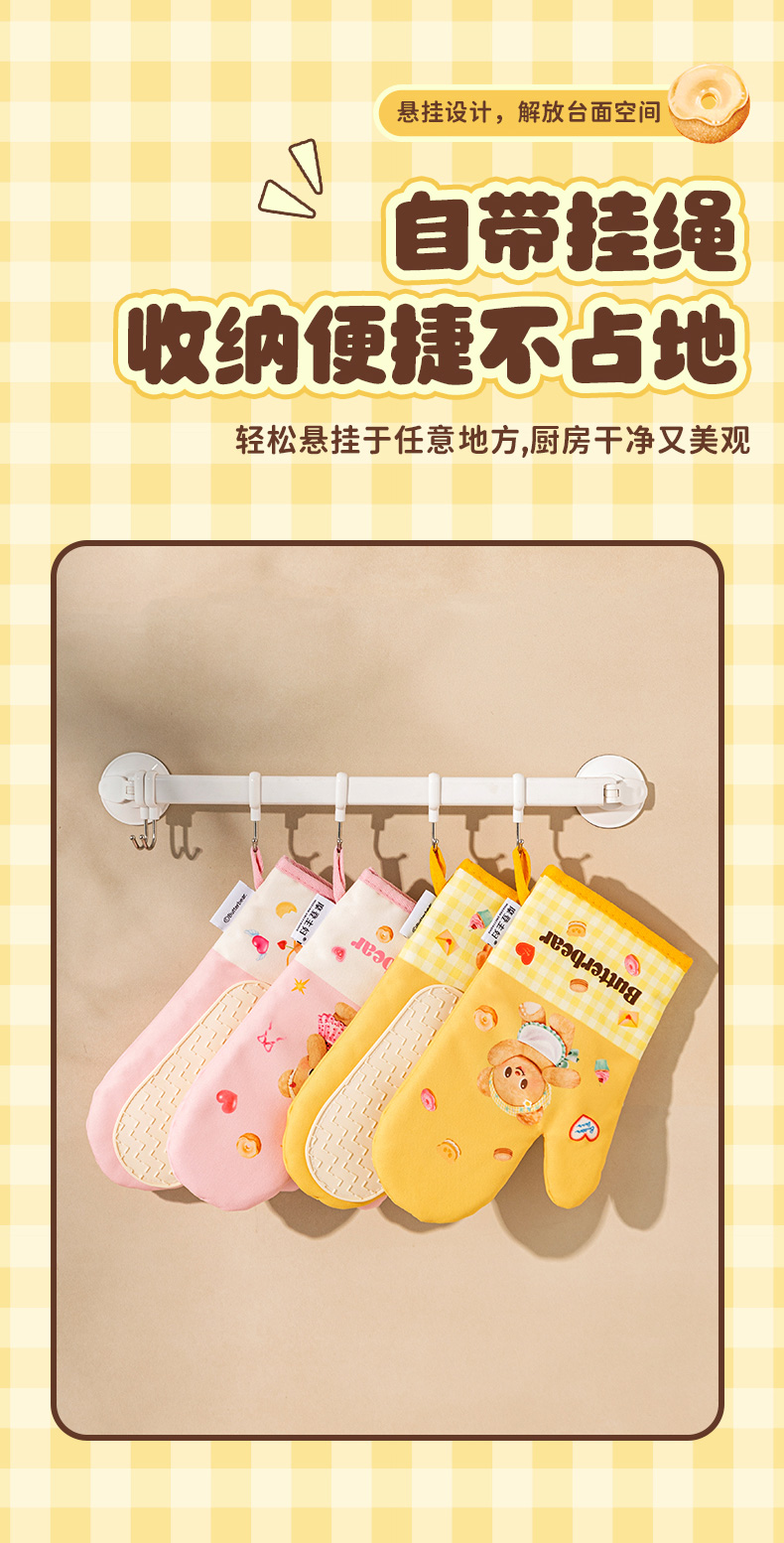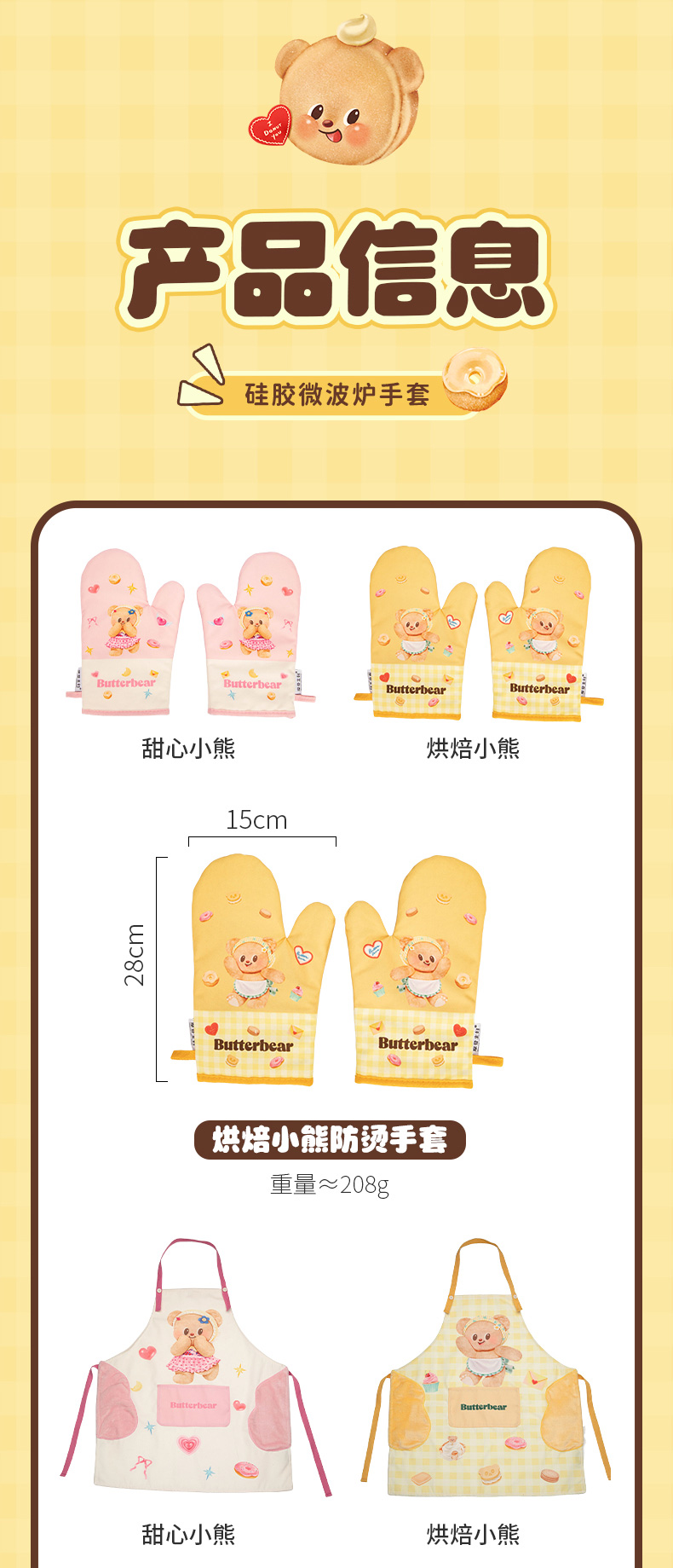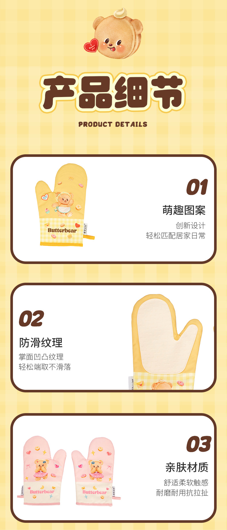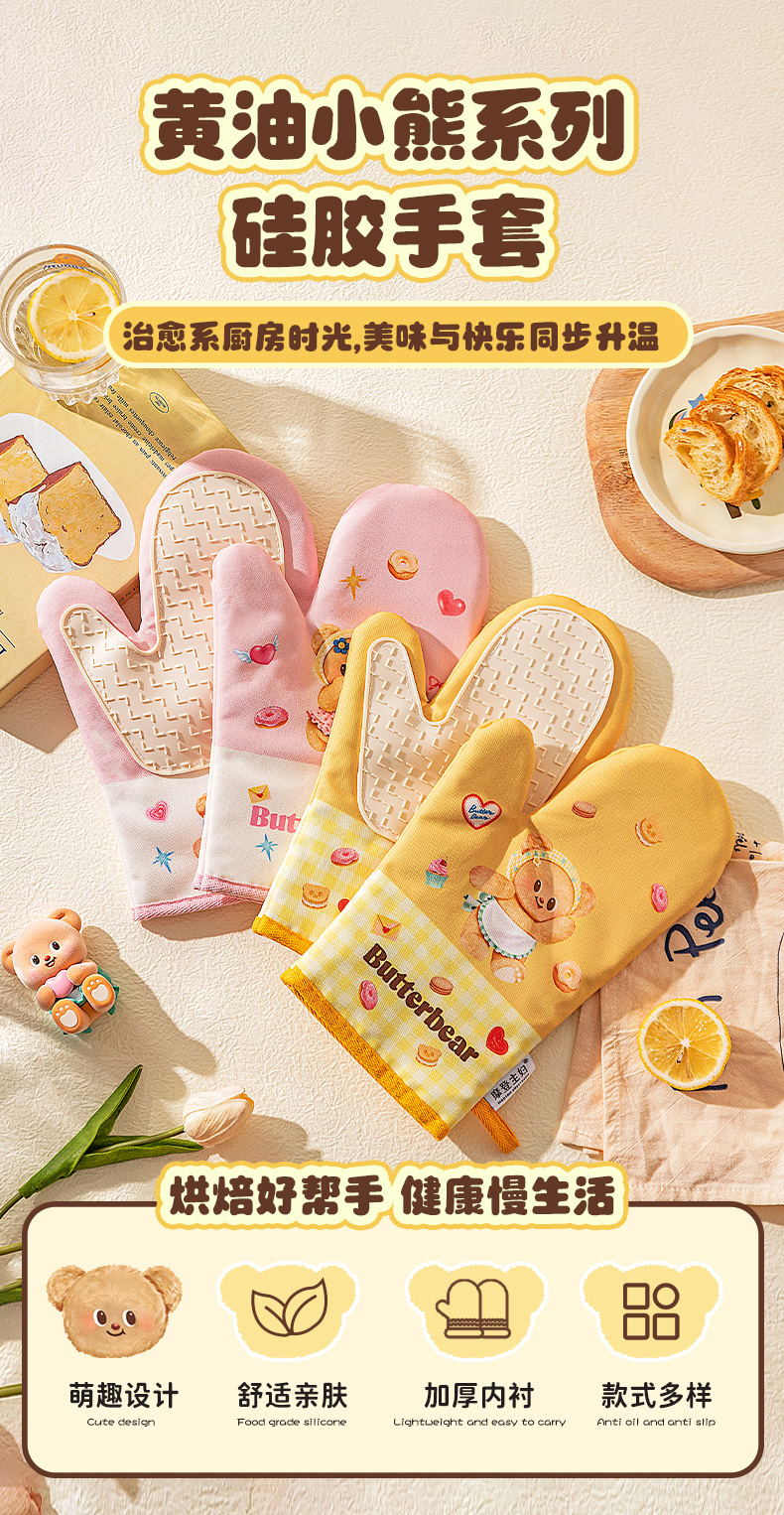 摩登主妇黄油小熊隔热防烫手套厚烤箱微波炉耐高温烘焙工具