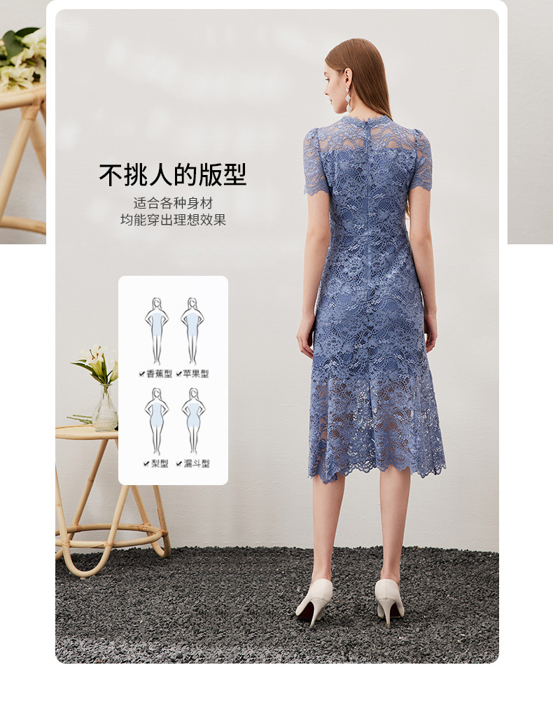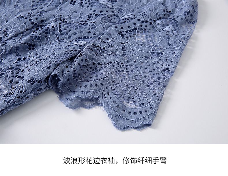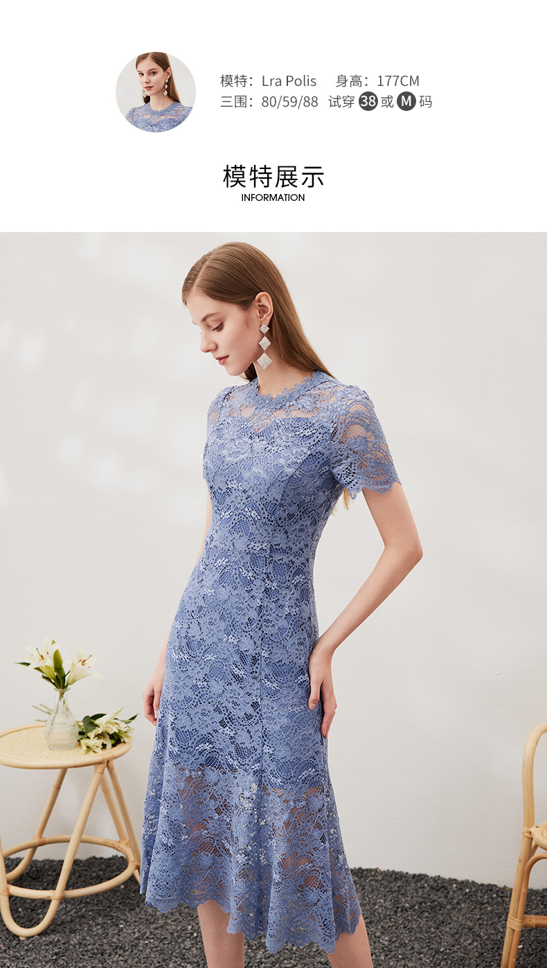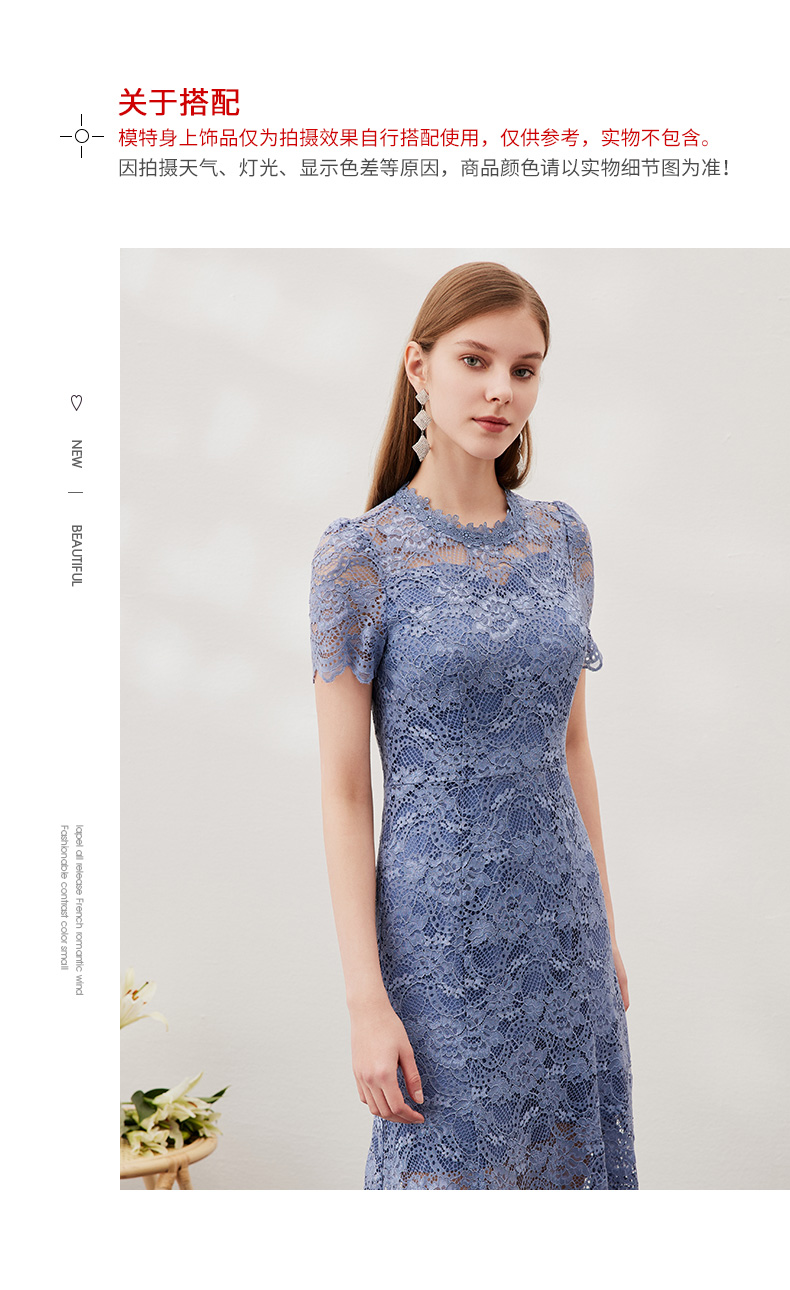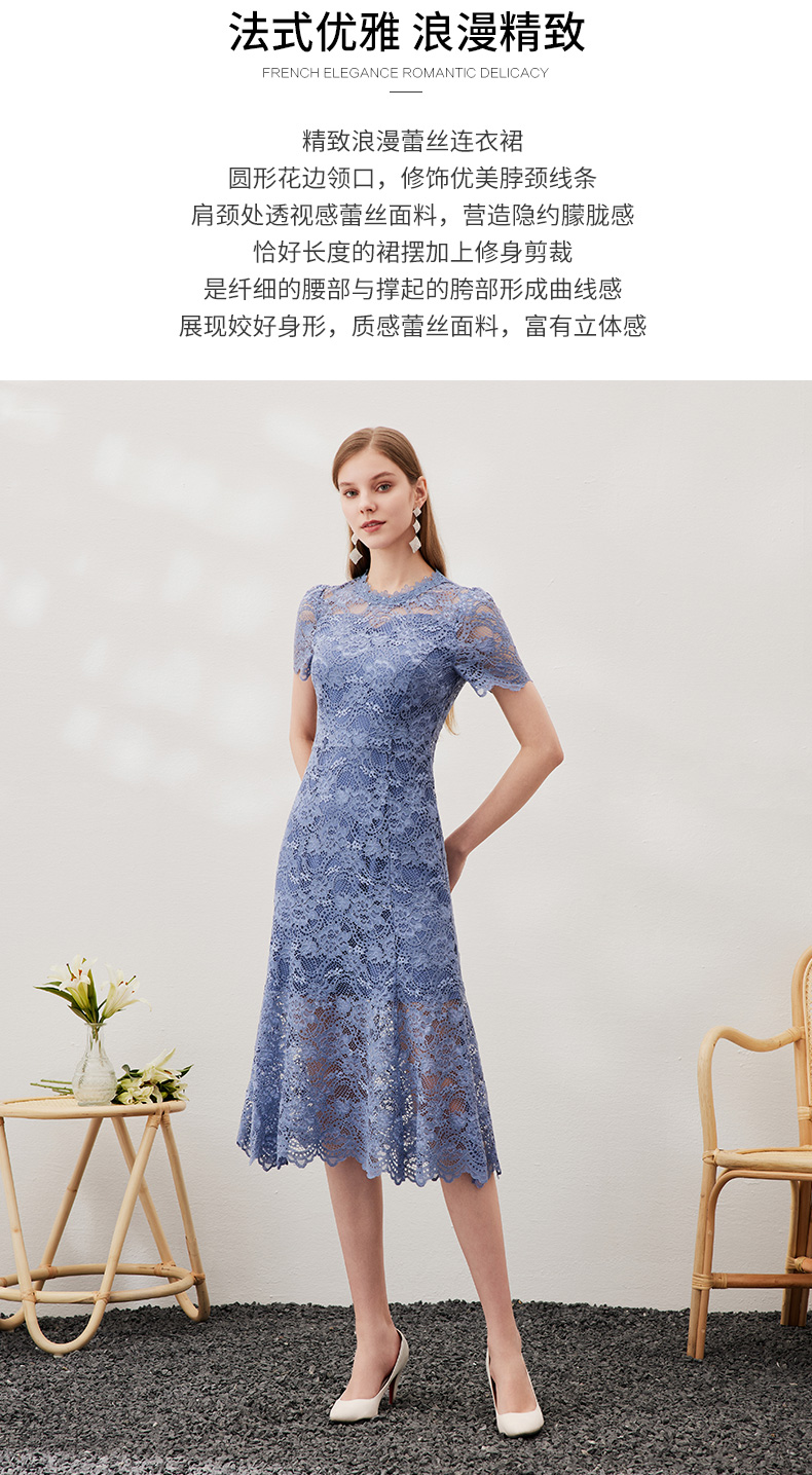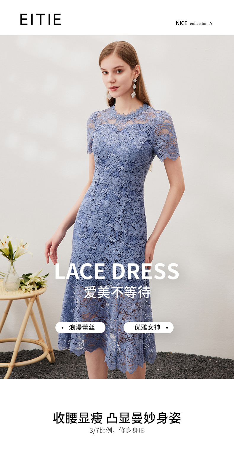 EITIE爱特爱女装春夏七分袖花边领口收腰显瘦优雅蕾丝连衣裙5707466