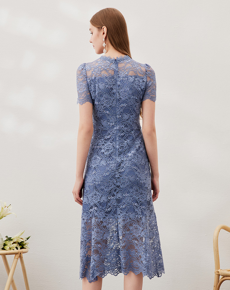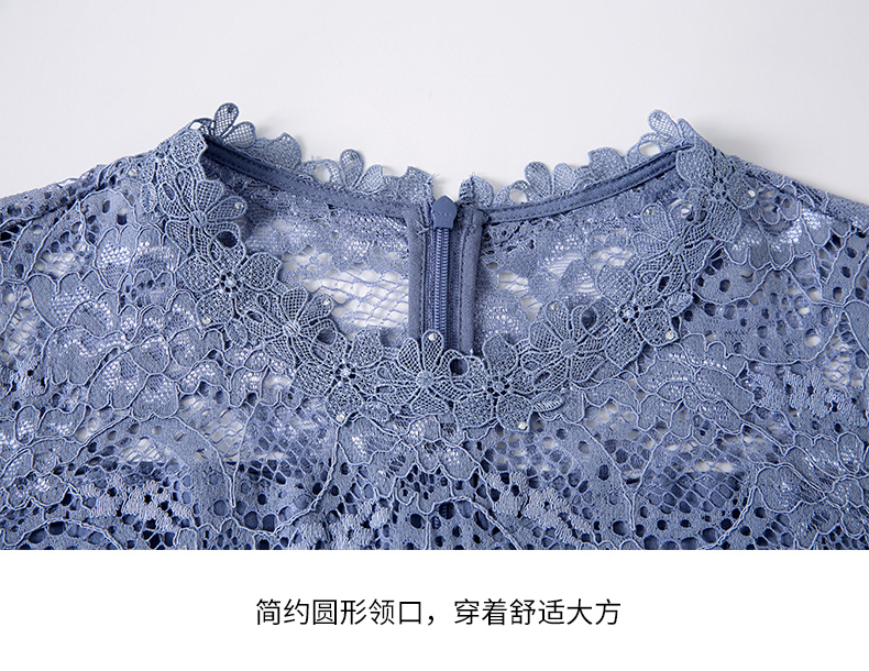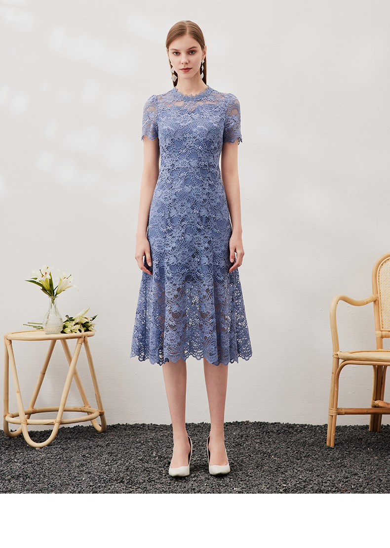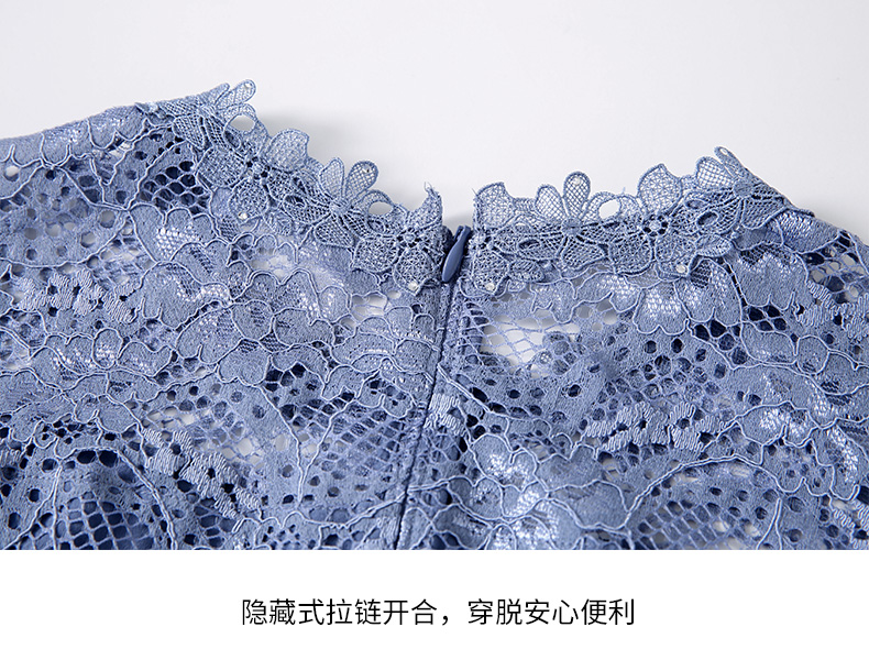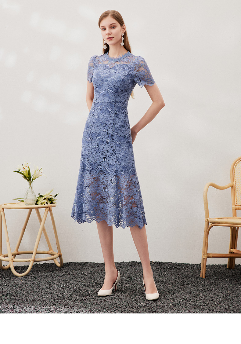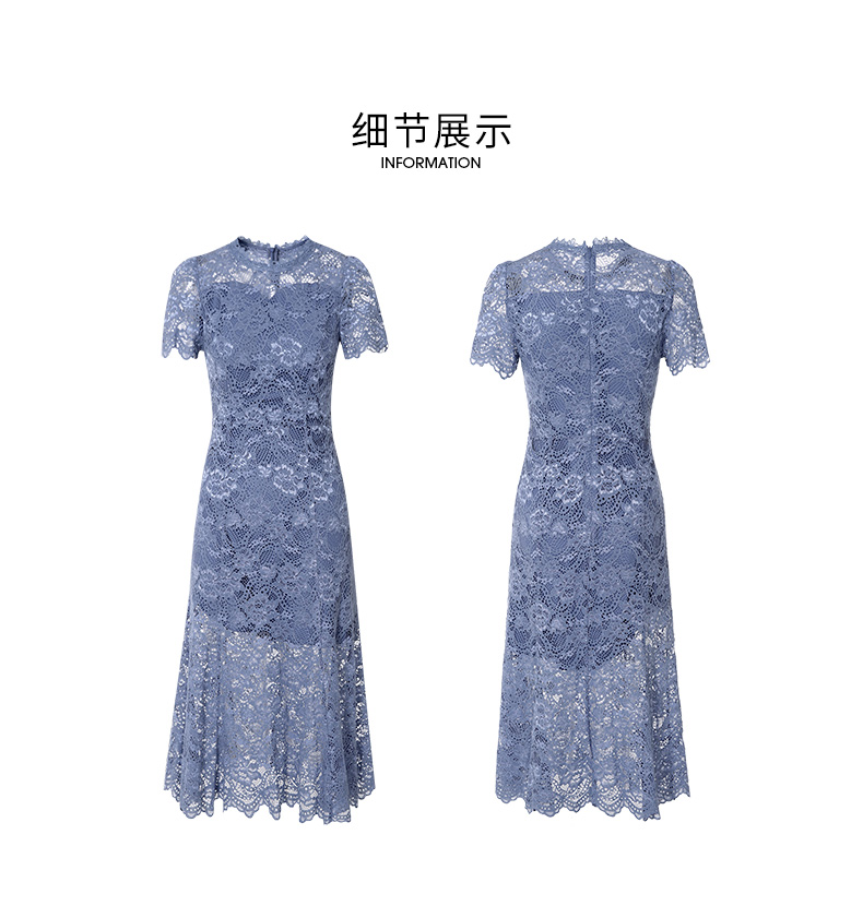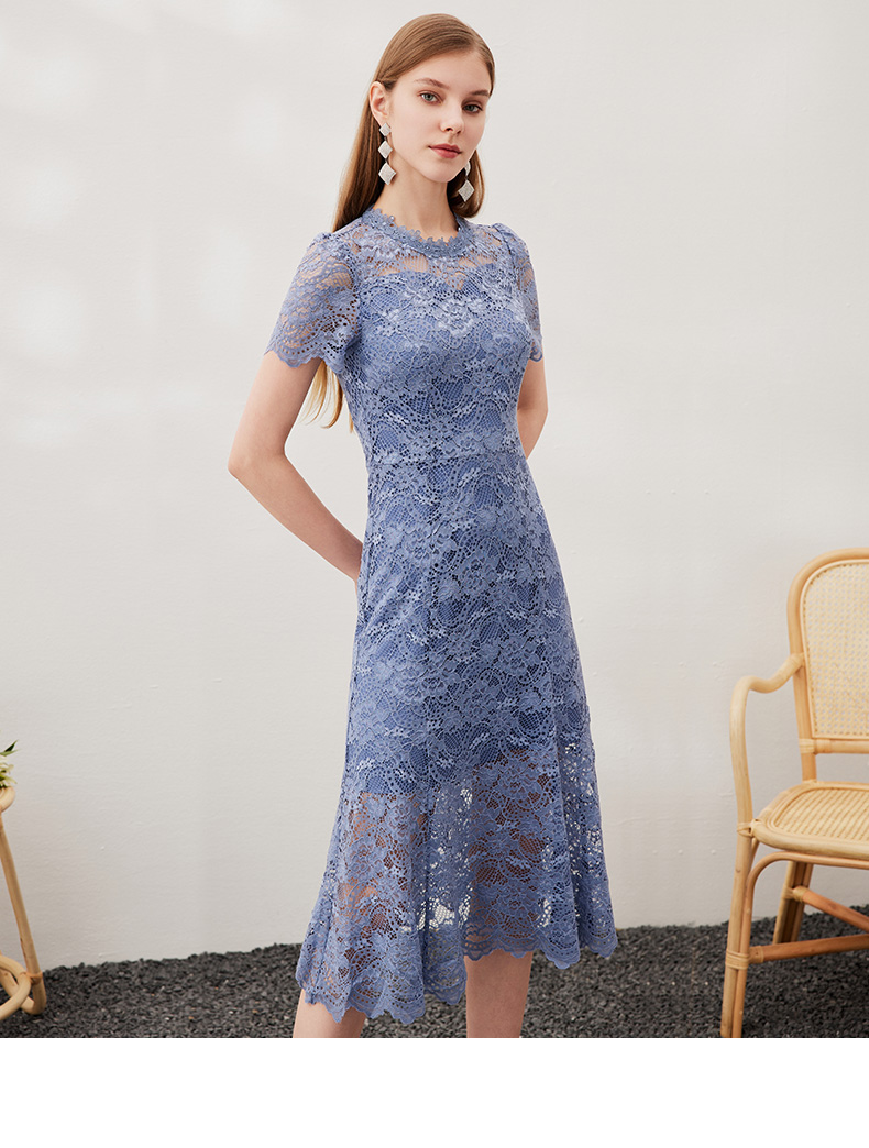 EITIE爱特爱女装春夏七分袖花边领口收腰显瘦优雅蕾丝连衣裙5707466
