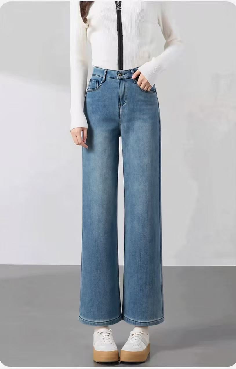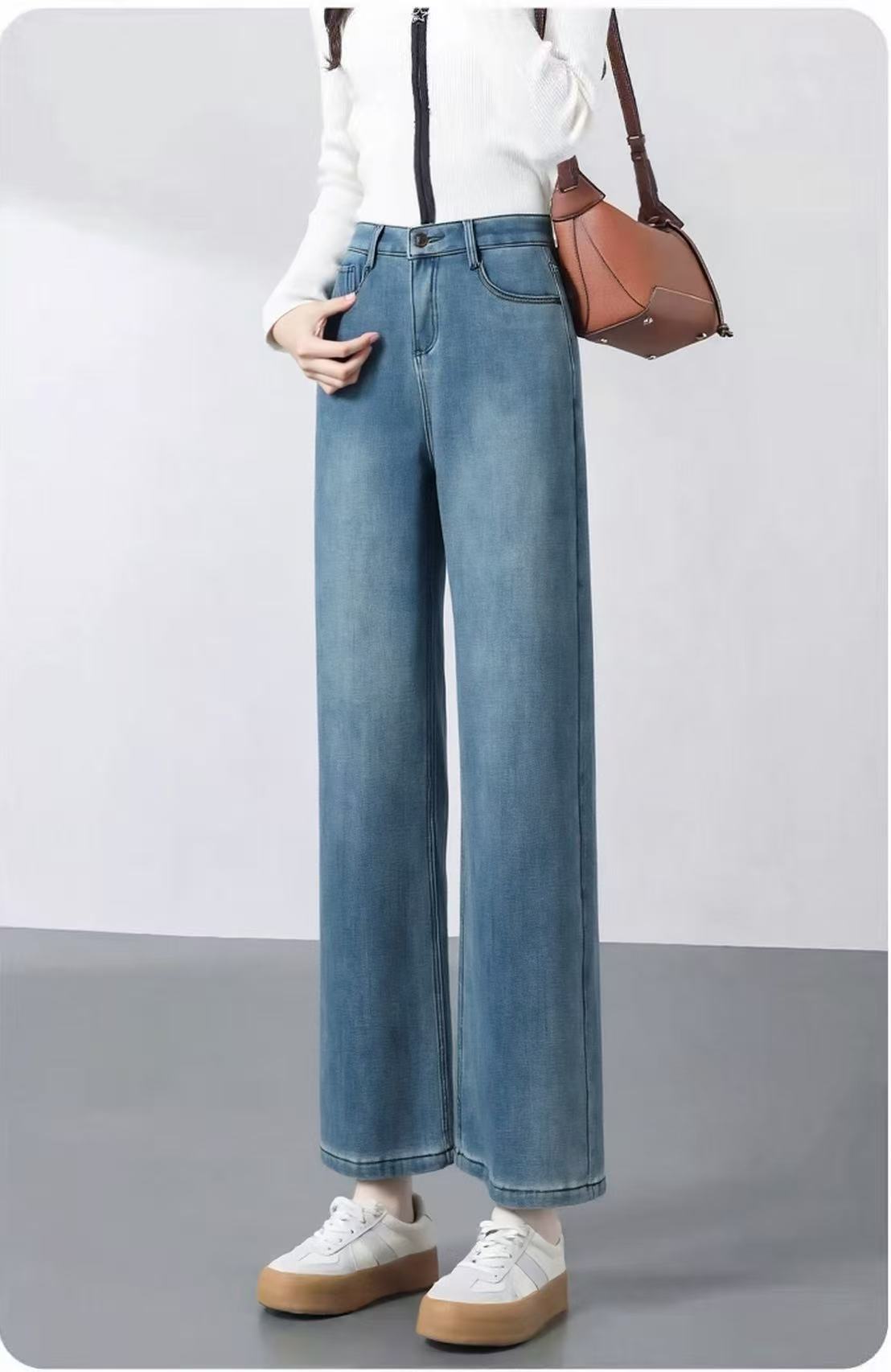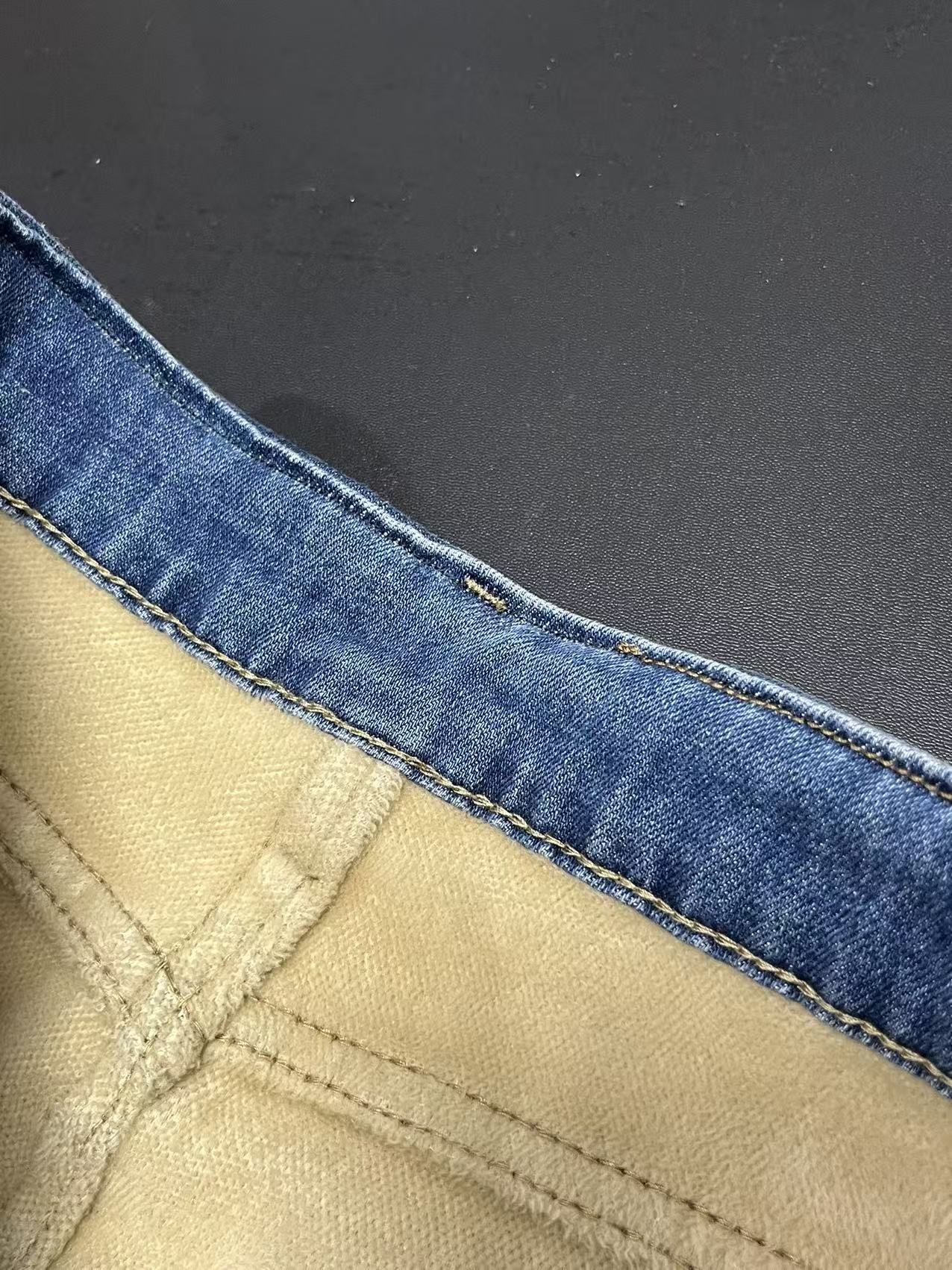 🔥🔥【2025爆款牛仔】波浪边口袋密密绒~6883窄版小个子气质冬季加绒牛仔直筒裤-喜出
