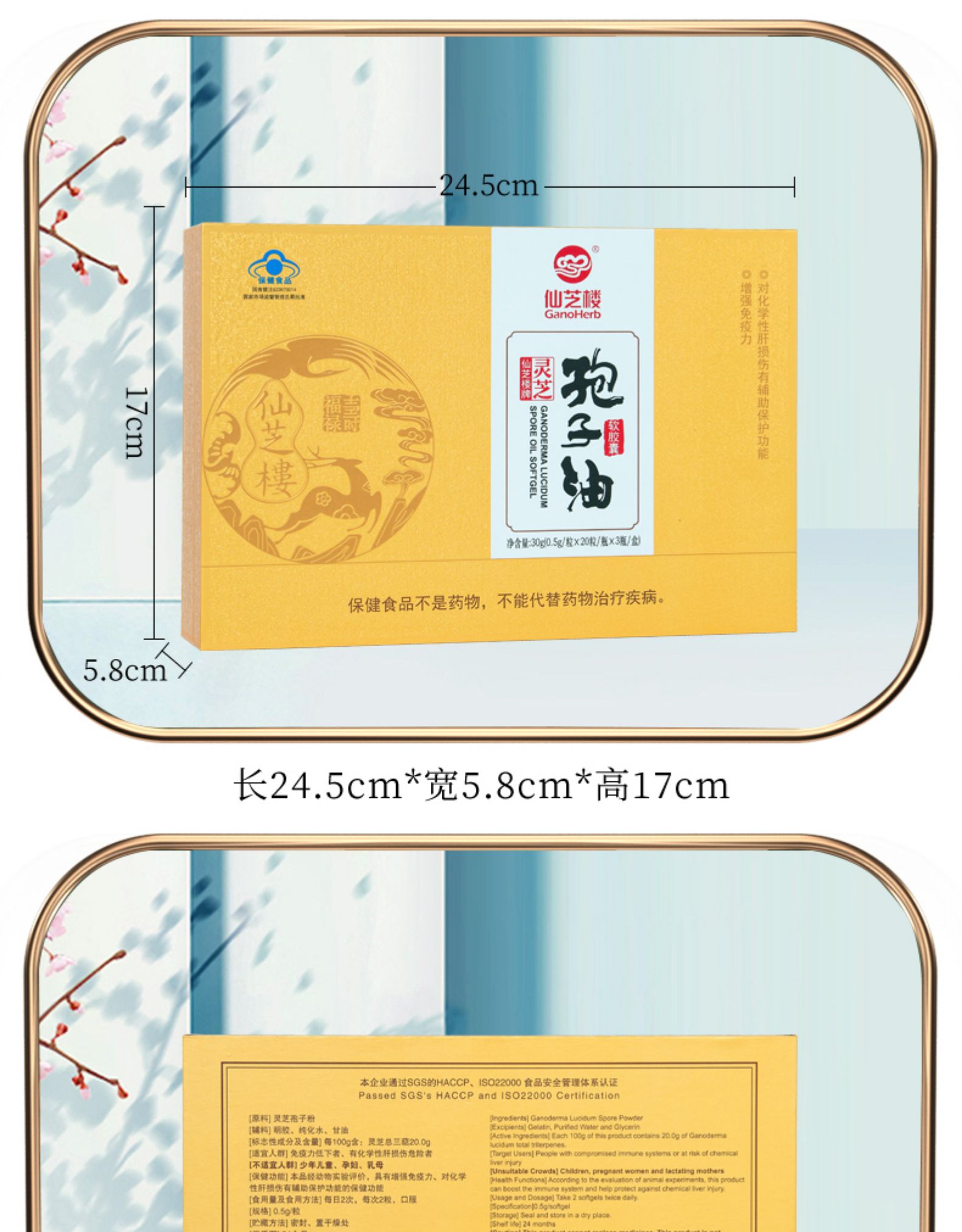 仙芝楼牌灵芝孢子油软胶囊 0.5g/粒*20粒*3瓶