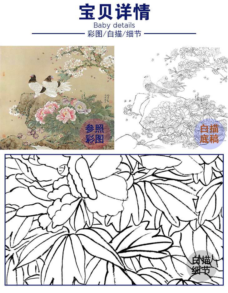 工笔花鸟白描底稿-喻继高-鸽子-斗方小品册页-A491