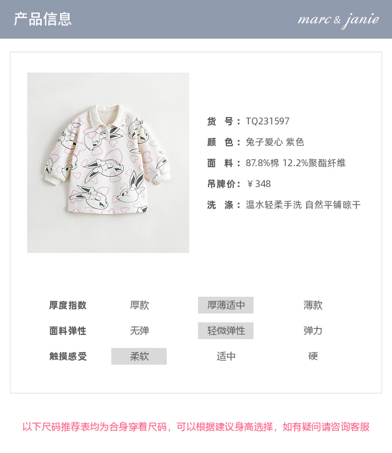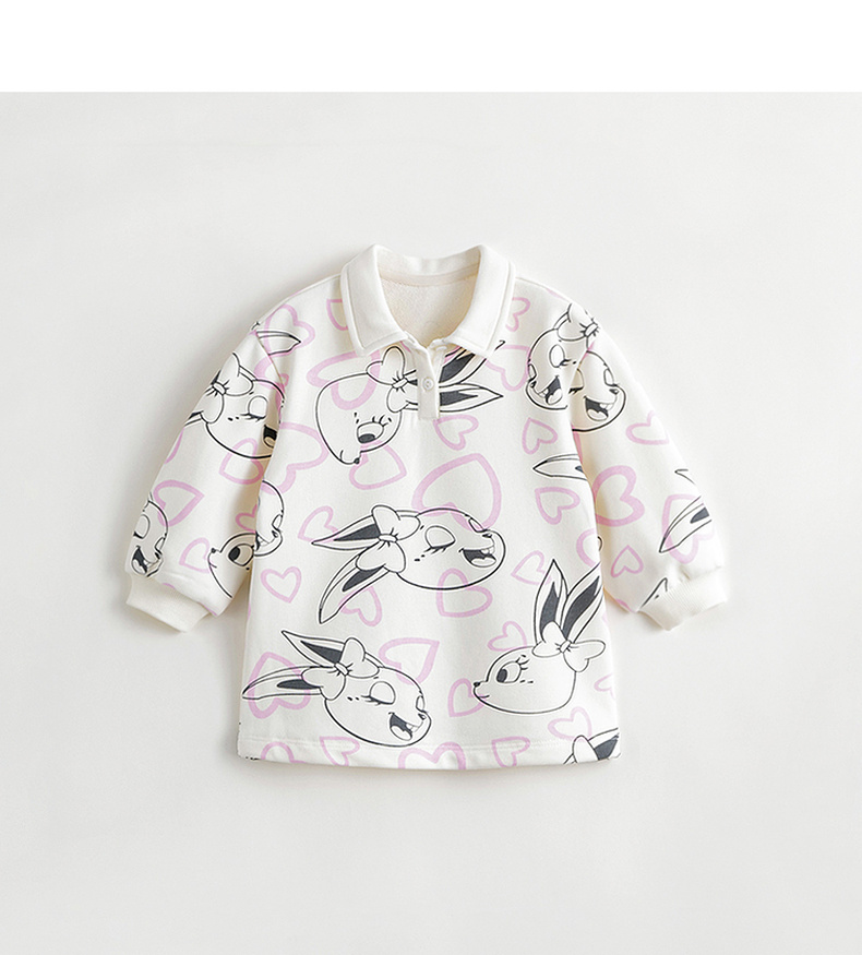 马克珍妮秋装新款 女童兔子满印polo领运动连衣裙卫衣裙 231597
