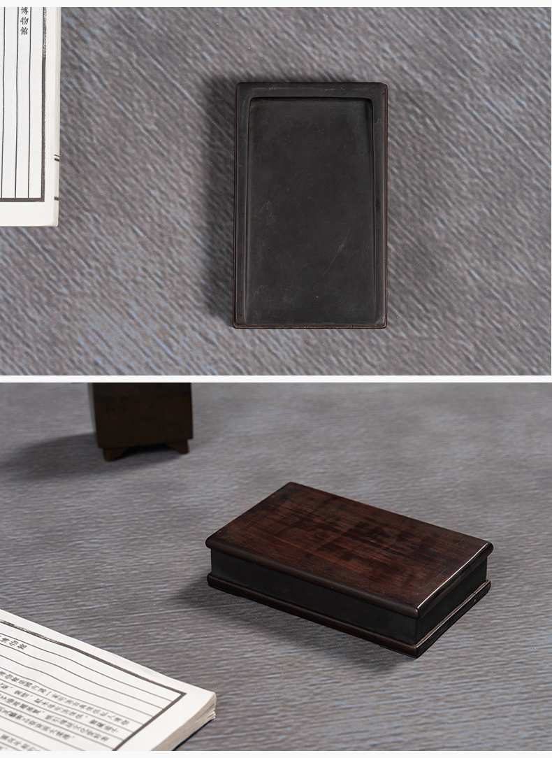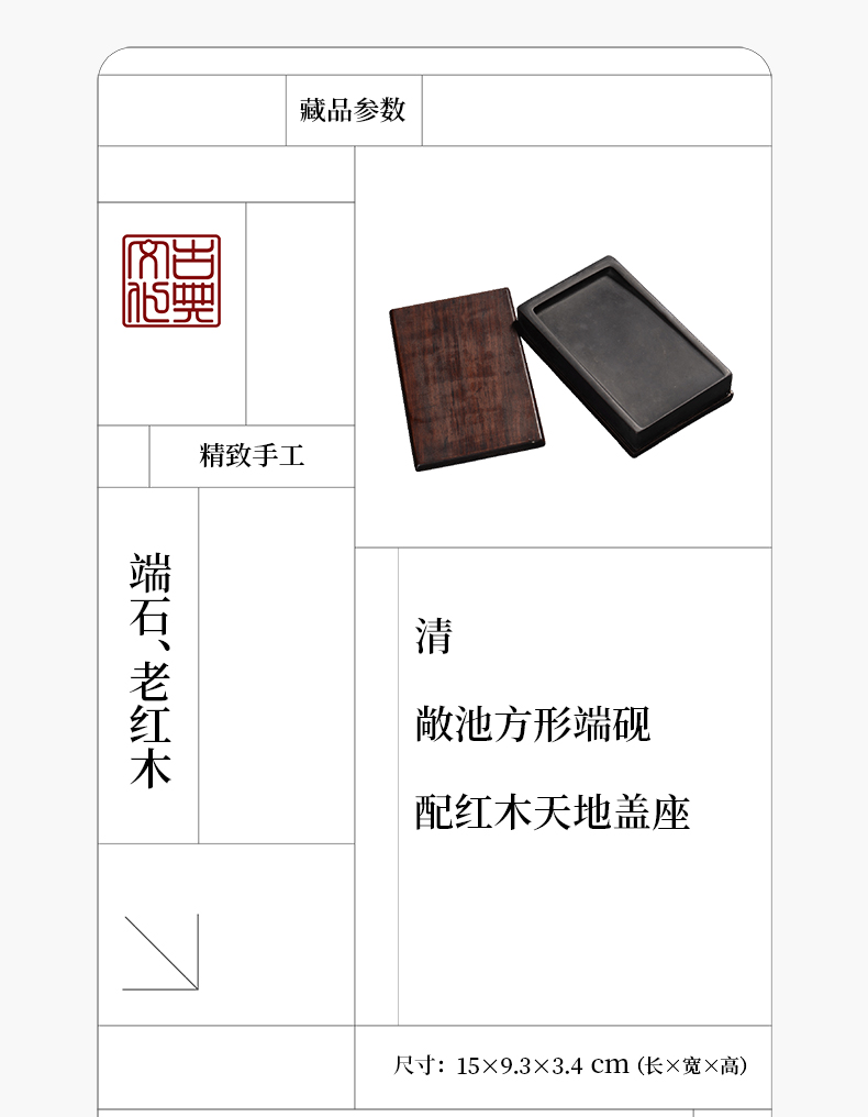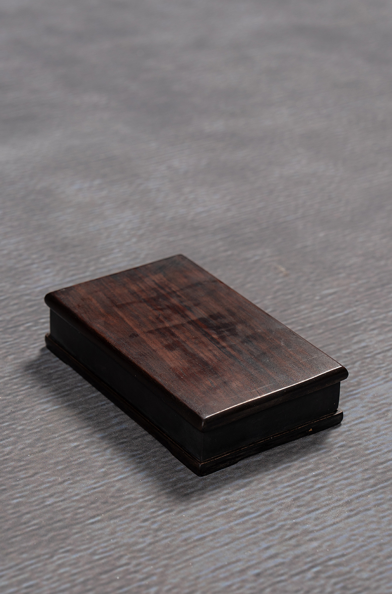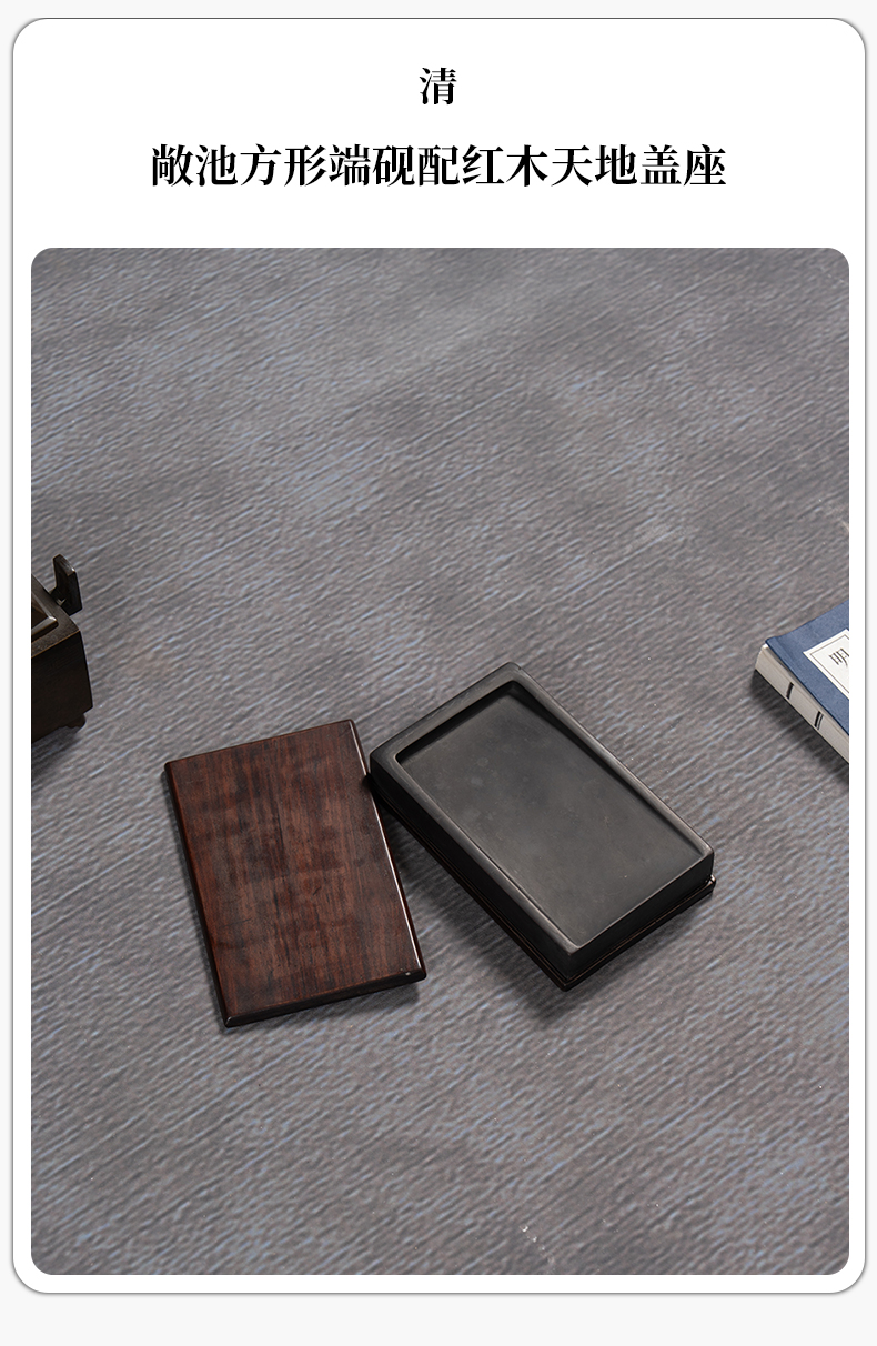 清 敞池方形端砚配红木天地盖座