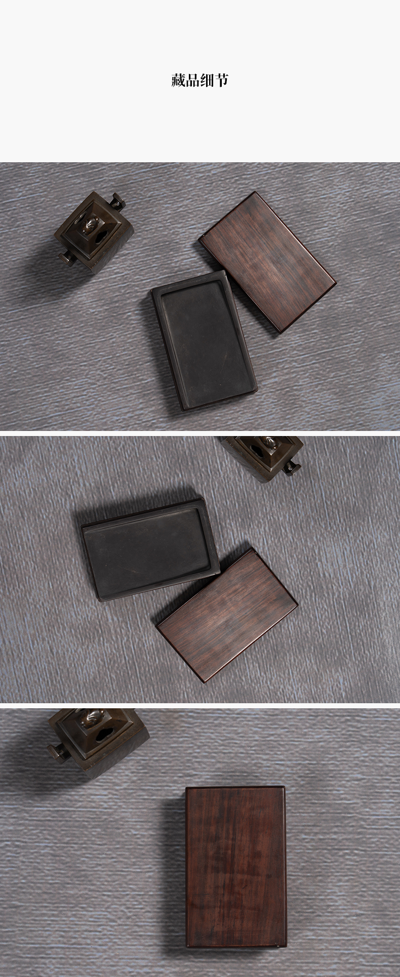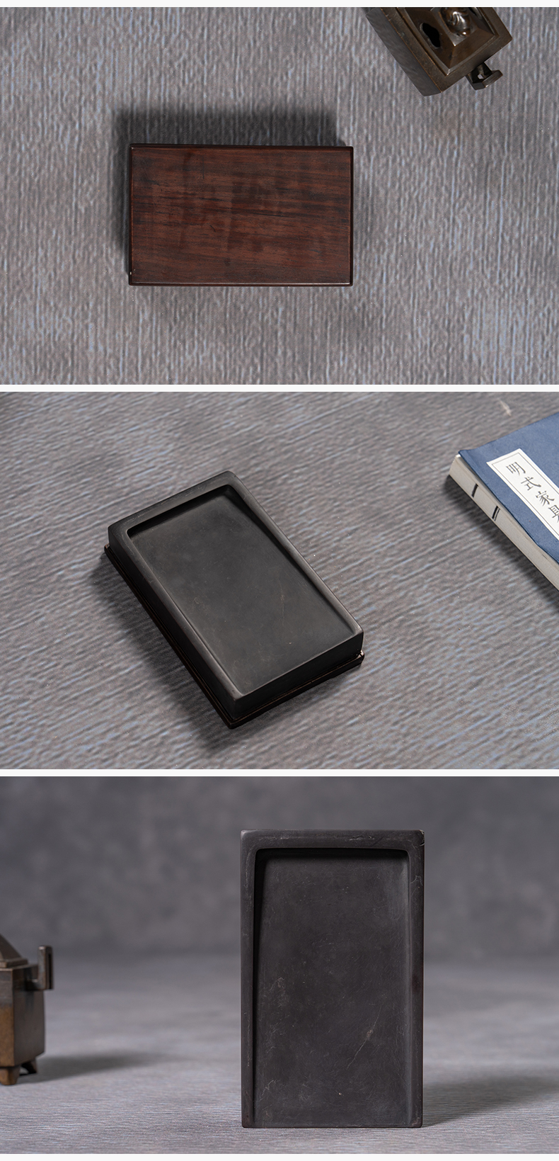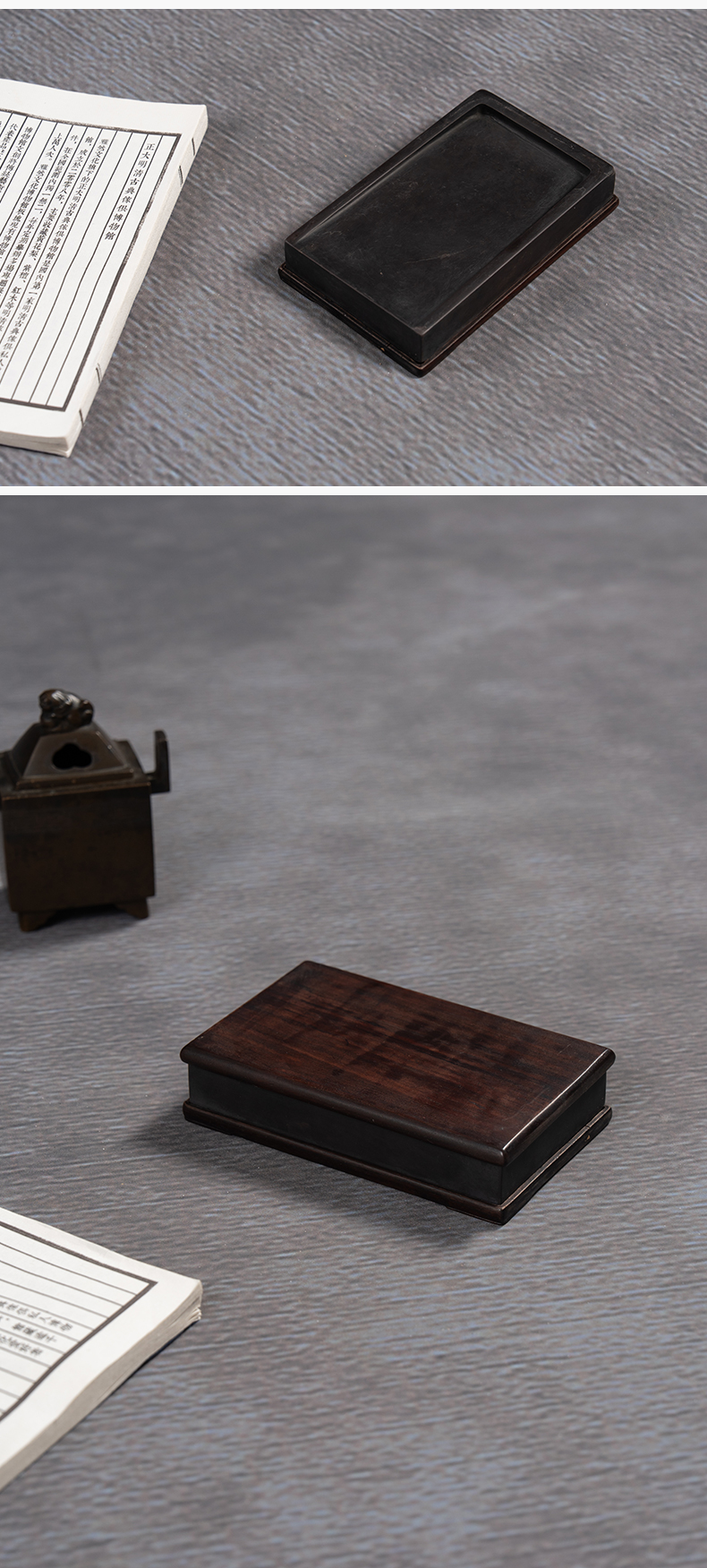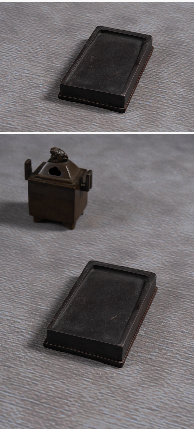 清 敞池方形端砚配红木天地盖座