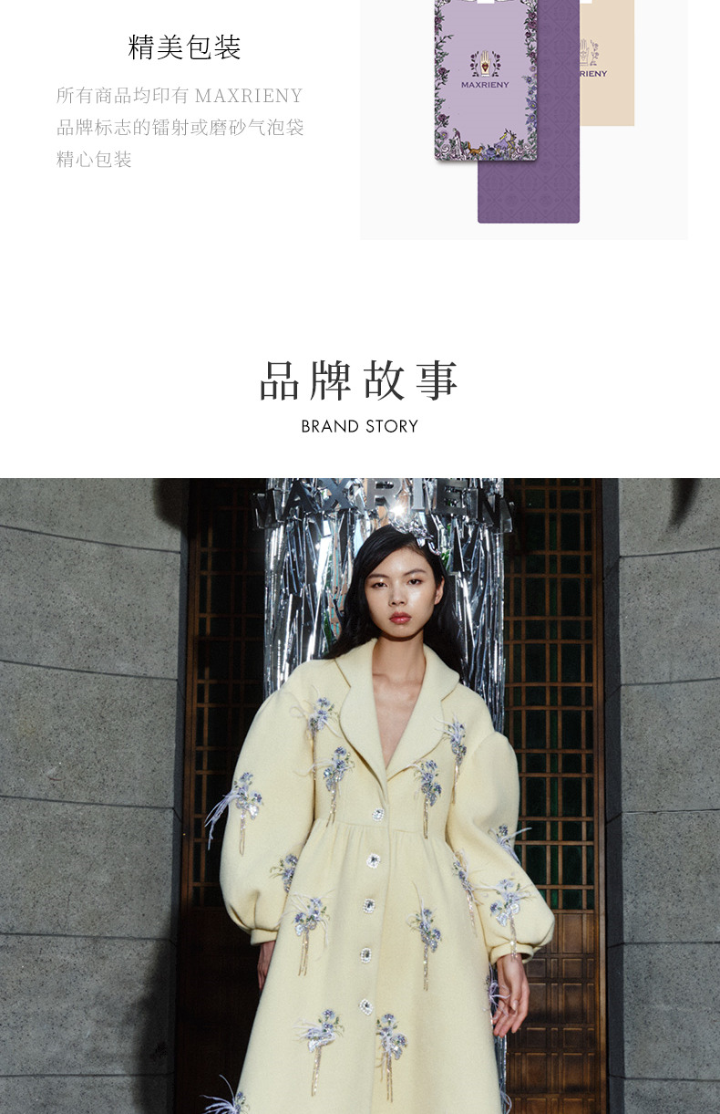 MAXRIENY*复古宽松廓形羊毛毛呢外套刺绣大衣(货号:MC88CT759)