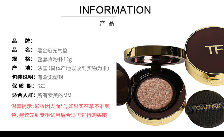Tom Ford TF气垫黑金 哑光亮泽气垫bb霜cc霜粉底液替换装遮瑕 0.5粉调醉白