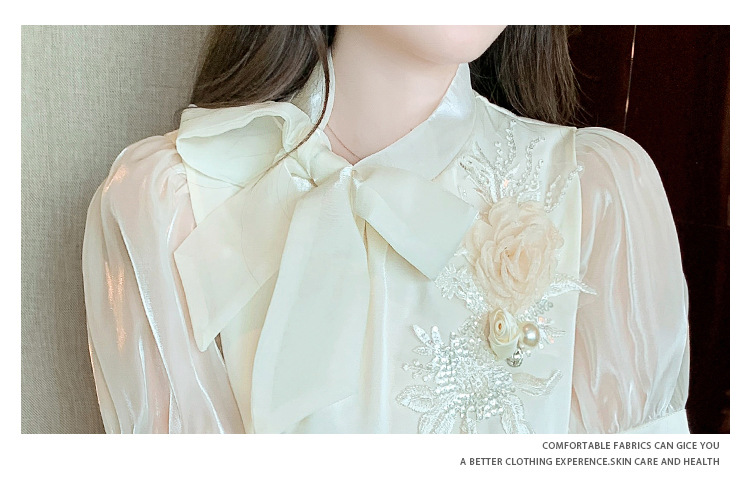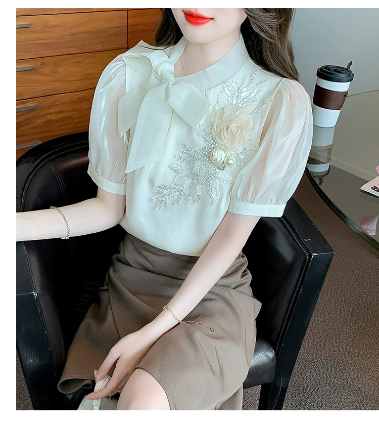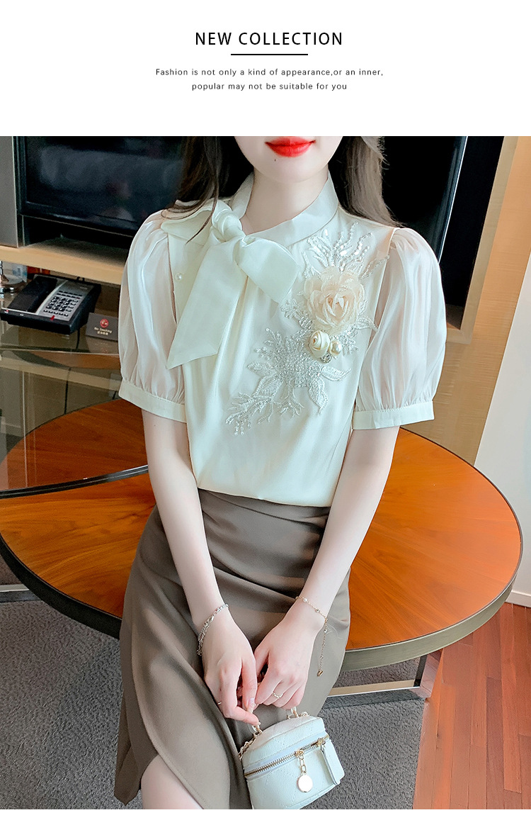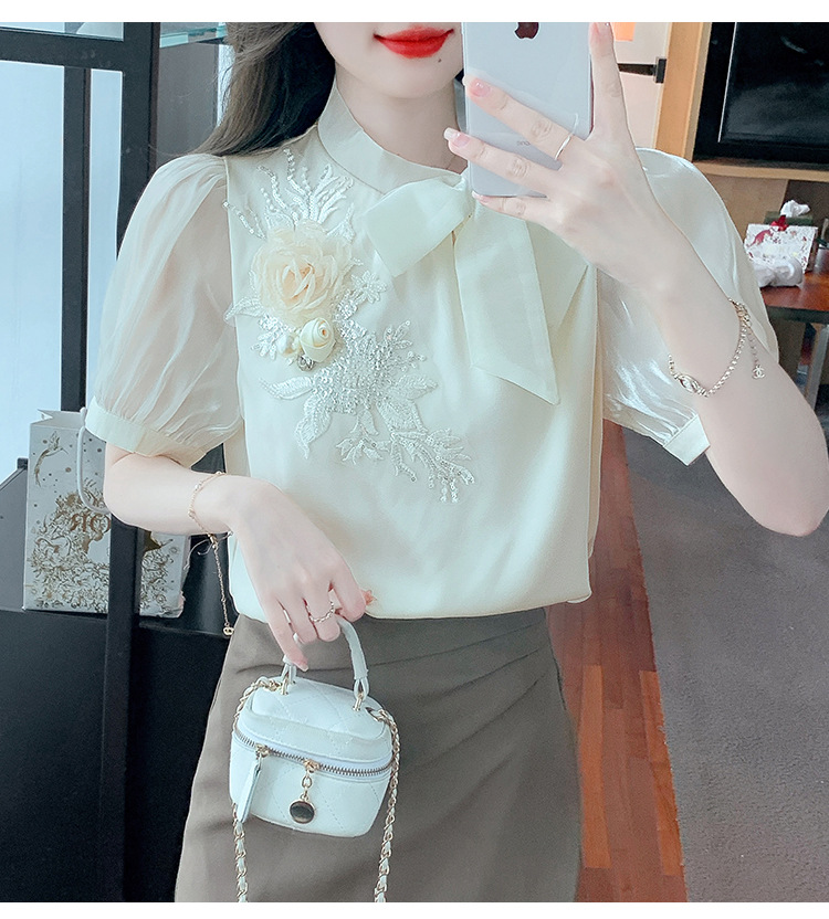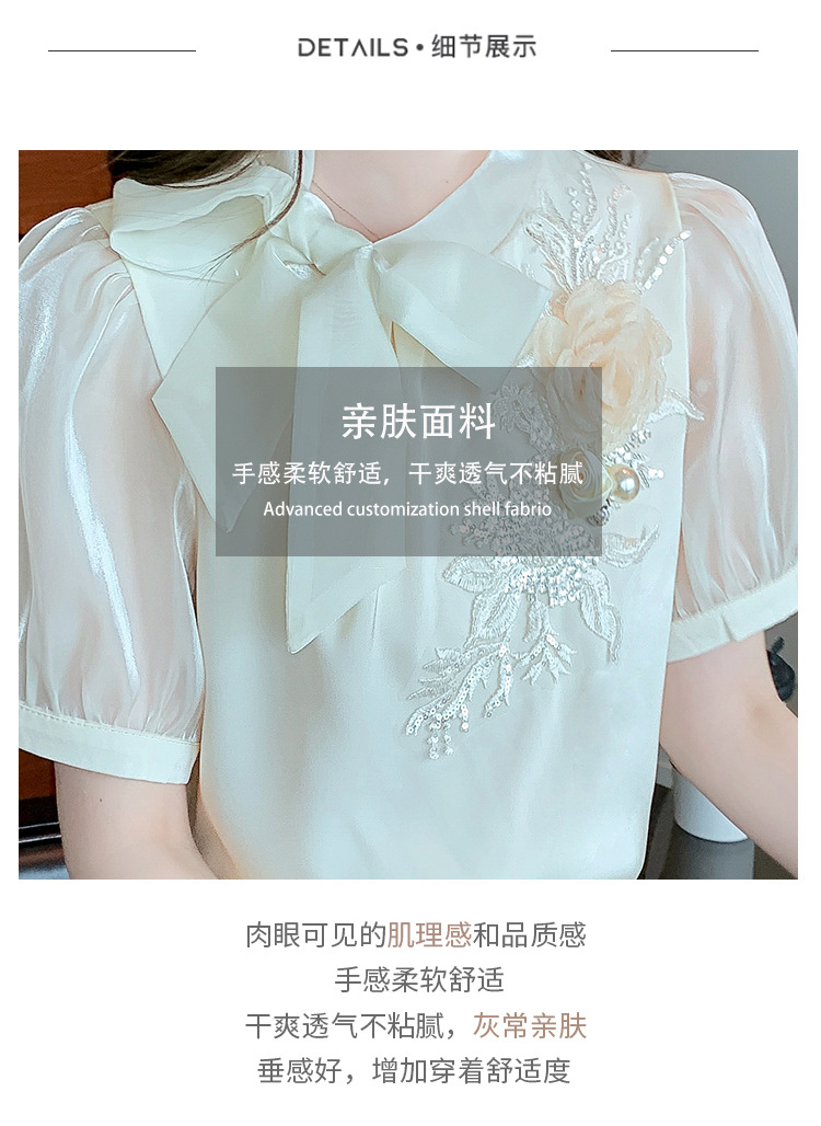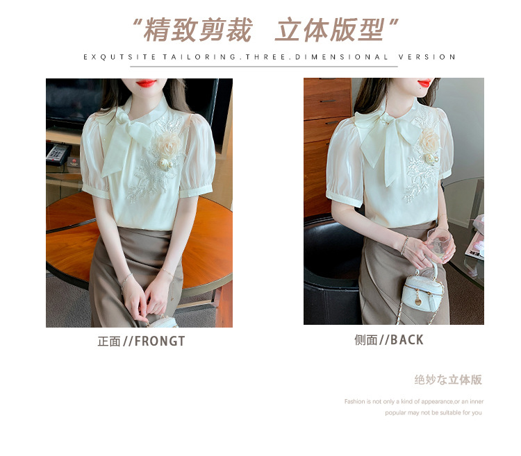 法式风感立体花朵雪纺衬衫漂亮国风别致小衫SDJ37617019