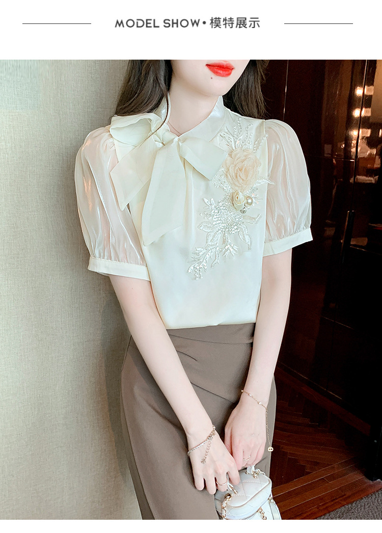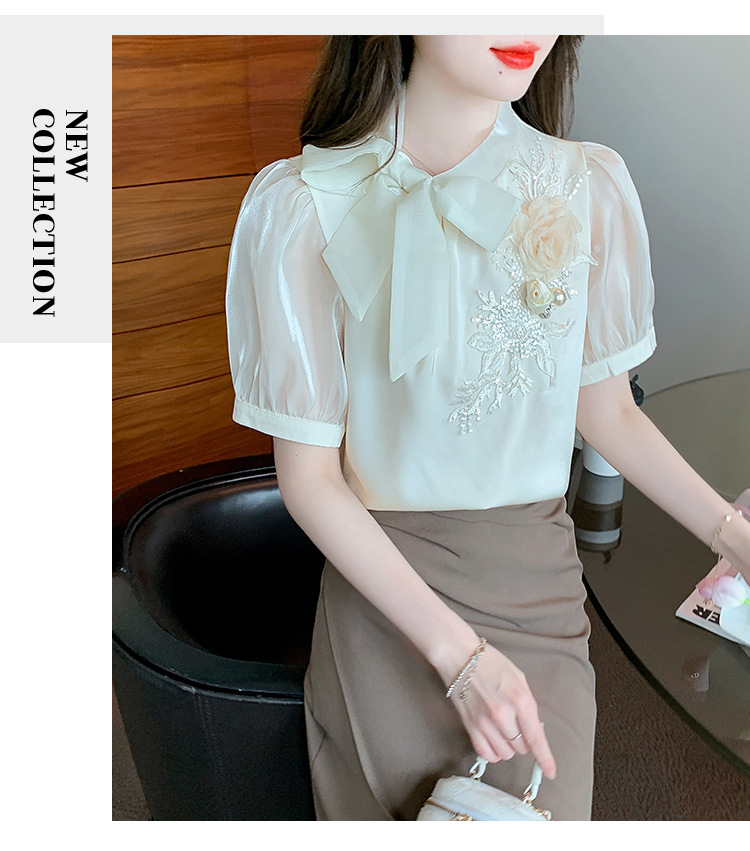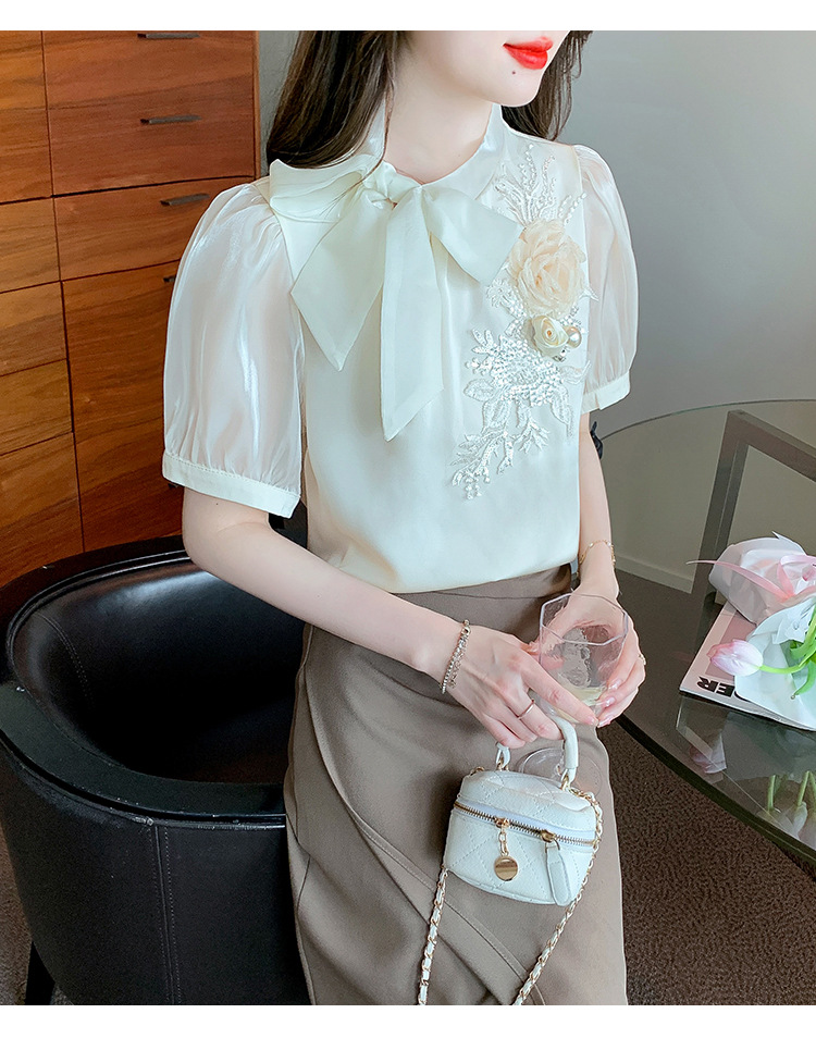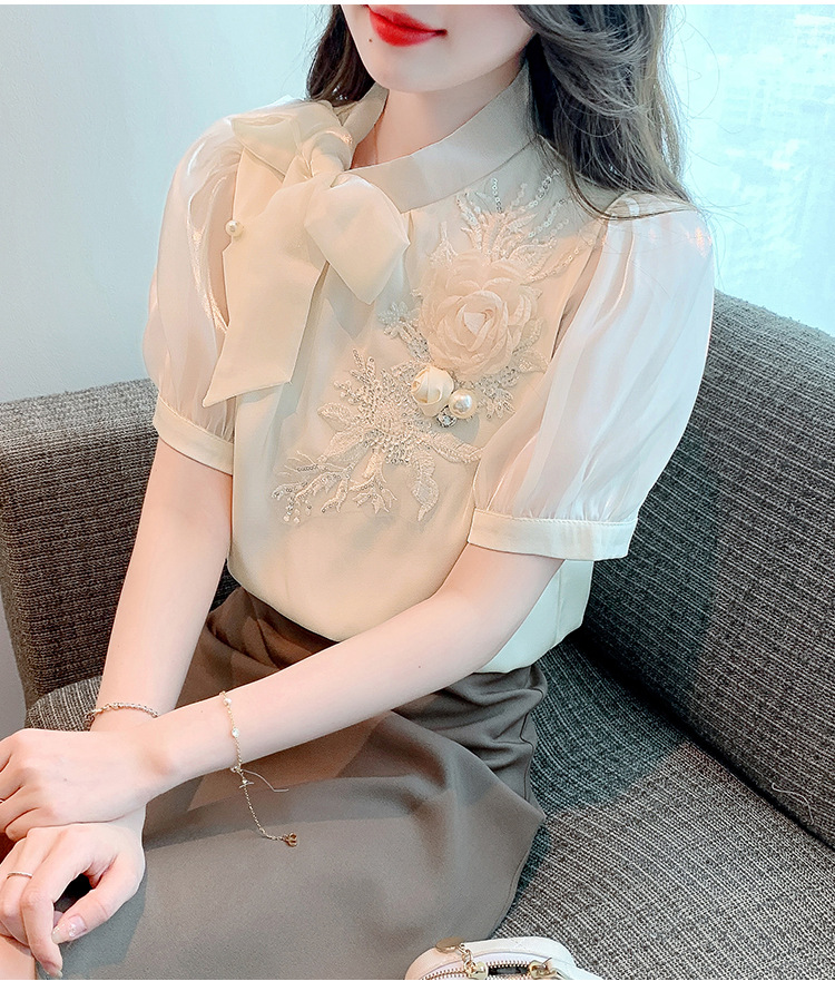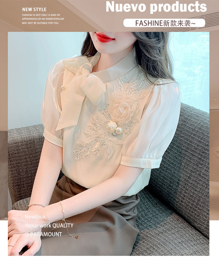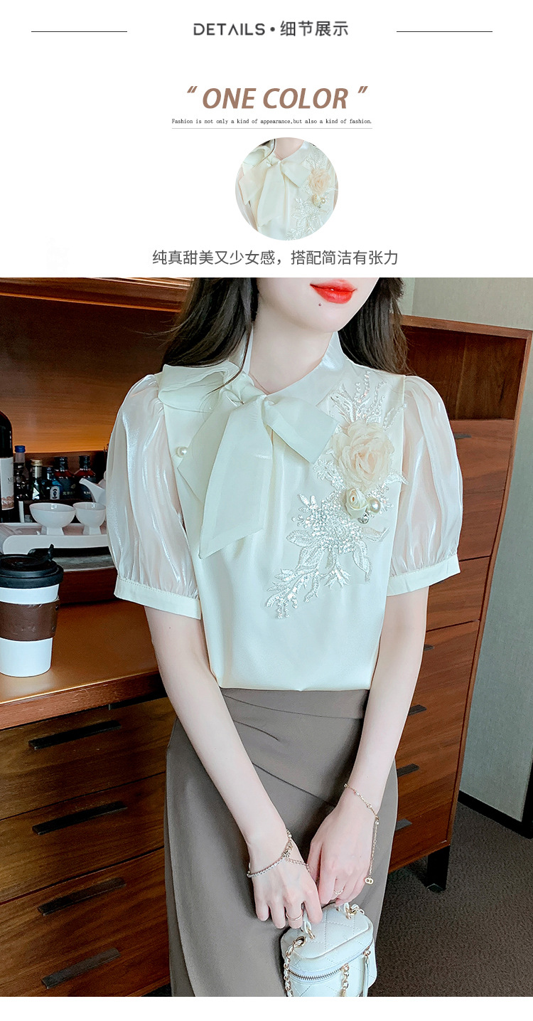 法式风感立体花朵雪纺衬衫漂亮国风别致小衫SDJ37617019