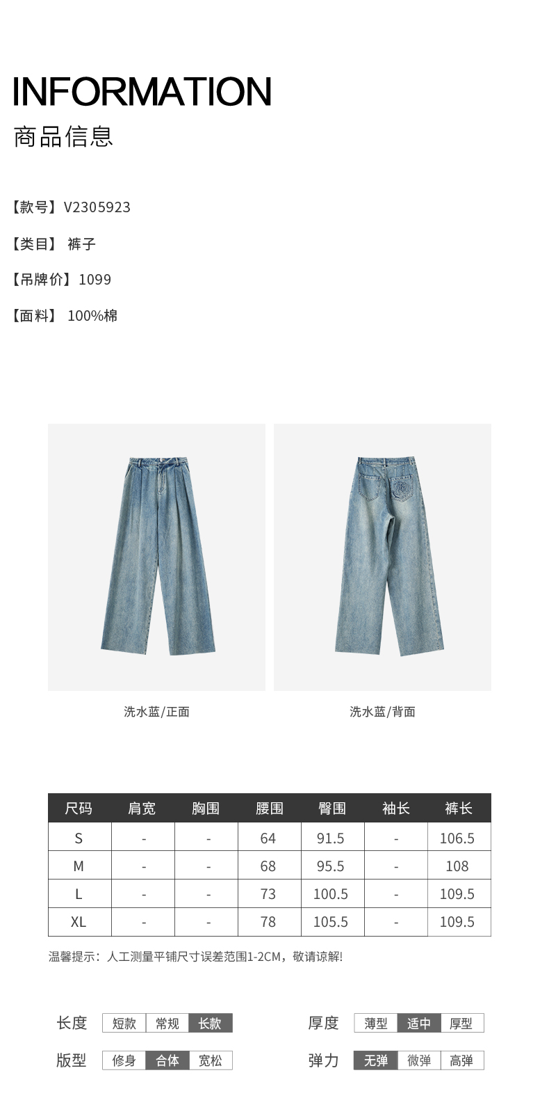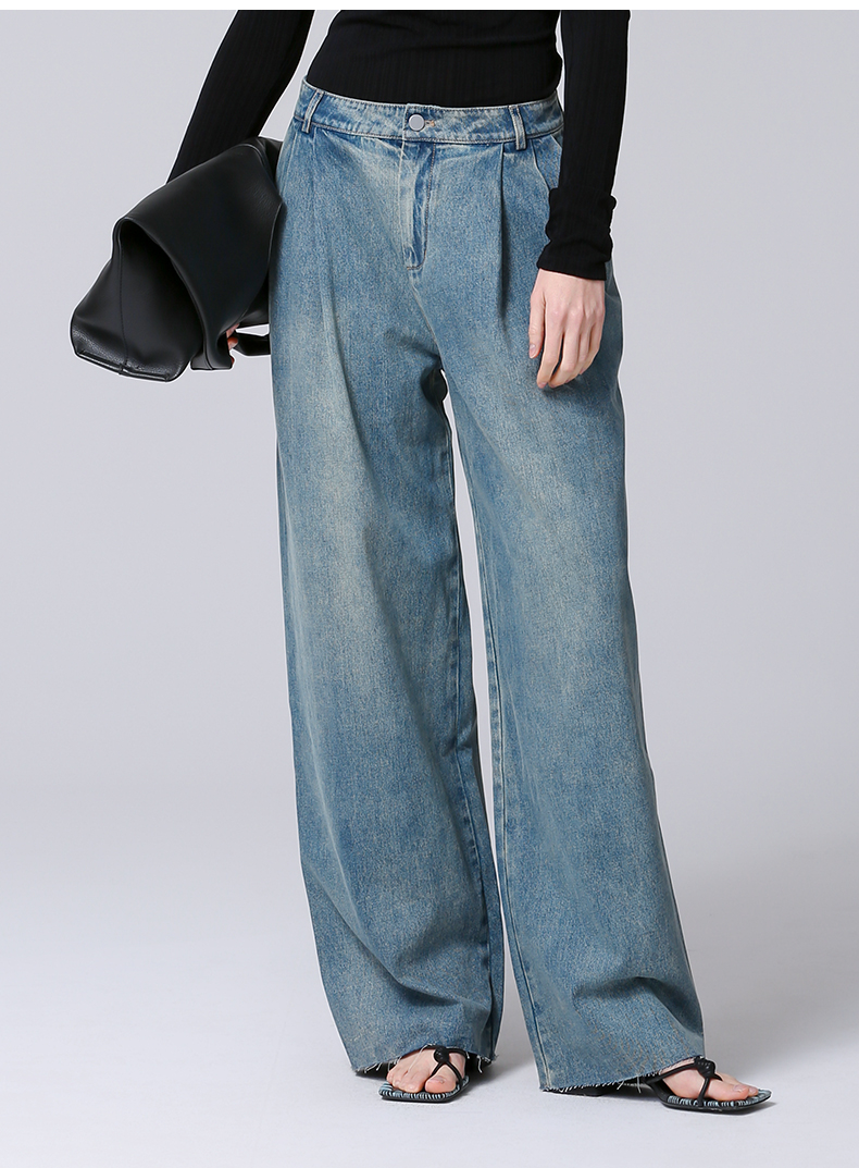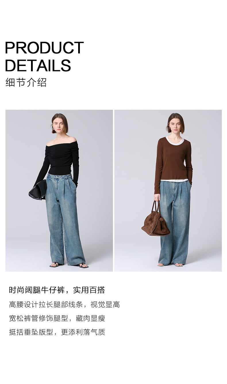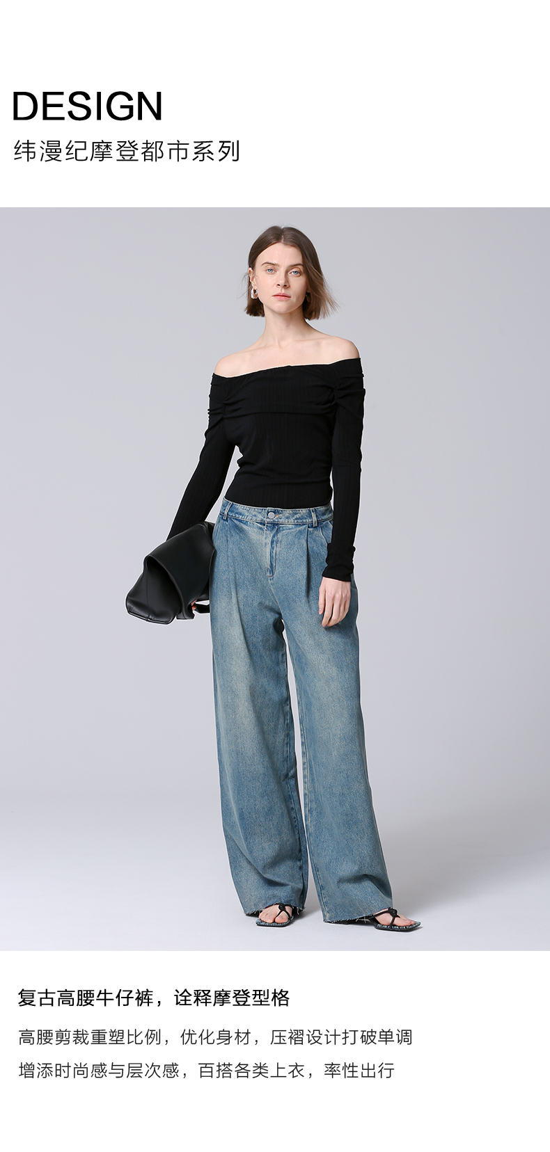 VIMAGE纬漫纪复古百搭直筒高腰阔腿显瘦牛仔裤2025春季新款V2305923